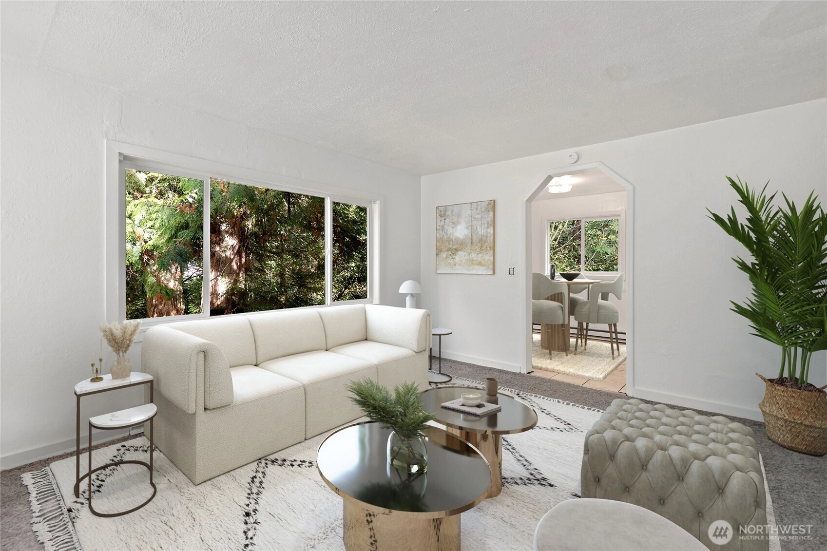 Discover this charming 3-bd, 1-ba rambler tucked into a desirable Woodinville neighborhood, offering comfort, character, and incredible potential. Inside, you'll find a warm and inviting atmosphere with new carpet, a newer roof, and updated windows within the past eight years. The sizeable front porch sets the tone, while the picturesque, wooded backyard offers a peaceful retreat. A spacious unfinished walk-out basement is ready for your vision. Located in the sought-after Northshore School District and just minutes from world-class wineries, dining, & shopping. CASH ONLY