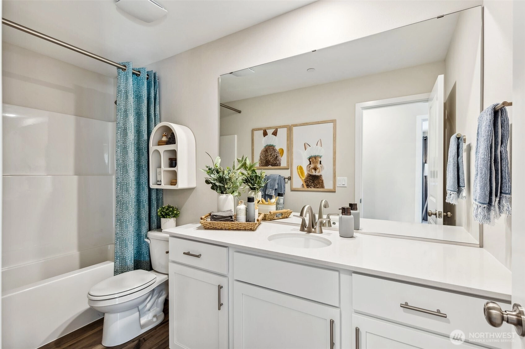 October Completion! The Noah on this premium corner lot is now available! 1st floor bedroom/office. Extra wide lot with 25" protected greenbelt buffer behind backyard for added privacy, comes with: quartz countertops in kitchen & Primary Bathroom, deep stainless steel kitchen sink, Luxury Vinyl Plank flooring throughout main living area, 8' Ceilings, front and rear landscaping, partial rear fencing, white cabinets w/pulls & soft close hinges, covered back patio, microwave/hood, gas range, dishwasher & garbage disposal. 'Century Connect' tech package- electronic door lock, programable thermostat, EV outlet in garage & more! Buyers bring your Brokers at 1st visit to register. Ask about Buyer Bonus!