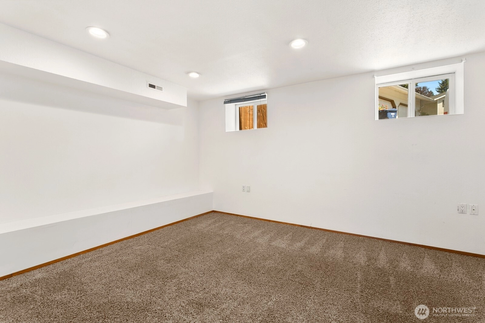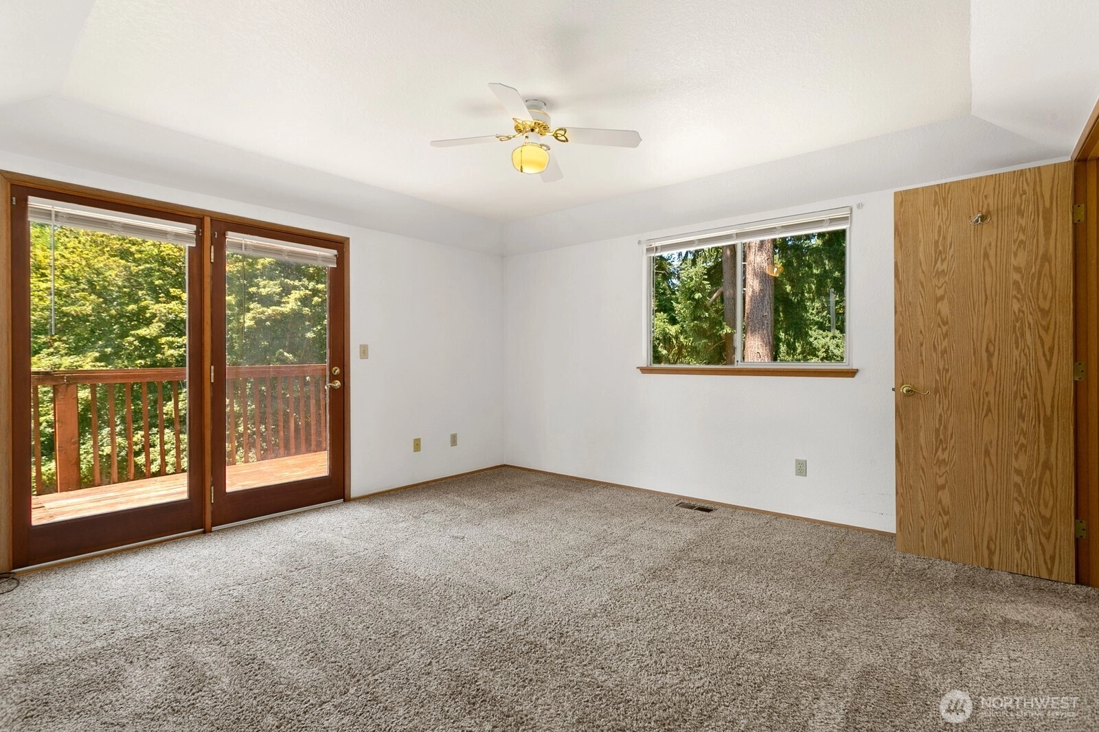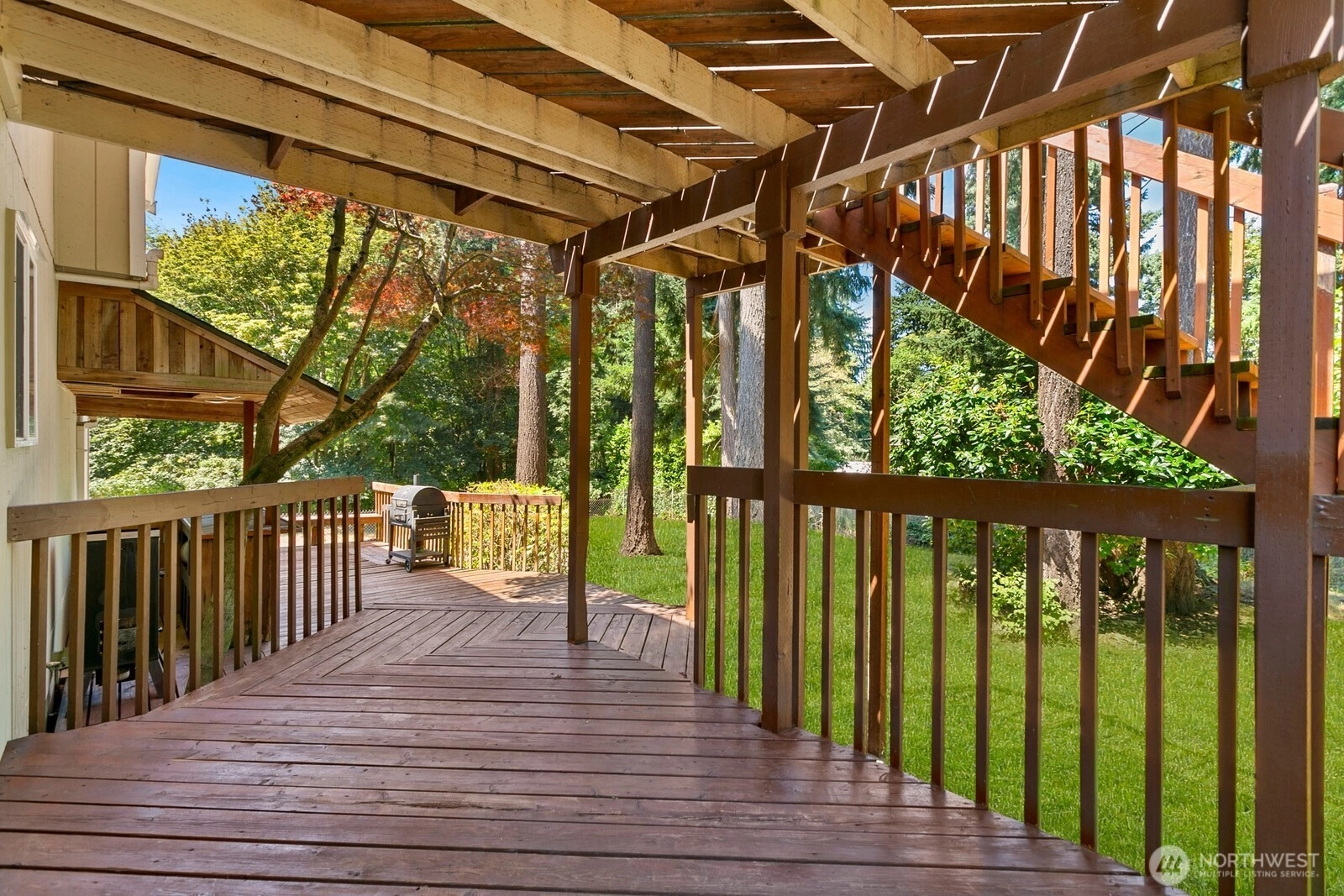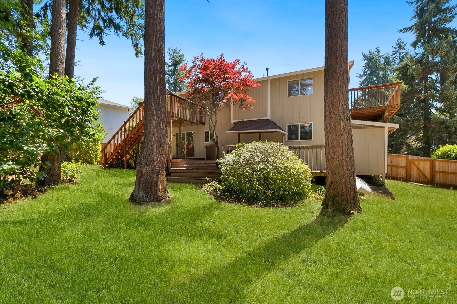 Excellent 5 bedroom 3 bath California Mid Entry. Living room with vaulted ceilings, fireplace and lots of natural light. Open concept with Dining and kitchen that overlooks living room. Primary suite with separate bath, walk in closet and french door that led to balcony. Rec room that leads to entertaining deck for summer fun. Large private backyard that backs to greenbelt. Newer Roof, Furnace, Exterior and Interior paint. RV parking, cul-de-sac. Close to shopping, parks and golf courses