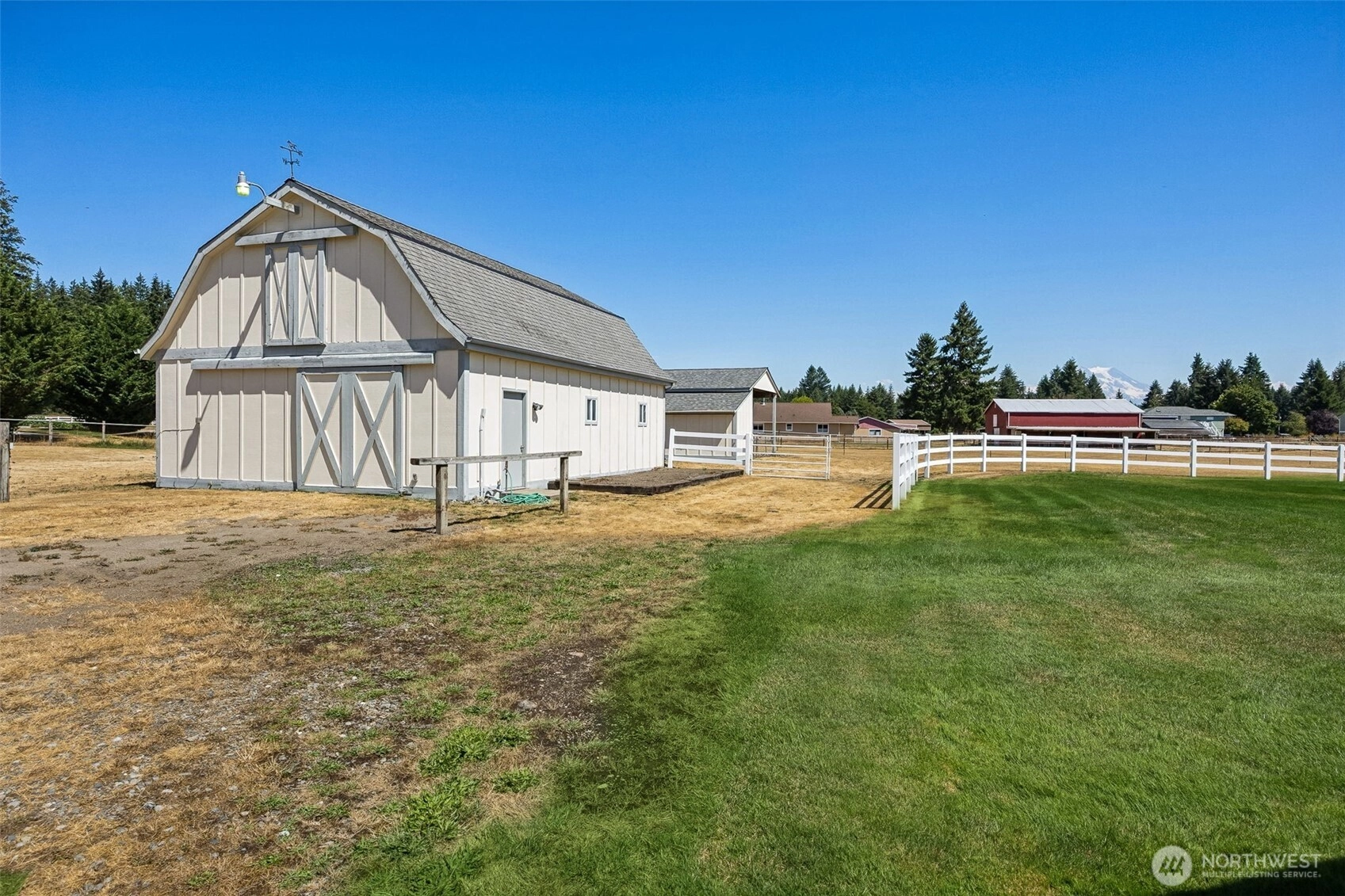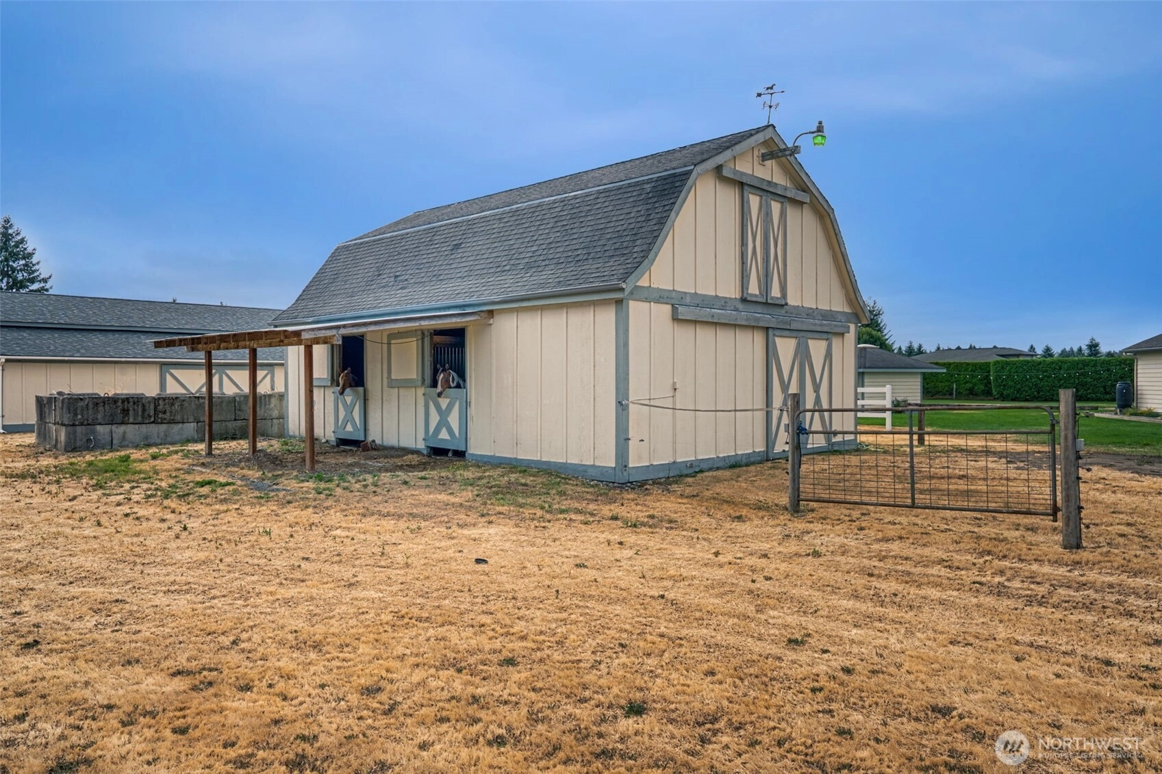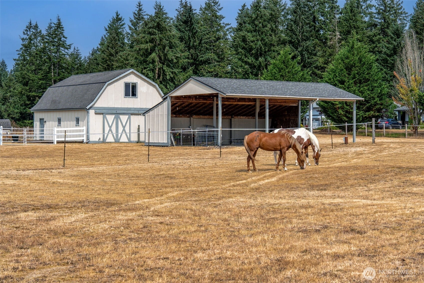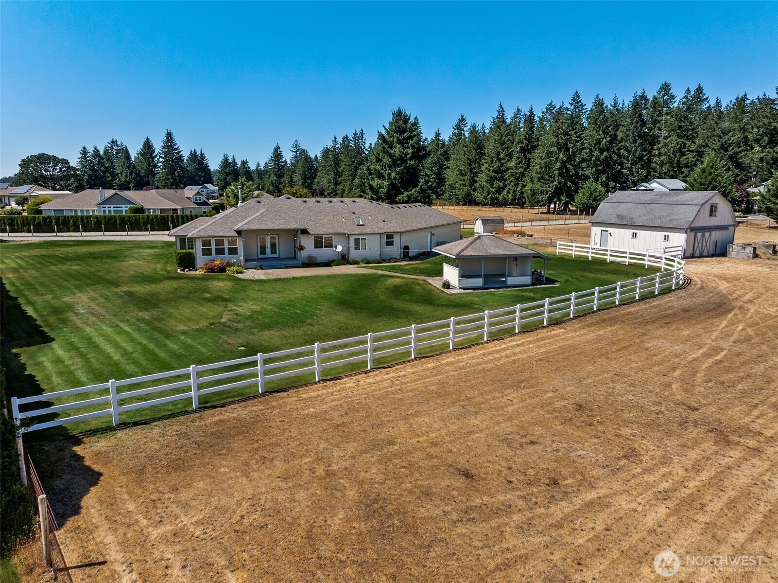 Gated Equestrian Property! Beautiful 3 bedrm 2 bath rambler on 2.43 acres with MT. View! The home features a Formal Living & Dining rm. The Updated Kitchen includes quartz counters, SS appliances & refinished hardwood floors. The great room includes a wood burning stove. Primary bedroom with 5 piece updated bathroom. Plus an updated main bath. Custom closets. The Interior has a fresh coat of paint. Enjoy the covered deck. The Gazebo is wired for a hot tub. Surround sound in the home, deck & gazebo. The lot is fully fenced & cross fenced. Your horses will love the 936 sq. ft. 2 Stall barn w/ dutch doors, heated tack rm w/sink & hay loft. 1200 sq. ft. RV carport. Heatpump to cool & heat the home. Home is wired for generator. Welcome home!
