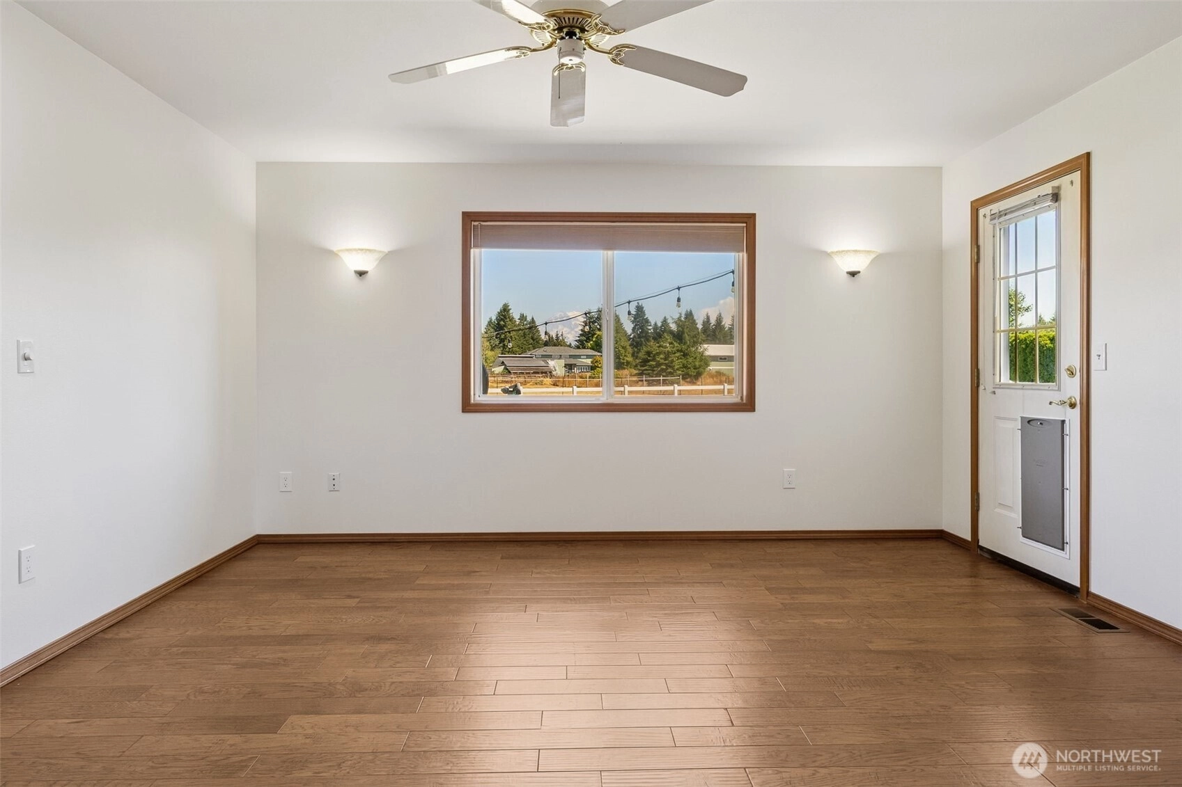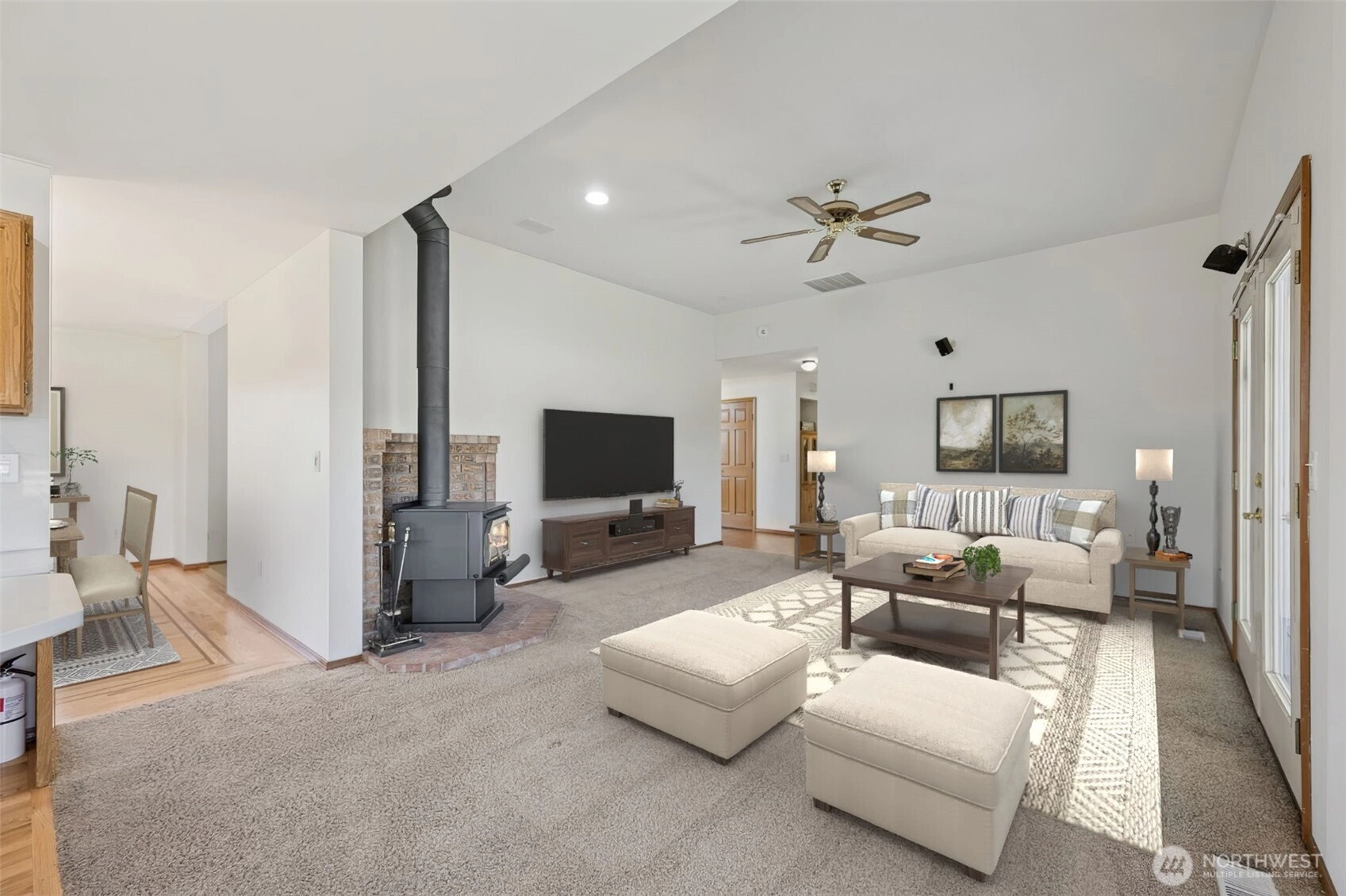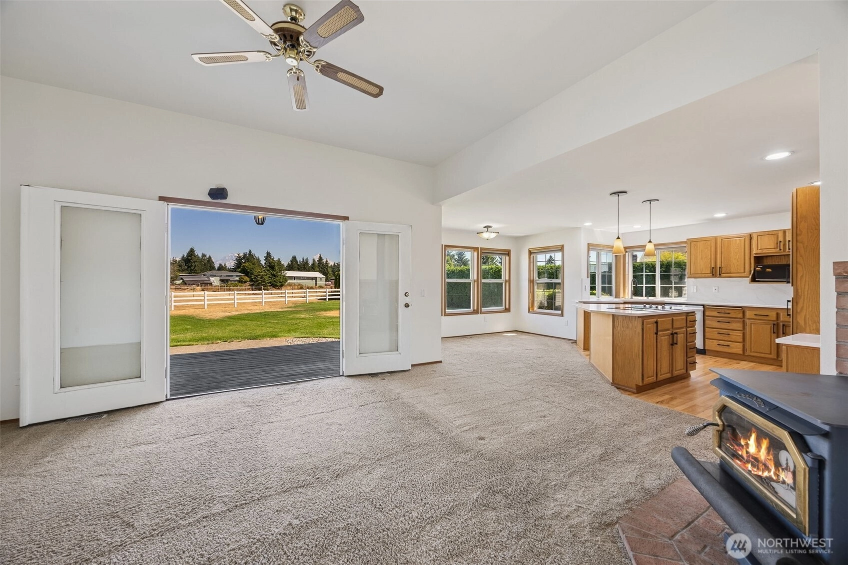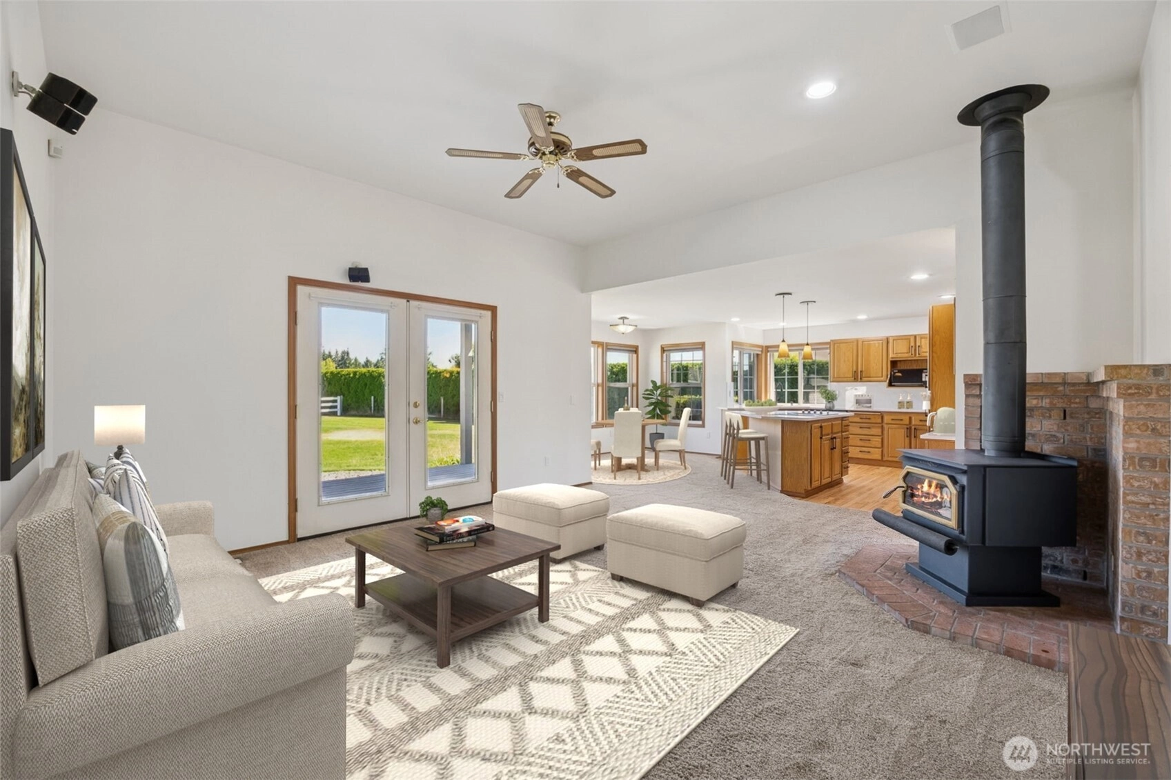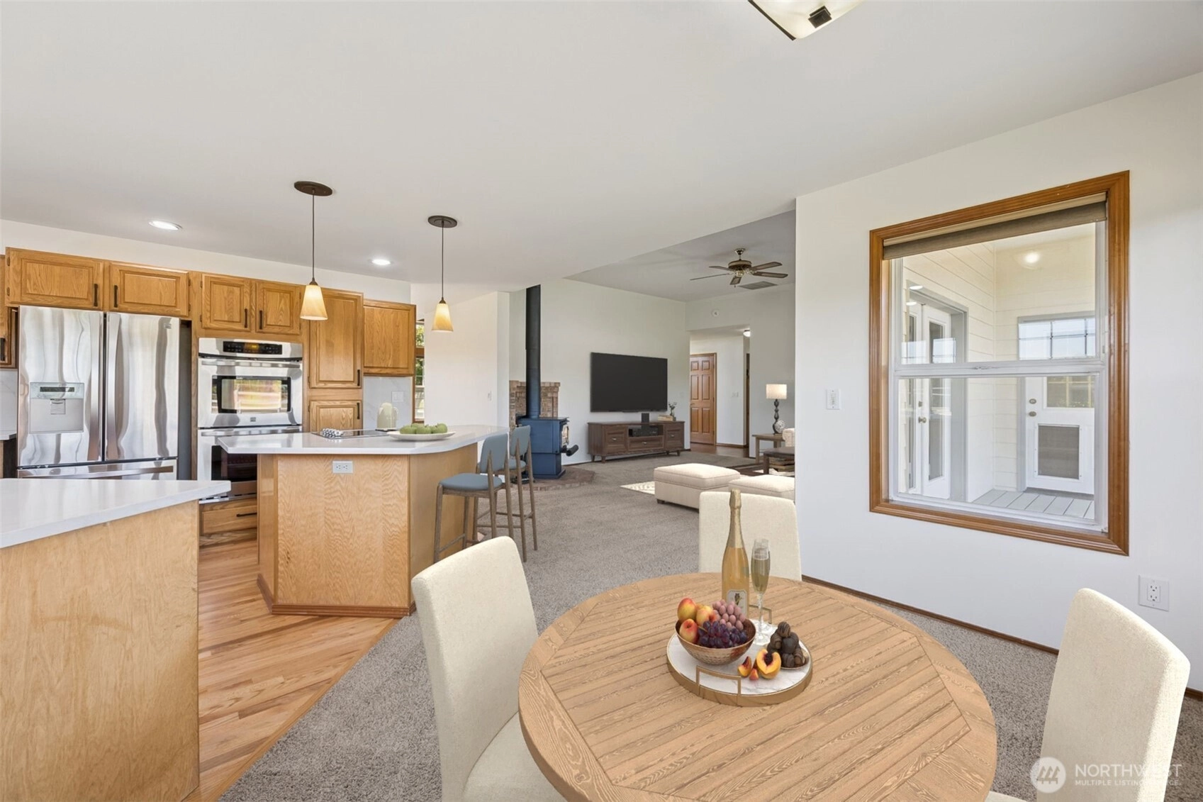 Gated Equestrian Property! Beautiful 3 bedrm 2 bath rambler on 2.43 acres with MT. View! The home features a Formal Living & Dining rm. The Updated Kitchen includes quartz counters, SS appliances & refinished hardwood floors. The great room includes a wood burning stove. Primary bedroom with 5 piece updated bathroom. Plus an updated main bath. Custom closets. The Interior has a fresh coat of paint. Enjoy the covered deck. The Gazebo is wired for a hot tub. Surround sound in the home, deck & gazebo. The lot is fully fenced & cross fenced. Your horses will love the 936 sq. ft. 2 Stall barn w/ dutch doors, heated tack rm w/sink & hay loft. 1200 sq. ft. RV carport. Heatpump to cool & heat the home. Home is wired for generator. Welcome home!