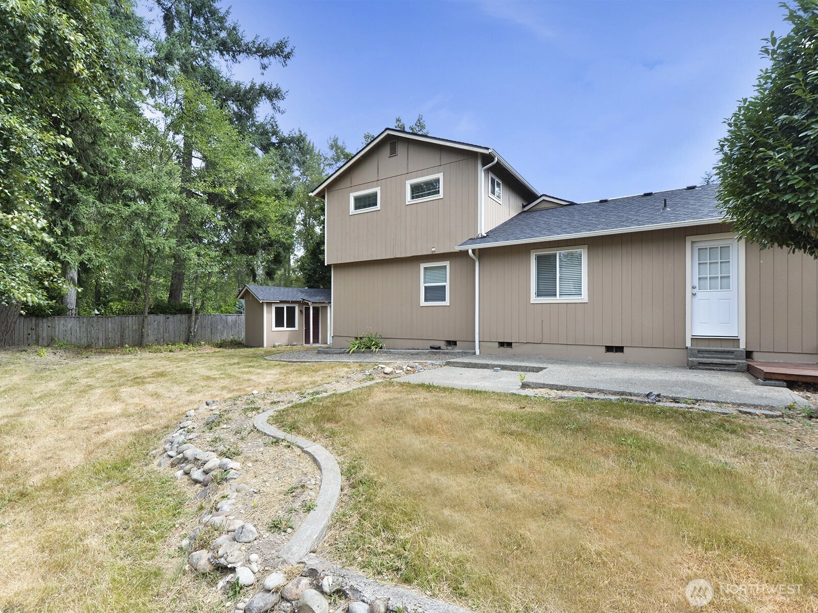 $20K price improvement. Located in the Red Cedar Estates neighborhood sits this 2,304 sq ft updated home on nearly a half acre. Outside - 2 car garage plus 2 carport RV/Boat parking. Private fenced backyard with mature landscaping, & lawn edging to make trimming a breeze. Cute outbuilding storage or maybe a play house? 2 tier deck for grillin'. Inside is looking good, just painted, new flooring, durable laminate h/w through main areas. Bright kitchen with center island, slab granite counters & all stainless appliances incl gas stove & fridge. Dining room adjacent. Living room & fam rm w/ gas fireplace. Pretty bathrooms with granite & under-mount sinks, double sinks in main. 4 Bedrooms, 2.5 baths. Clean and move-in ready.