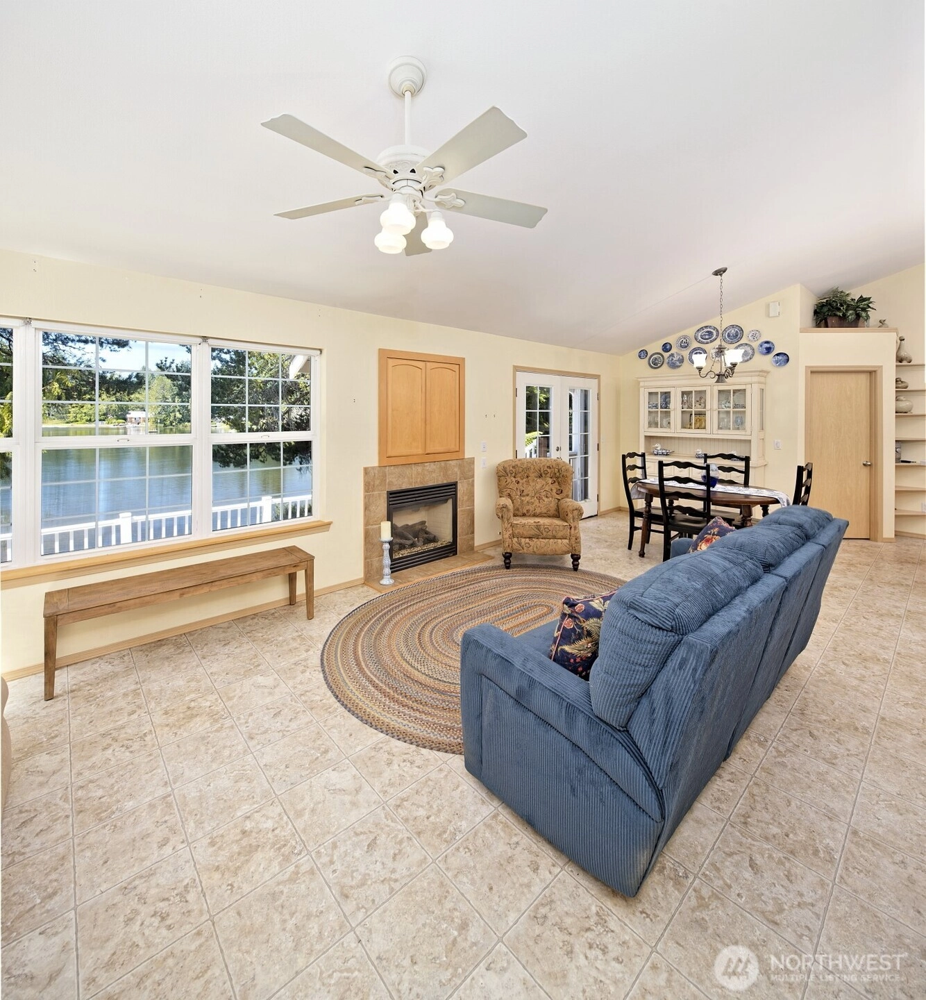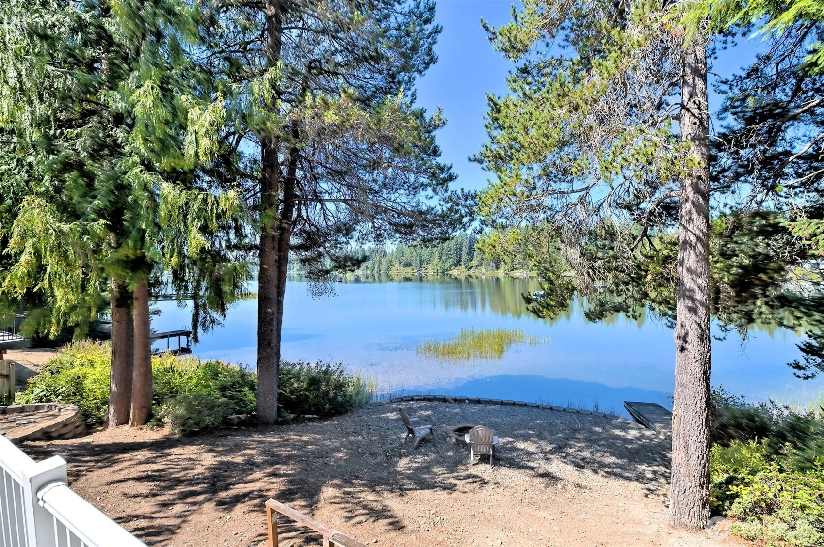 Tucked behind a white vinyl fence, open the gate to your peaceful lakefront home on Trails End Lake. Enjoy single-level living with sunlit rooms & easy-care vinyl flooring throughout main living area.The open kitchen features plentiful counters, cabinets, & an island all while keeping the lake views in sight. Split floorplan offers privacy between primary & guest bedroom.Front courtyard & low-maintenance landscaping create charm, while French doors lead to tranquil backyard living on a non-motorized lake. Voluntary HOA includes Hood Canal access. Bonus: extra-long garage for parking & storing waterfront toys.Every day is a vacation here whether it's fulltime, parttime or recreational living. Possibly an investment/vrbo opportunity as well.