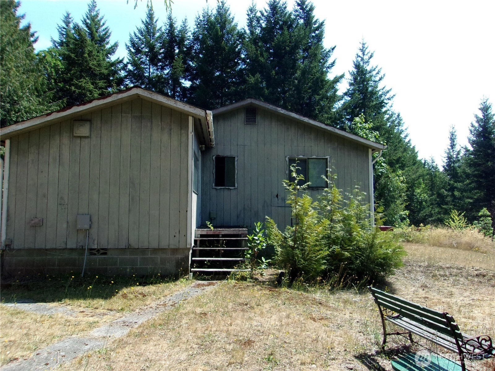 Estate Sale, AS IS, Nice 5 acres with several fruit trees and a path winding through the forest. The house seems reasonably solid with a 1-bedroom septic, a couple of offices, 1 large bedroom, 1 bath. Large front room with propane fireplace and kitchen bar. Entire property needs some TLC. 24x50 shop, part is solid and part needs to be taken down. There is also an octagon cabin that needs to be demolished, do not enter. Ideal for folks with carpentry skills.