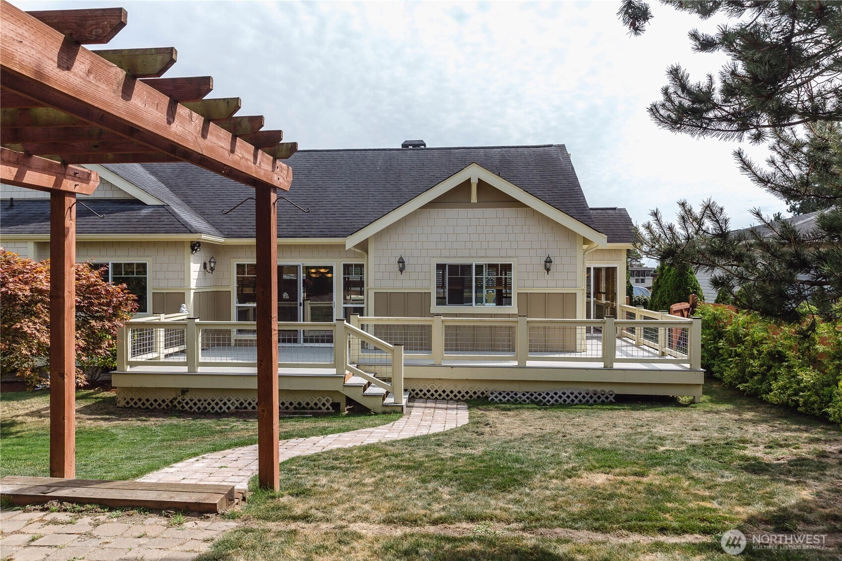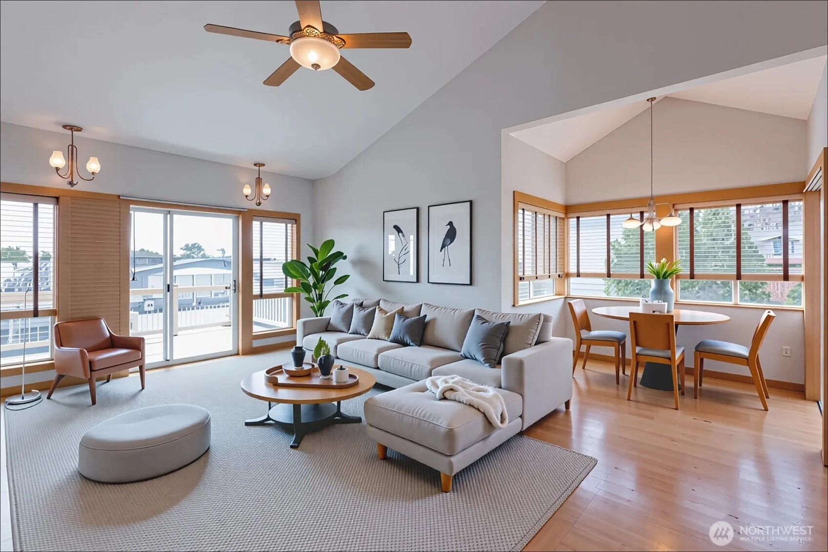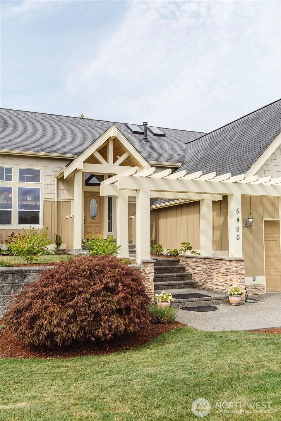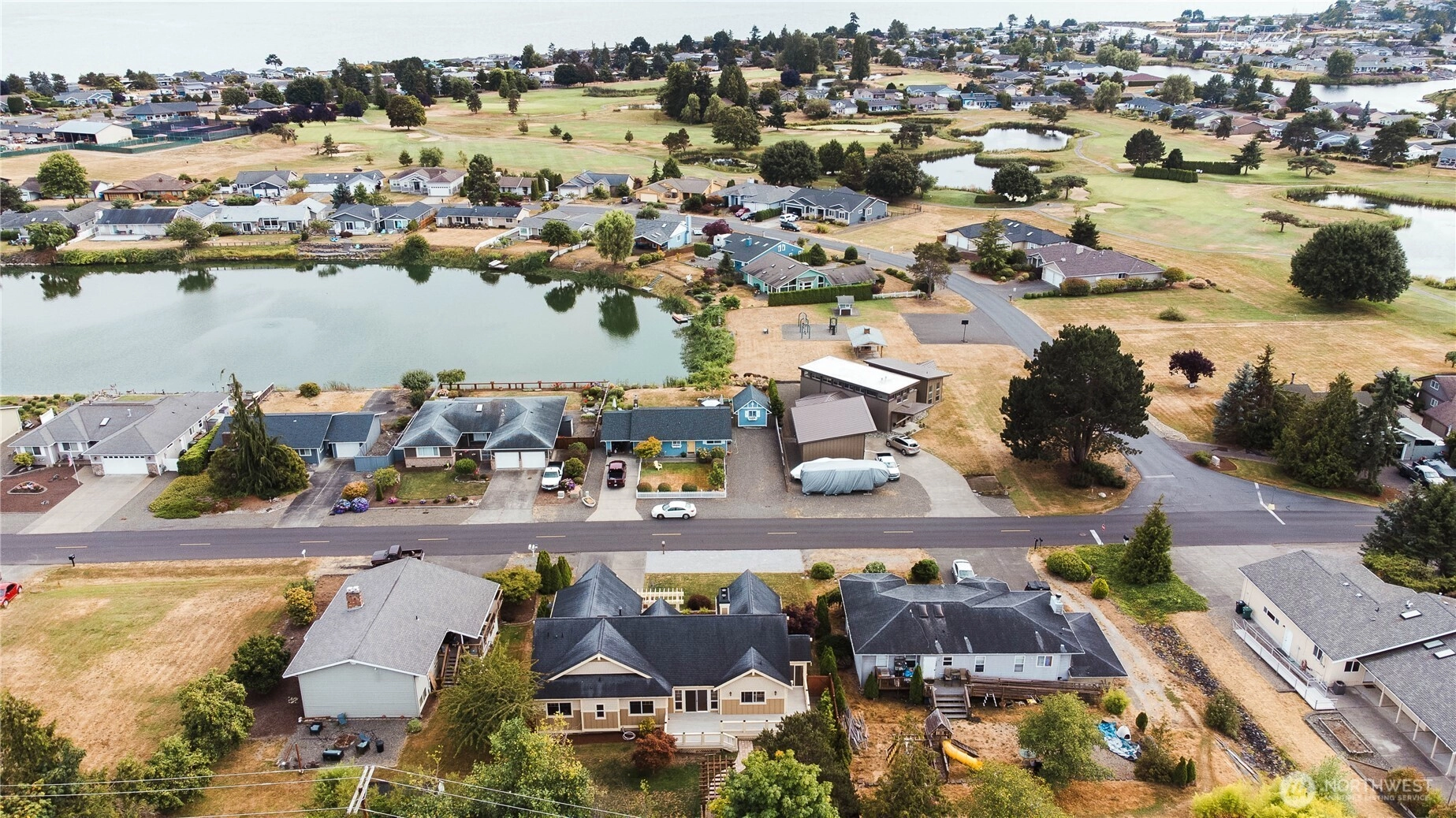 Gorgeous custom residence with dramatic open plan, designed by architecture firm Nicon International. Featuring soaring ceilings and new modern fireplace stone, quality craftsman millwork, intentional art displays, skylights, and interior planter boxes with watering system to easily bring nature in. Designer series fixtures throughout, chef's kitchen with island, large dining space, hardwood floors, and cozy spaces with gas fireplaces. Over $65k in upgrades, all new Trex decking, new fence, newer interior and exterior paint, remodeled bathroom, and upgraded landscaping with fruit trees. Driveway and parking pad w/ room for boat/RV. Amenities include gated entry, golf, moorage, clubhouse, tennis/pickleball, and parks. $5k Credit, come see!