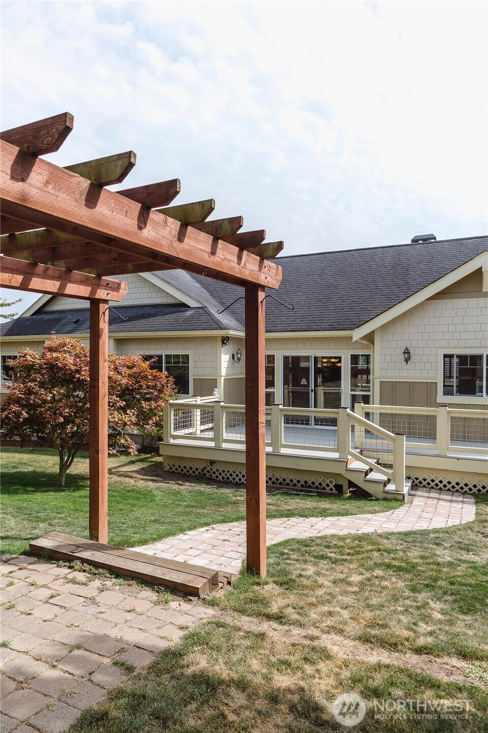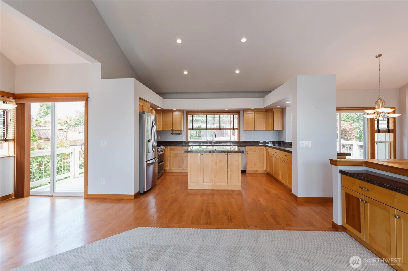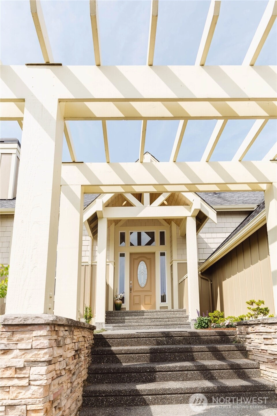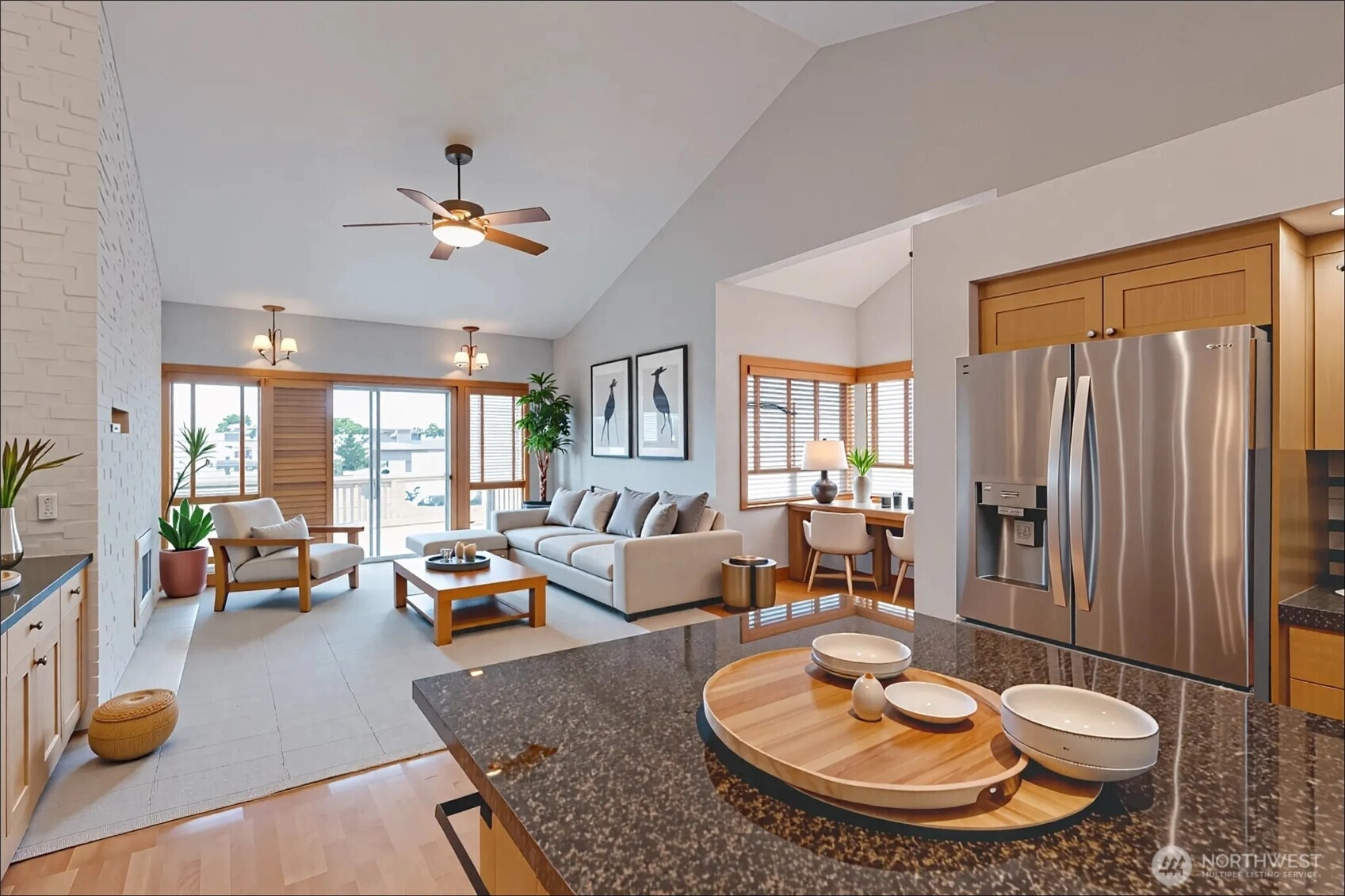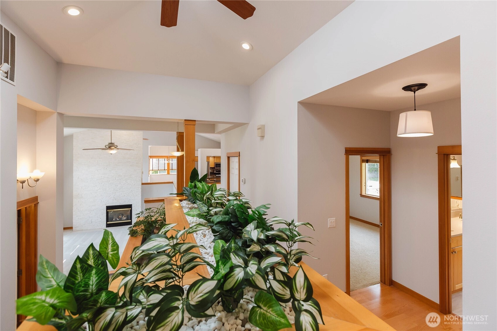 Gorgeous custom residence with dramatic open plan, designed by architecture firm Nicon International. Featuring soaring ceilings and new modern fireplace stone, quality craftsman millwork, intentional art displays, skylights, and interior planter boxes with watering system to easily bring nature in. Designer series fixtures throughout, chef's kitchen with island, large dining space, hardwood floors, and cozy spaces with gas fireplaces. Over $65k in upgrades, all new Trex decking, new fence, newer interior and exterior paint, remodeled bathroom, and upgraded landscaping with fruit trees. Driveway and parking pad w/ room for boat/RV. Amenities include gated entry, golf, moorage, clubhouse, tennis/pickleball, and parks. $5k Credit, come see!