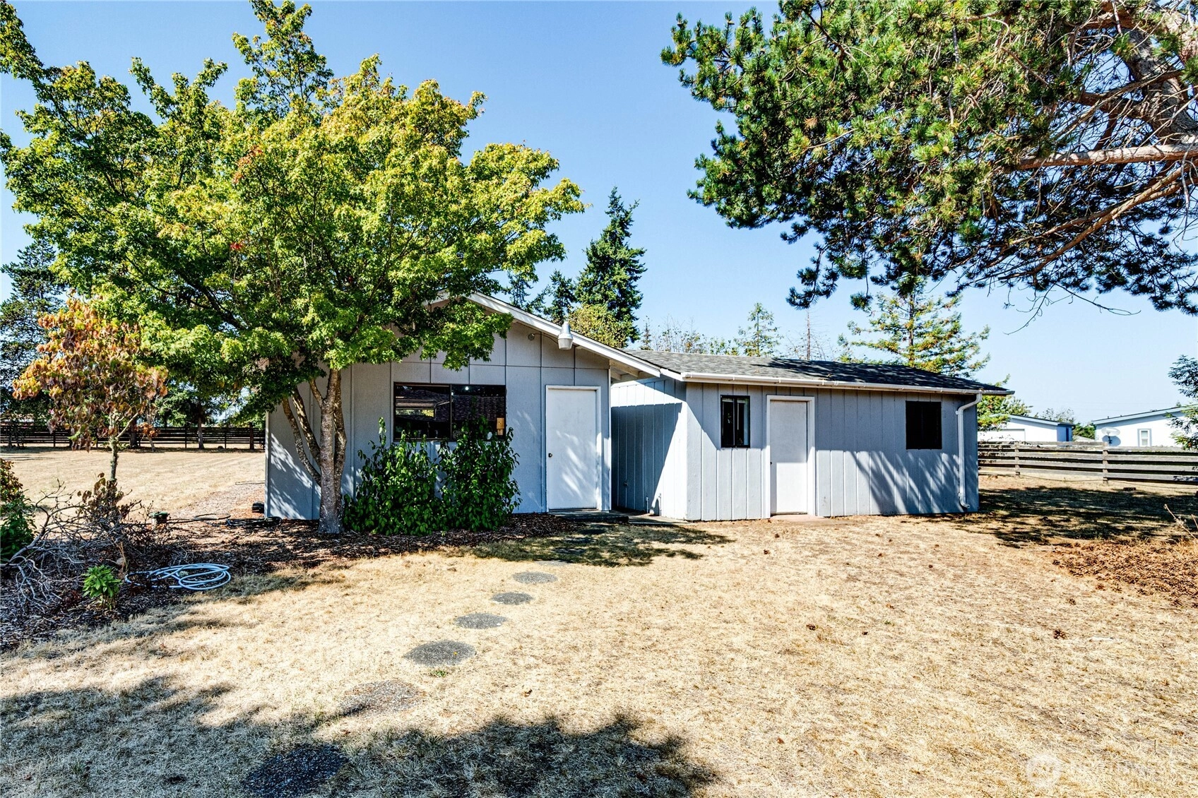 Welcome to your peaceful retreat in beautiful Sequim, Washington! This charming 3 bedroom, 2 bath home sits on a level 1.04 acre lot on a dead end street, offering privacy and convenience. Just minutes from shopping and other amenities, this 1328 square ft home features an attached garage, large sunroom, generous kitchen w/eat in bar, propane stove in the living room, plus a detached garage/workshop and a detached bonus room and tool shed. The property is surrounded by mature trees, includes a circular driveway for easy access. Enjoy the benefits of a private well, septic and Sequim irrigation, giving you added independence. A rare find in a prime location!