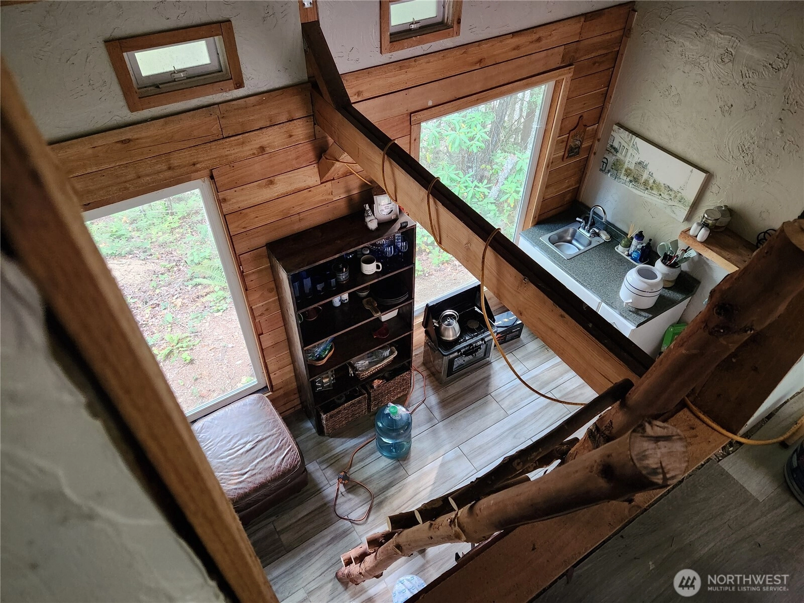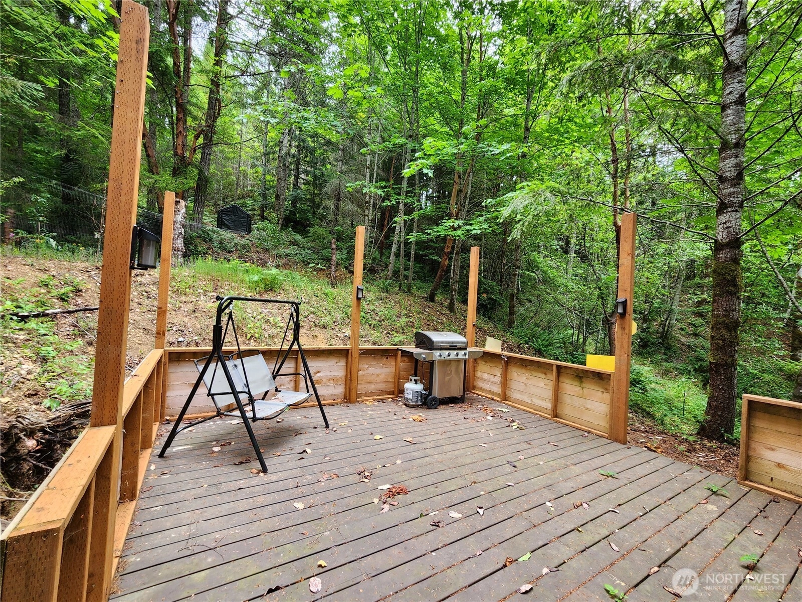 Come and get away from it all with this lot and tiny home nestled in the forest! Cozy living area with tall windows, dining bar, bedroom, and a large loft area all looking out to the trees. Complete with deck for relaxing, barbequing, reading in the porch swing. Also has a storage building with a composting toilet. Additional storage provided with a hoop tent. Ability to hook up to the Lazy C water system and electricity at the street make adding utilities more affordable. Ownership comes with access to the community river park on the Dosewallips River. Perfect base camp for exploring all the Olympic Peninsula has to offer. Most contents of the home and storage building can convey with sale.
