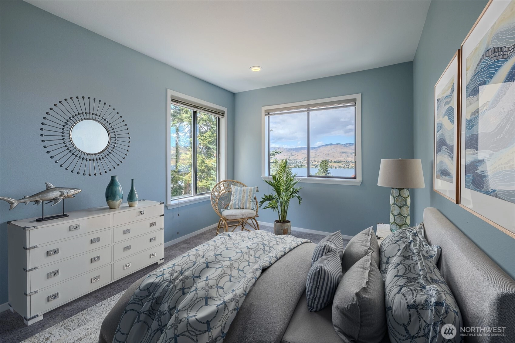 Come relax at the lake - this freshly remodeled South Shore custom home is move-in ready. The spacious Sunnybank neighborhood offers a gated marina and includes a rare DEEDED BOAT SLIP. Large additional living space downstairs opens to yard and offers plenty of storage. First floor bonus room for home office or exercise with gated access to dog run, play yard or garden. Custom kitchen cabinetry, leathered granite counters, stainless appliances. New: solid wood interior doors, baseboards, paint, bathrooms, Coretec LVP flooring, lighting, bedroom carpet, AC/furnace and water heater. Mature landscaping, fruit trees, lake/mountain views. New roof (2022), large level lot with future expansion potential. Close to town in a tranquil neighborhood.