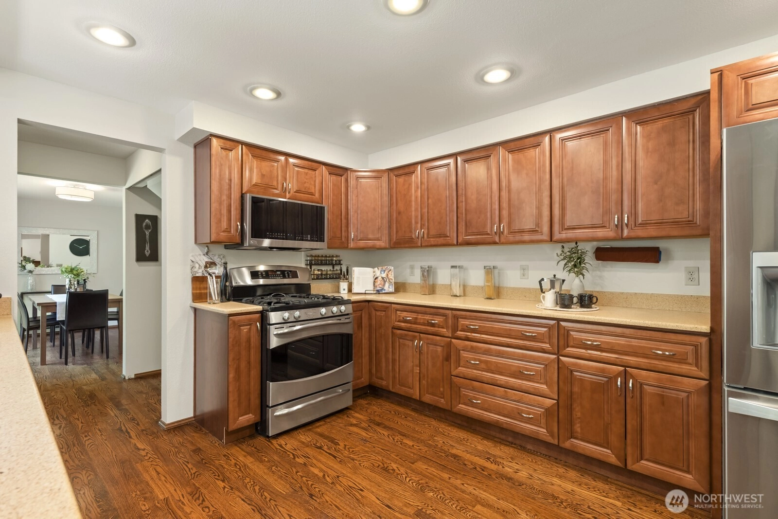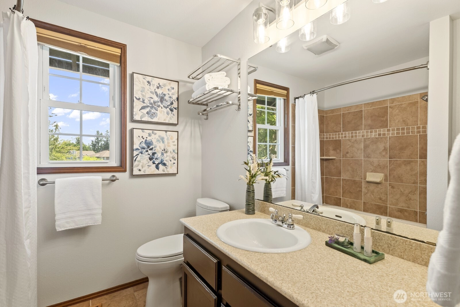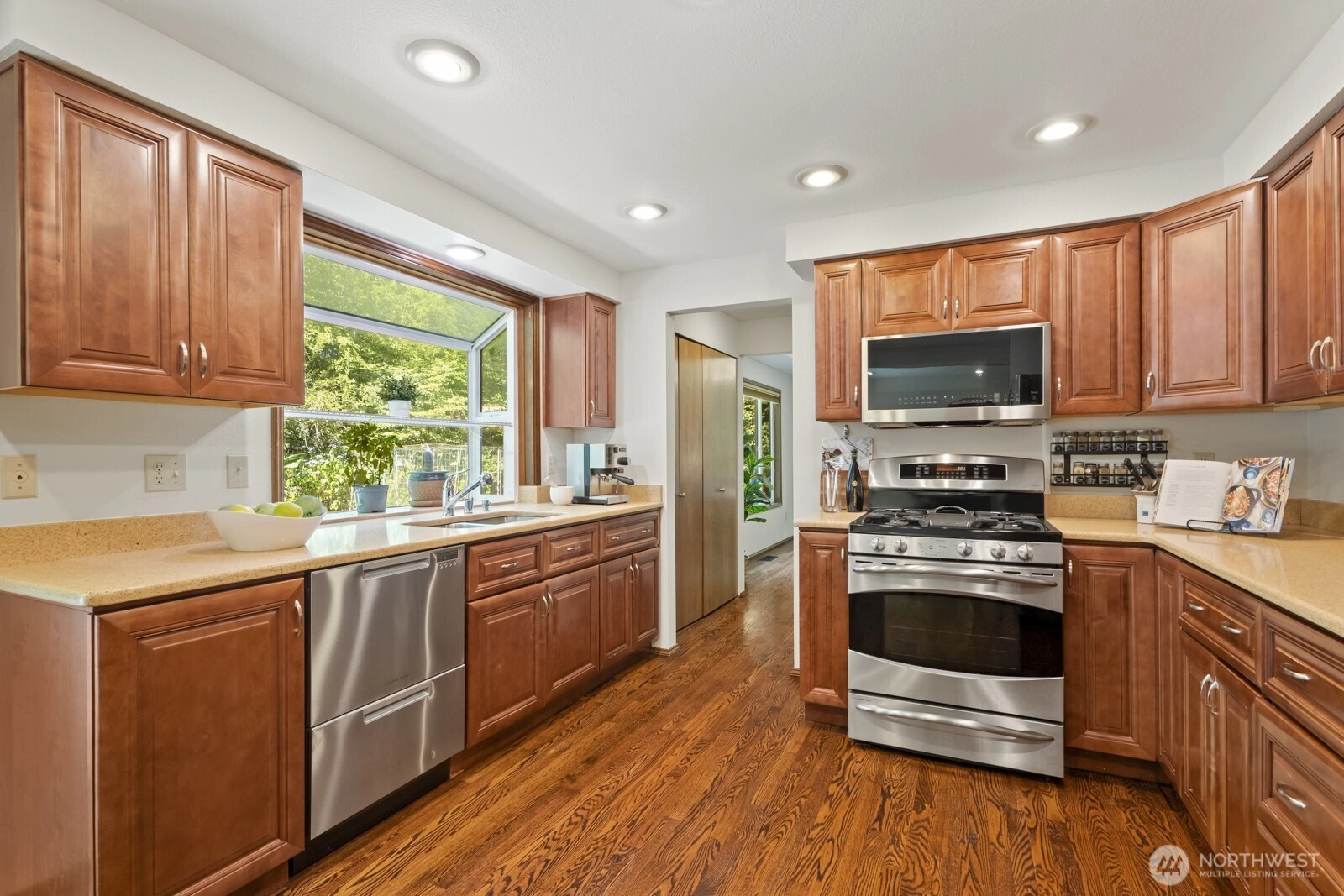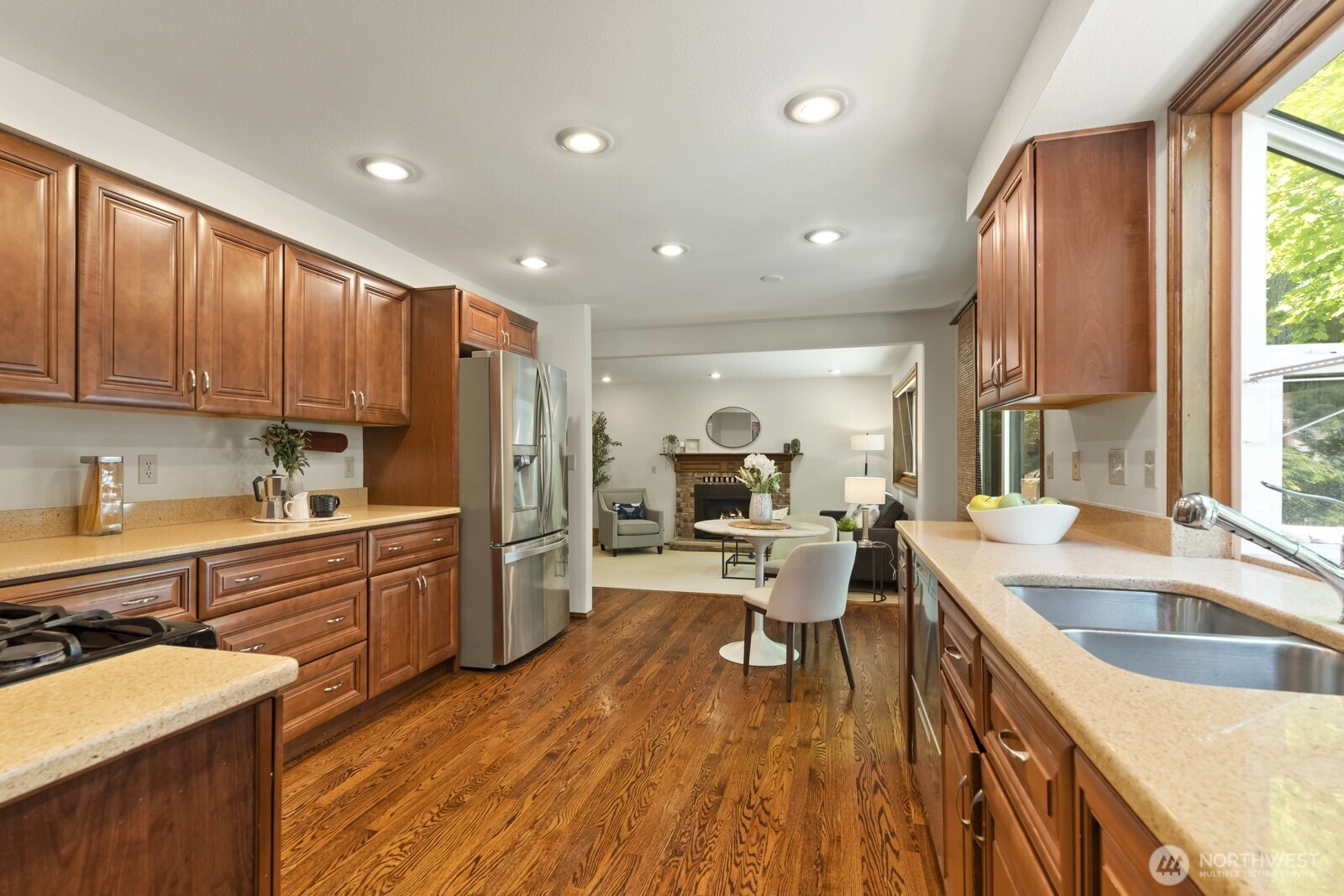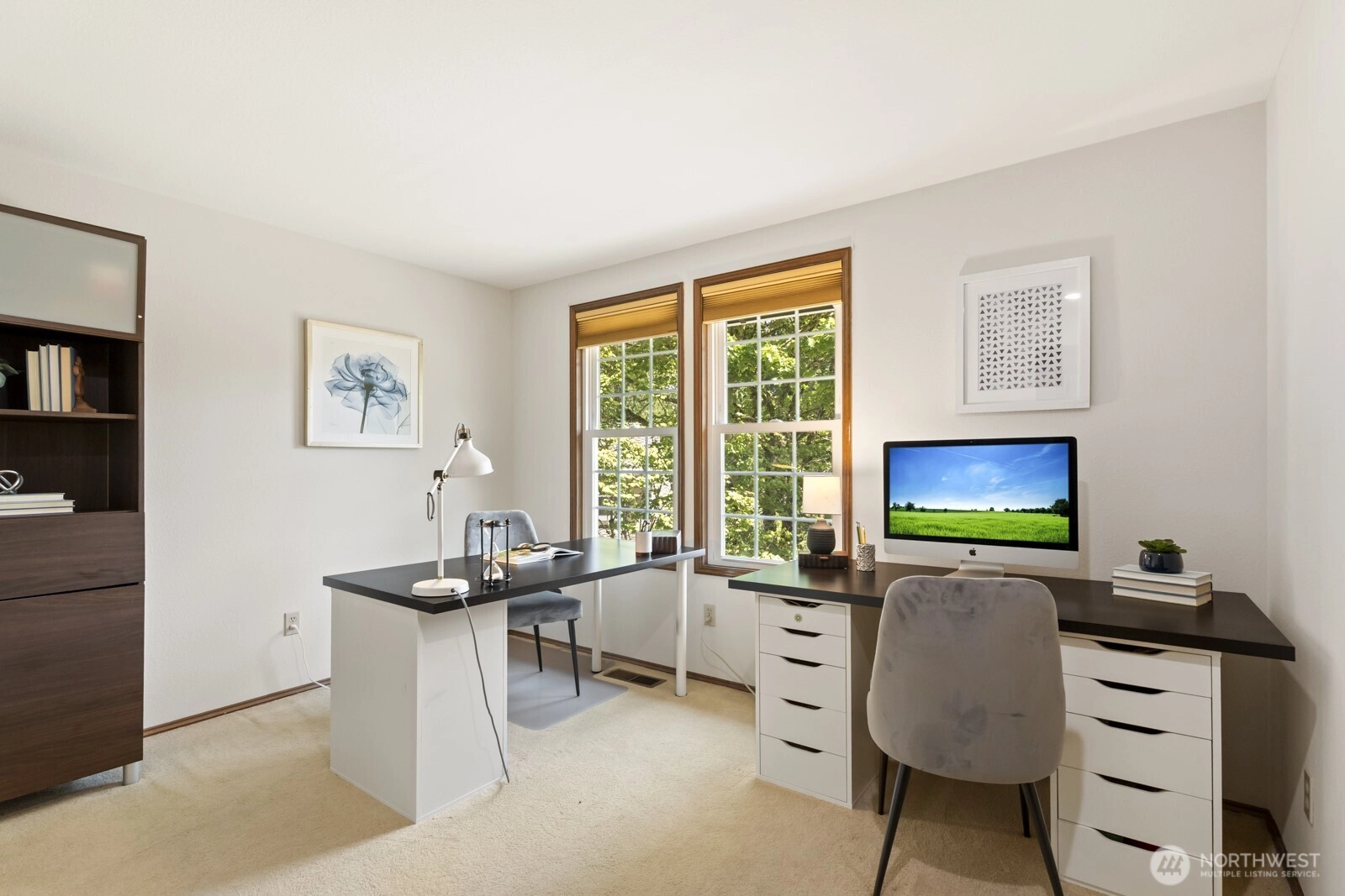 Perfectly centered between both Redmond & Kirkland, you'll have access to the best of the Eastside from this lovingly maintained Westbrook home. Savor abundant peace & quiet in this delightful cul-de-sac setting w/ a neighborhood park right down the street. A covered porch entry leads you into a functional main floor w/ a circular layout, hardwood floors, fresh int. paint, a refreshed kitchen & cozy fireplace. Light pours in through abundant windows looking out to a terraced yard w/ a patio & room for gardens, pets & play. 5 bedrooms upstairs = endless versatility! Efficient modern upgrades include a heat pump (A/C!) & solar panels (low energy bills!). Unbeatable location close to tech campuses, prized Lake WA schools, endless dining & 405.