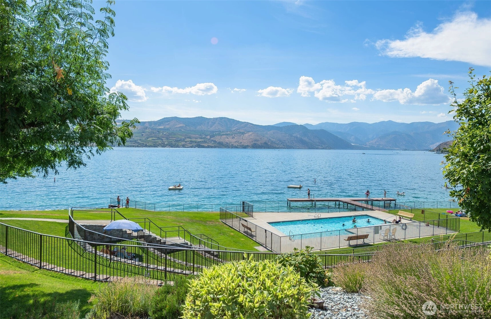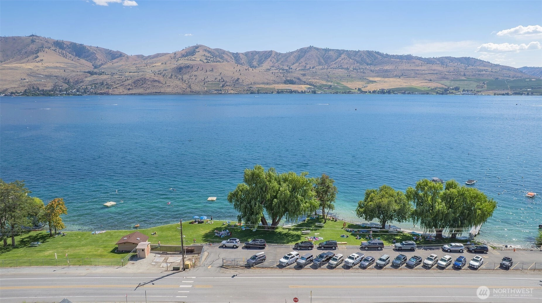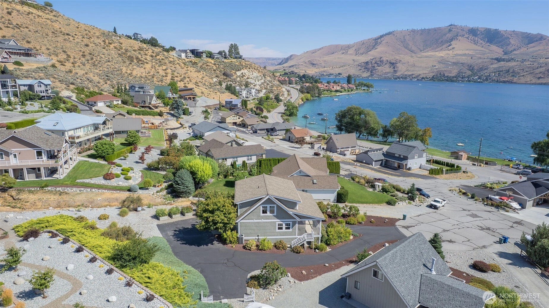 Huge lake views, great location, and best Chelan community waterfront neighborhood! Turnkey and ready for you to make memories. Still a lot of summer left to enjoy here. Less than a minute walk to the lakefront park. Huge lot, room to build detached garage and/or ADU. Large deck for entertaining and watching unbelievable sunsets! Gorgeous landscape and street appeal. Ideal vacation lake house or full time residence. Easy living as master w/ ensuite, kitchen, laundry and great room are all on main level! Two master suites. Can sleep 10+ people. Beautiful community waterfront parks, pristine community pools, boat launch, athletic court and playground. Close proximity to restaurants, wineries, stores, shopping and downtown Chelan.