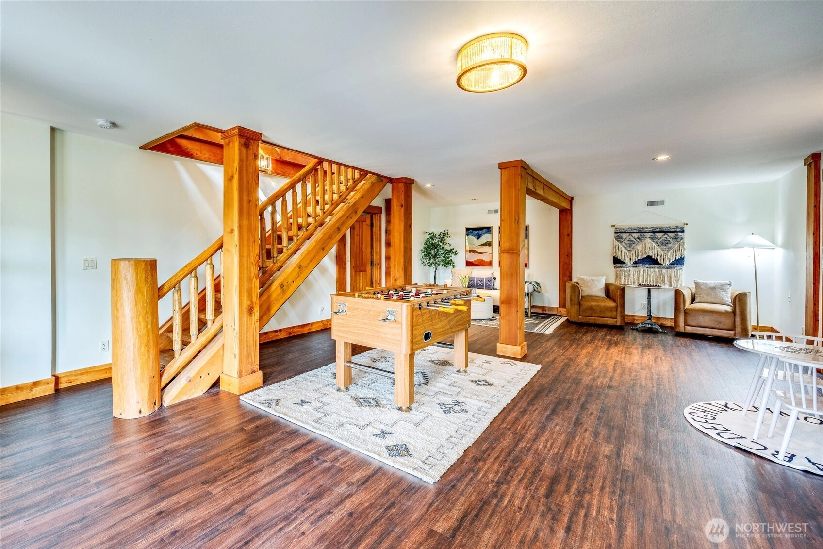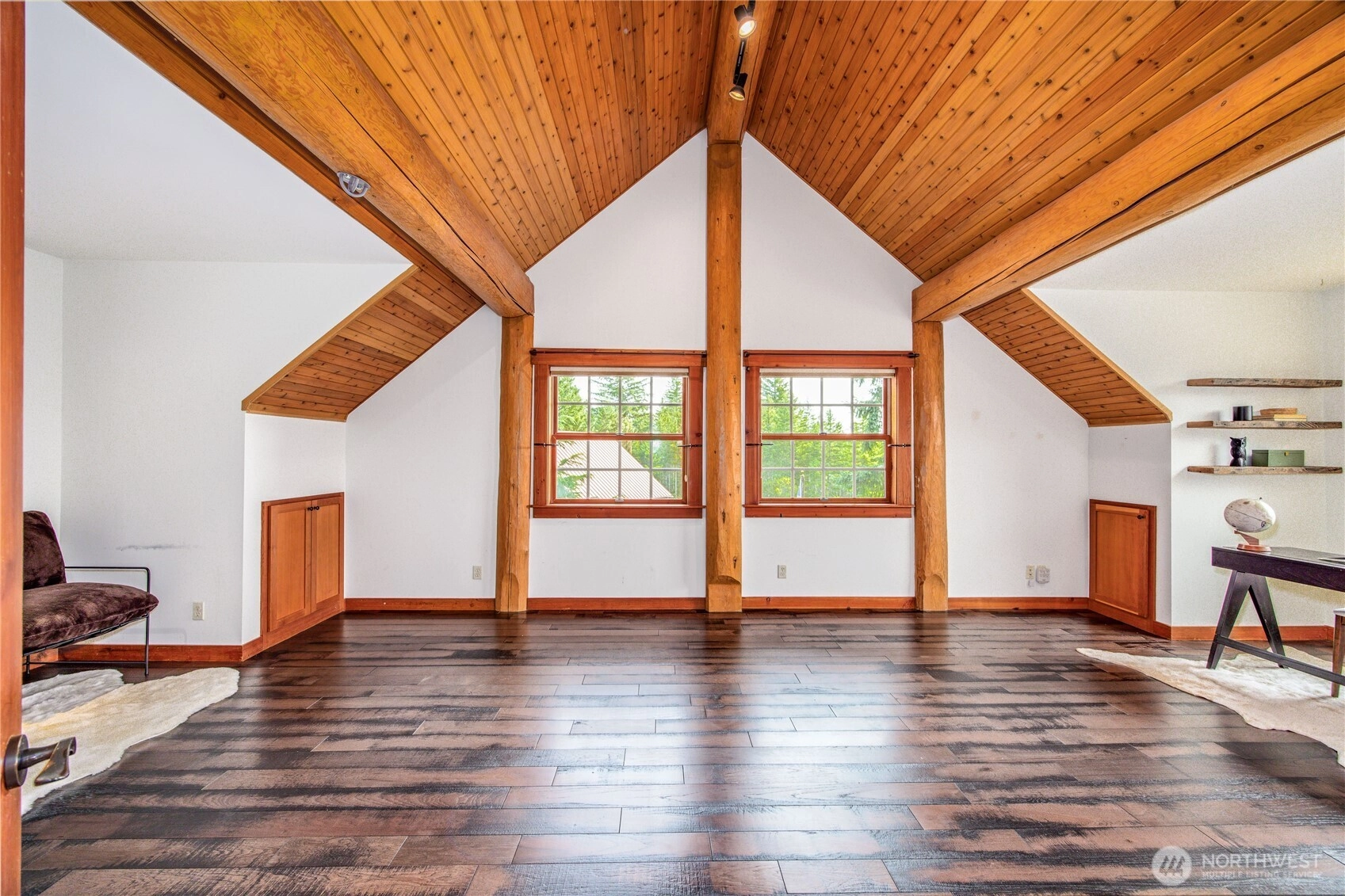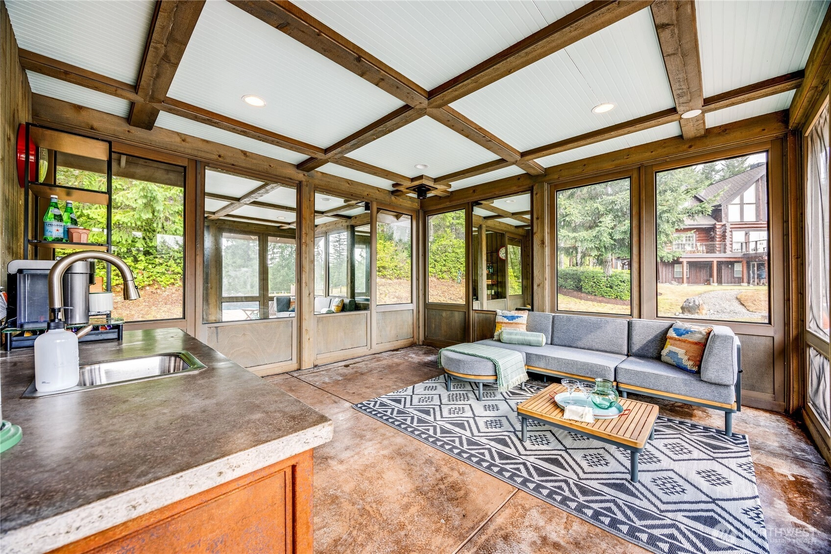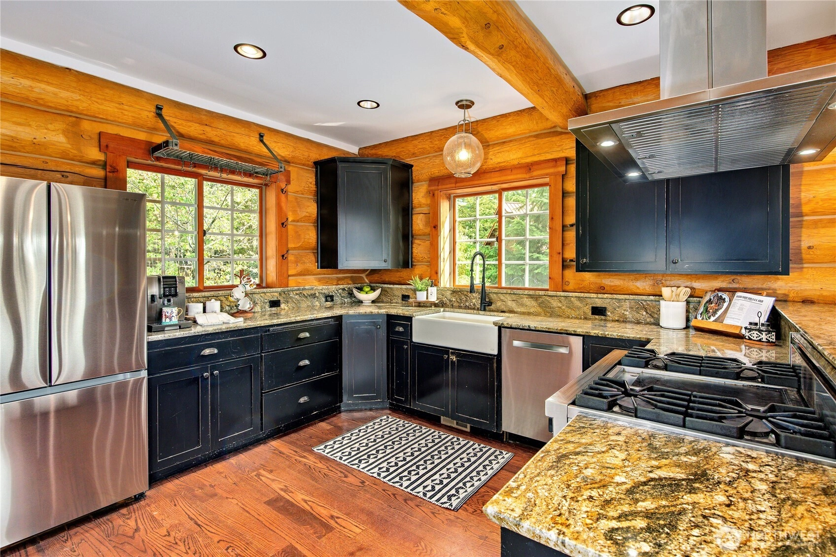 Discover breathtaking Northwest living on this peaceful and private, 19-acre estate. Custom craftsmanship and rustic elegance blend seamlessly in the stunning log home, with wood, slate, stone, and tile finishes. Soaring ceilings and walls of windows flood the home with natural light and sweeping views. The great room opens to a gourmet kitchen featuring SS appliances, Viking range, and a walk-in pantry with Viking standing freezer. The dining area and great room both feature French doors that open to an expansive deck overlooking your heated saltwater pool & spa, and charming pool house. A stately six-stall barn opens to fenced pastures. Enjoy the scenic drive and leave the stress of the big city behind. Your personal retreat awaits!