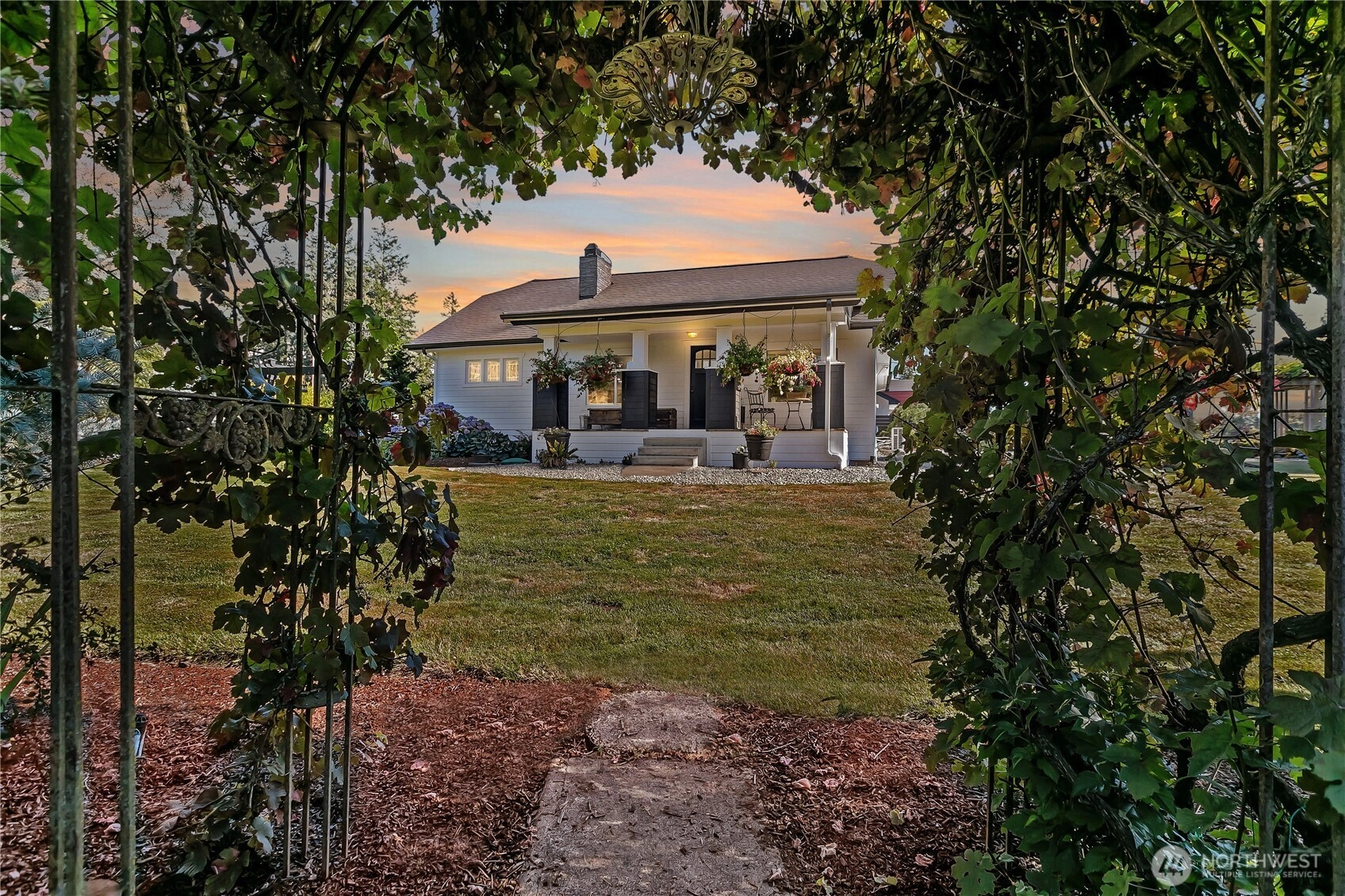 Improved Price! Charming & beautifully updated 1927 farmhouse on 1.5 fully fenced acres with 3 beds, 1 full bath, ¾ bath & ½ bath. Primary bedroom on main with custom closet & spa-style bath. Gourmet kitchen features maple cabinets, granite counters, stainless appliances. Maple hardwoods, fir doors & antique tin ceiling preserve vintage charm. Cozy living room with wood-burning insert. Outdoor features: Catalina swim spa, 10x12 greenhouse, pasture space—ideal for a hobby farm or horse. Detached 24x31 shop RV carport-14' at the Sides, 16' in the center, 20' Wide & 32' Long, additional RV space with full hookup, oversized 2-car garage, automatic gate.