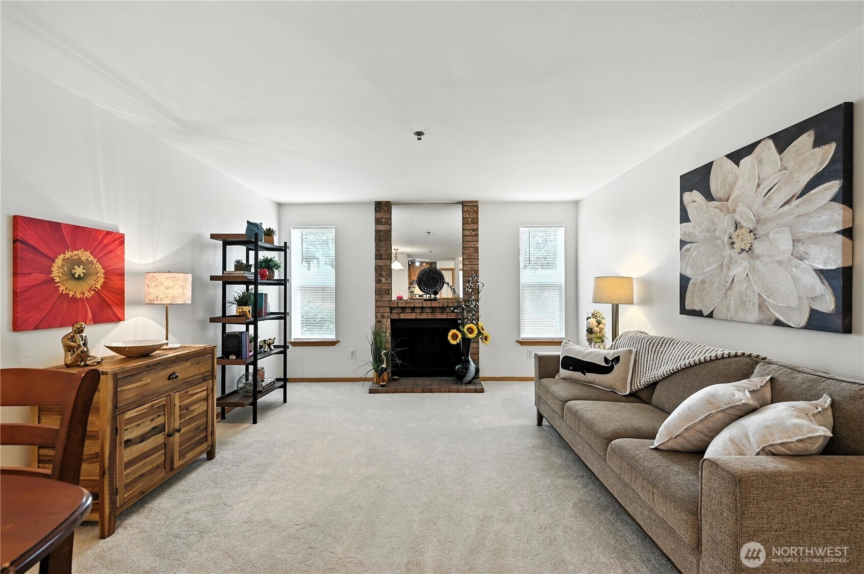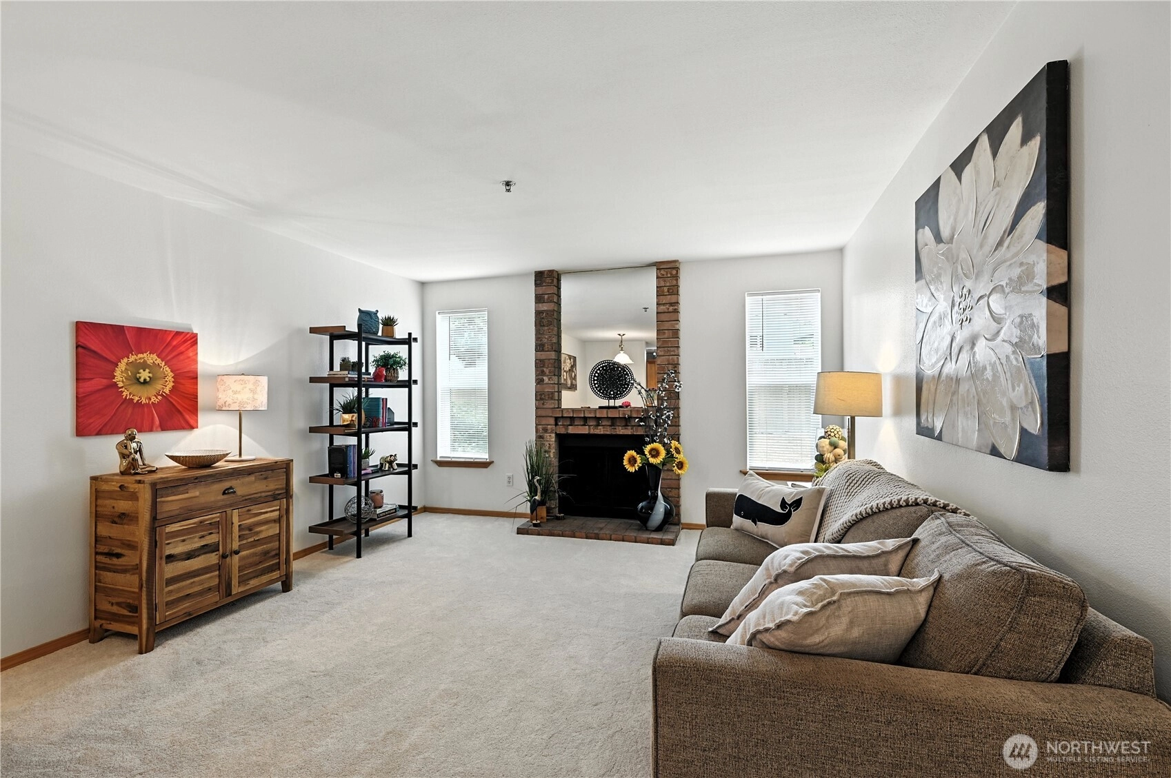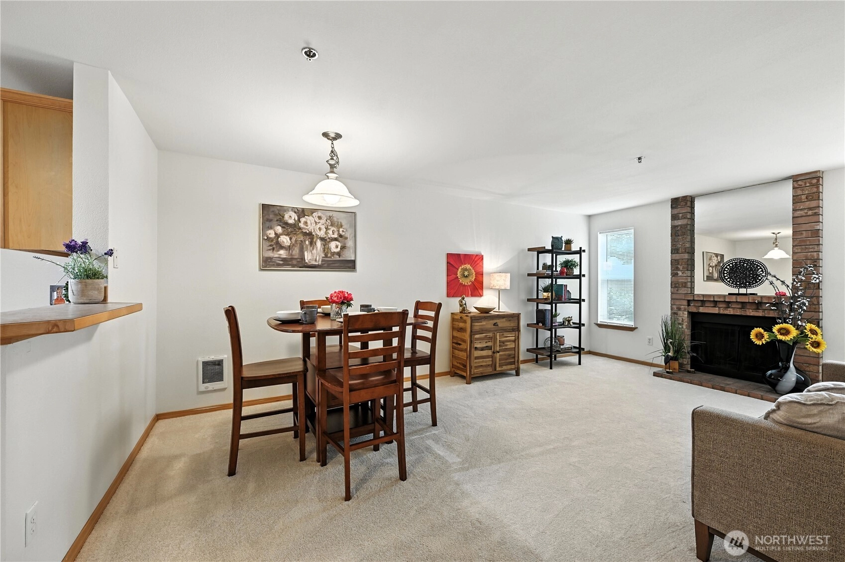 Welcome to the secure and gated Carlisle Creek community! Affordable living. This move-in-ready ground floor condo offers an open layout with new carpet, paint and a cozy wood-burning fireplace. The kitchen features stainless steel appliances. The two bedrooms are generously sized, dining room, living room and a full bathroom, in-unit laundry round out the space. Pets allowed with restrictions. Just six steps up to enter the unit, with one reserved parking space conveniently located. Community amenities include a clubhouse, pool, and playground. Shopping, restaurants, entertainment are all just a short distance away. Ideally located near the bus line, I-5, Boeing, Paine Field, Providence, Naval Station Everett, and the new Dick’s Drive-In.