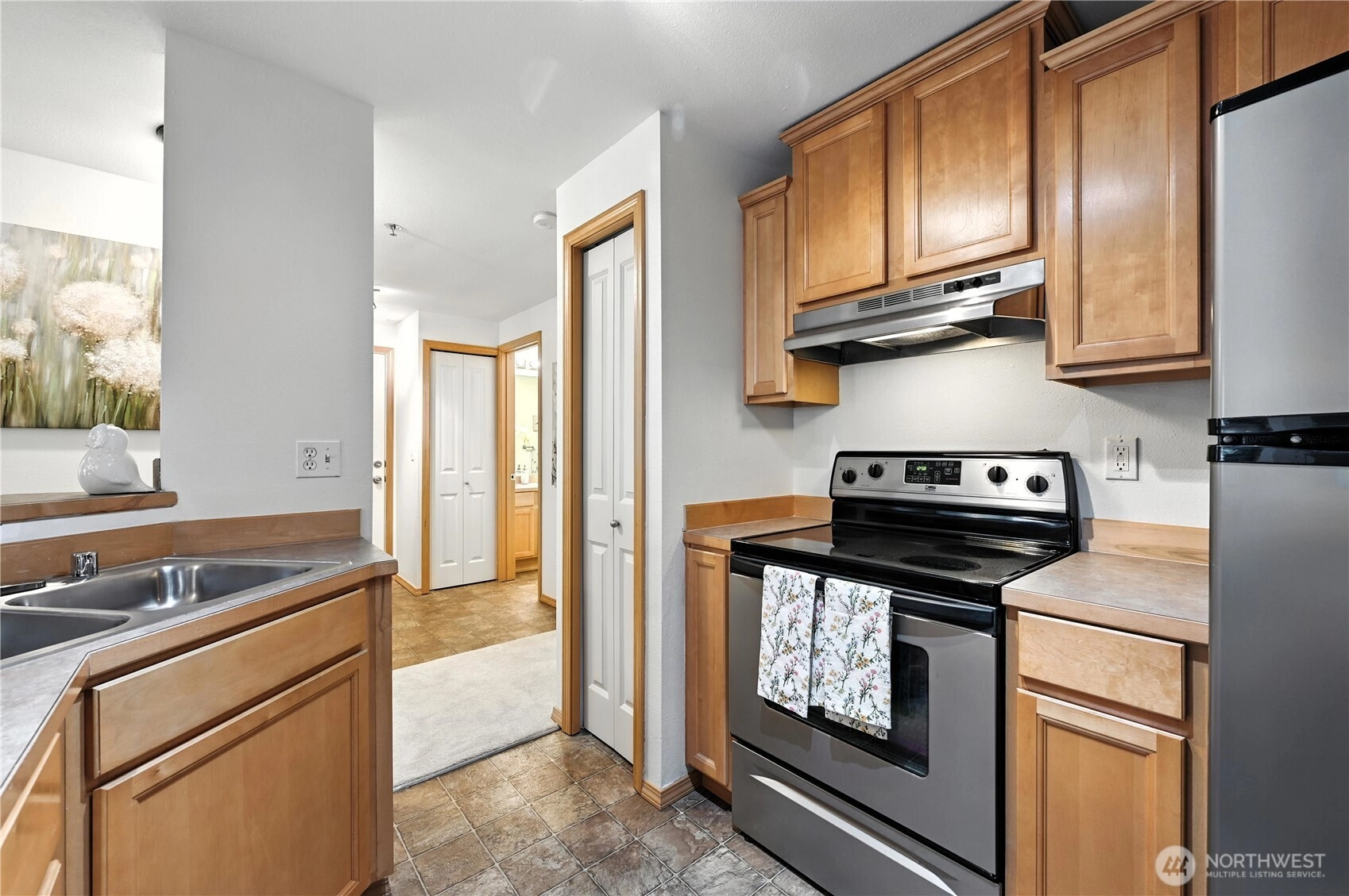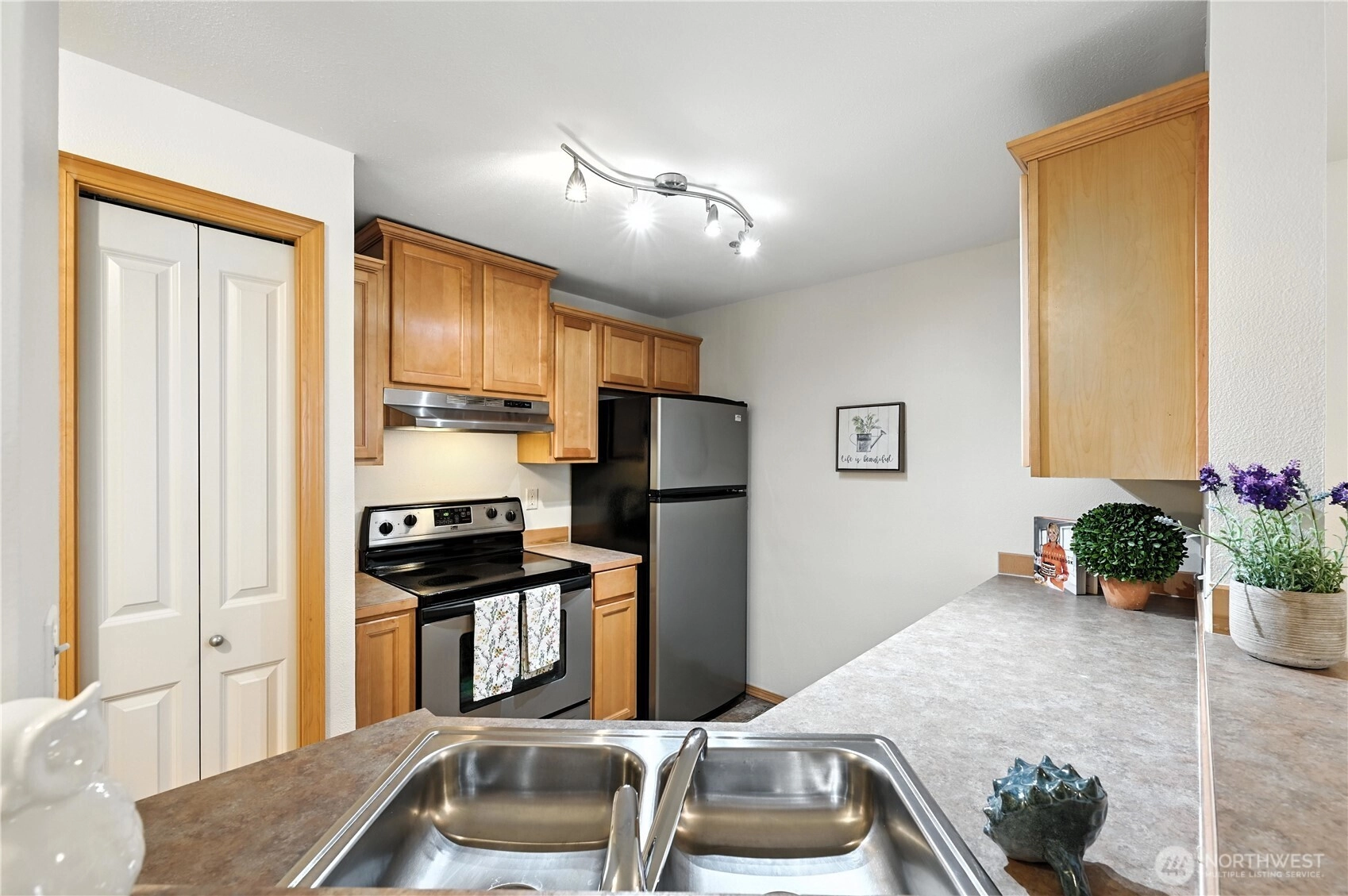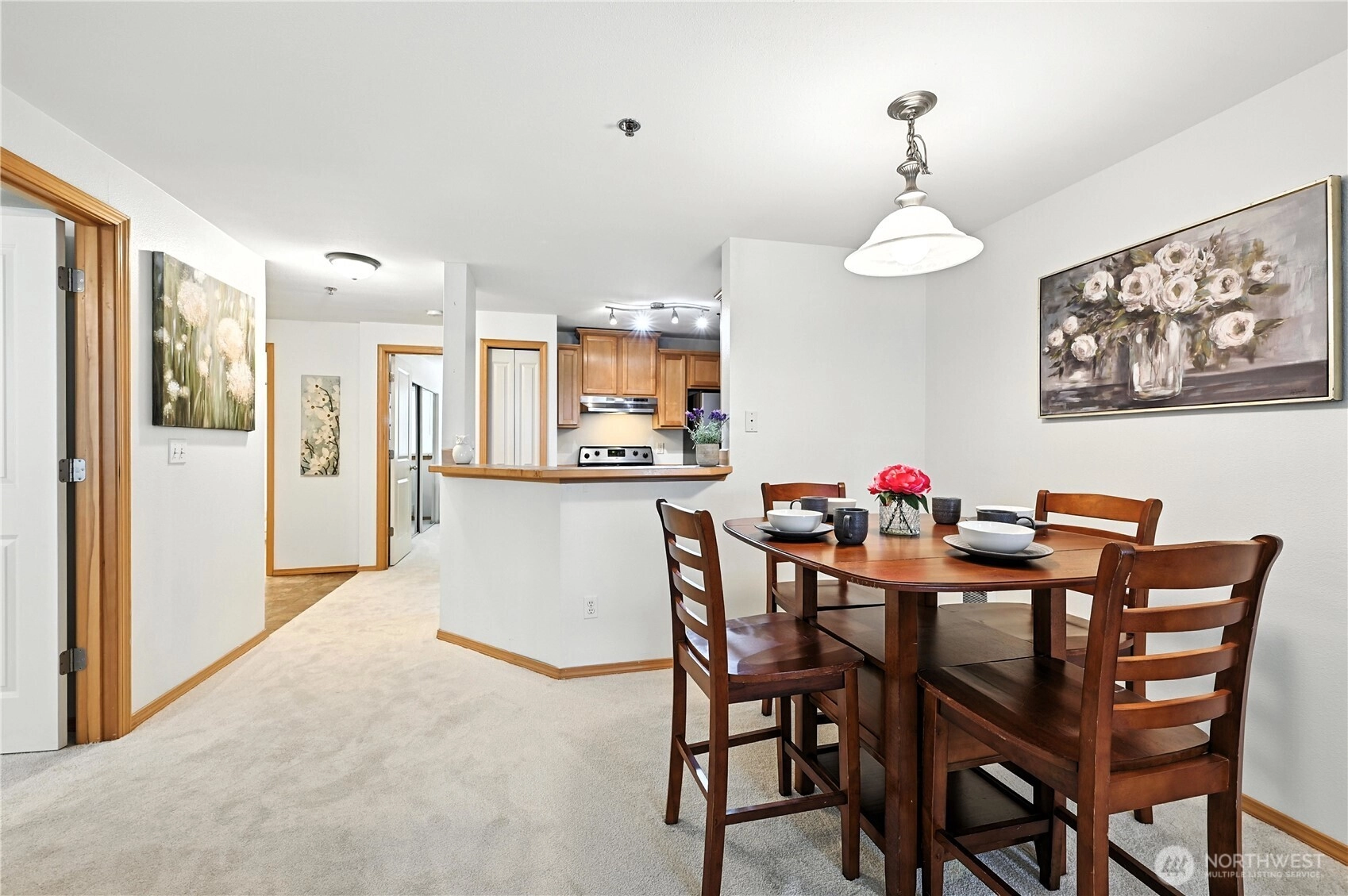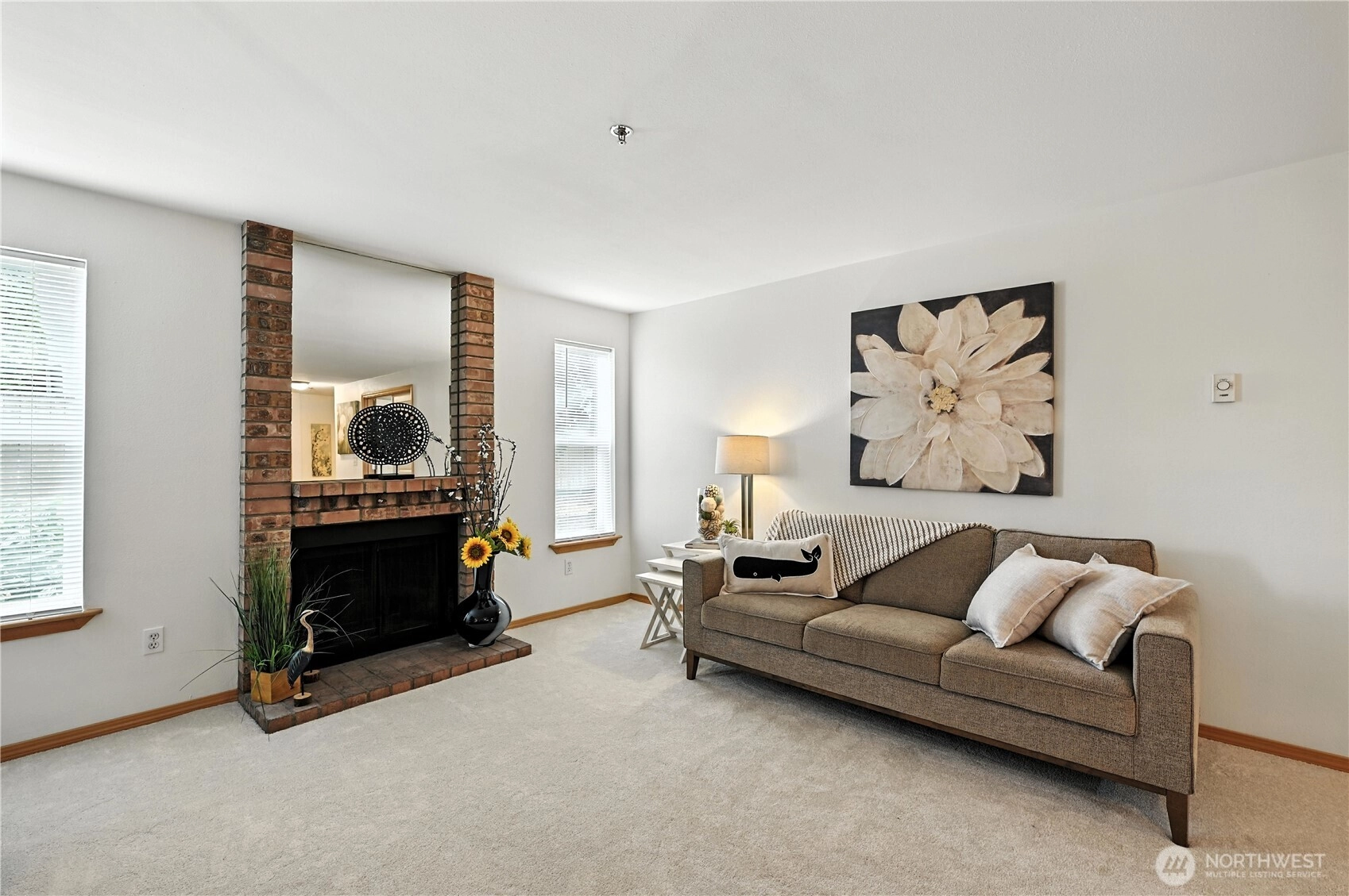 Welcome to the secure and gated Carlisle Creek community! Affordable living. This move-in-ready ground floor condo offers an open layout with new carpet, paint and a cozy wood-burning fireplace. The kitchen features stainless steel appliances. The two bedrooms are generously sized, dining room, living room and a full bathroom, in-unit laundry round out the space. Pets allowed with restrictions. Just six steps up to enter the unit, with one reserved parking space conveniently located. Community amenities include a clubhouse, pool, and playground. Shopping, restaurants, entertainment are all just a short distance away. Ideally located near the bus line, I-5, Boeing, Paine Field, Providence, Naval Station Everett, and the new Dick’s Drive-In.