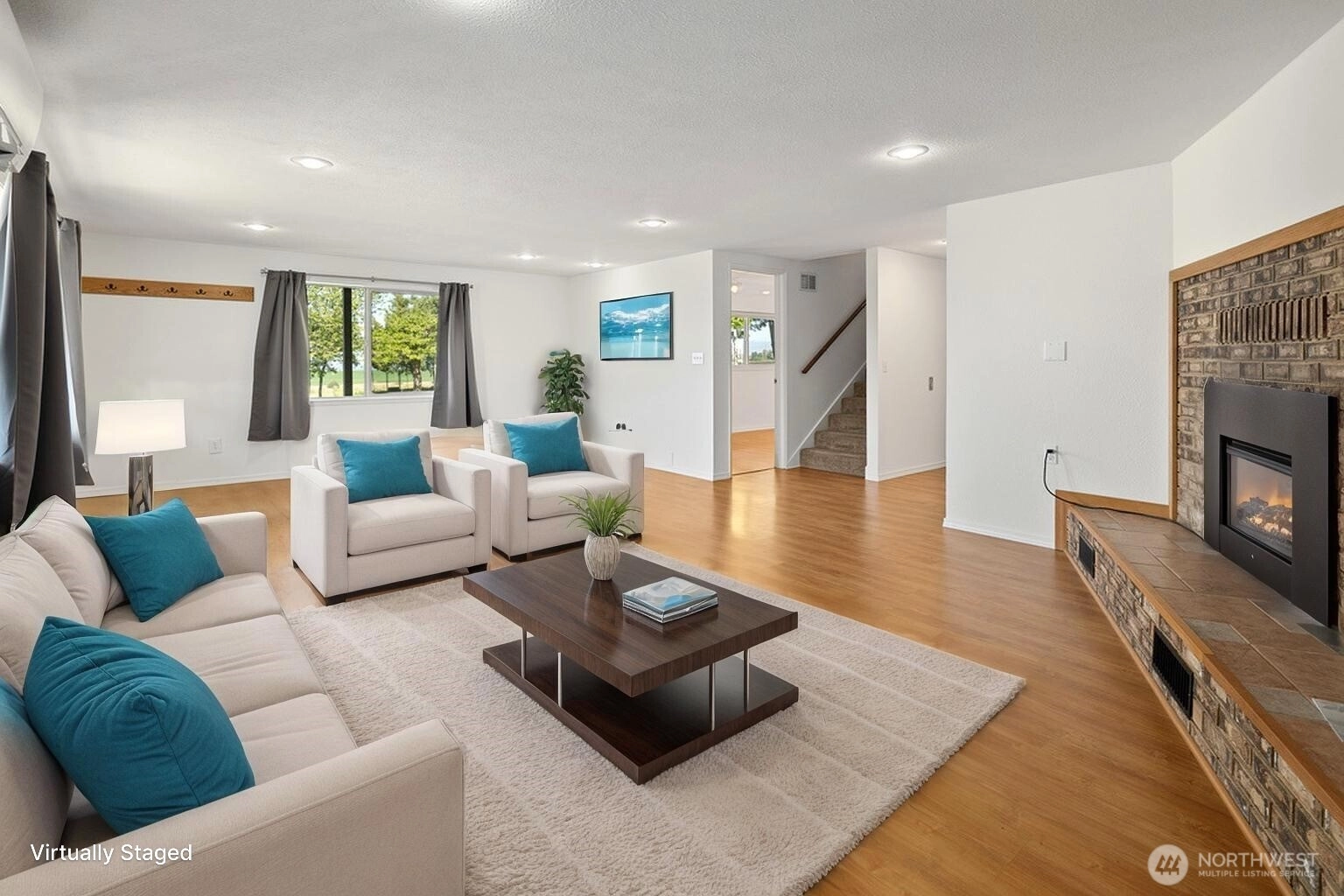Pure country & amazing valley & Mt Rainier views! On over 7 acres, this home lives like a rambler, but has a full daylight basement for extra living space. Newer hvac system keeps it comfy along w/ a gas fireplace on each floor. Bright rooms have large windows that frame expansive views. The primary on the main has deck access & across from bath. Useful utility room w/ sink is perfect for country life. Downstairs is a huge rec room, 2 guest bedrooms, storage room, & full bath. Step out on the wrap around deck, & gaze over a fully fenced backyard w/ mature trees/landscape. The spacious shop is a woodworkers paradise. Your animals will have the barn & fenced paddocks. Fruit trees, garden space, & alfalfa fields. This property has it all!