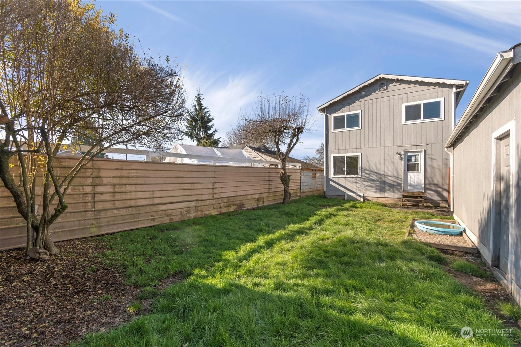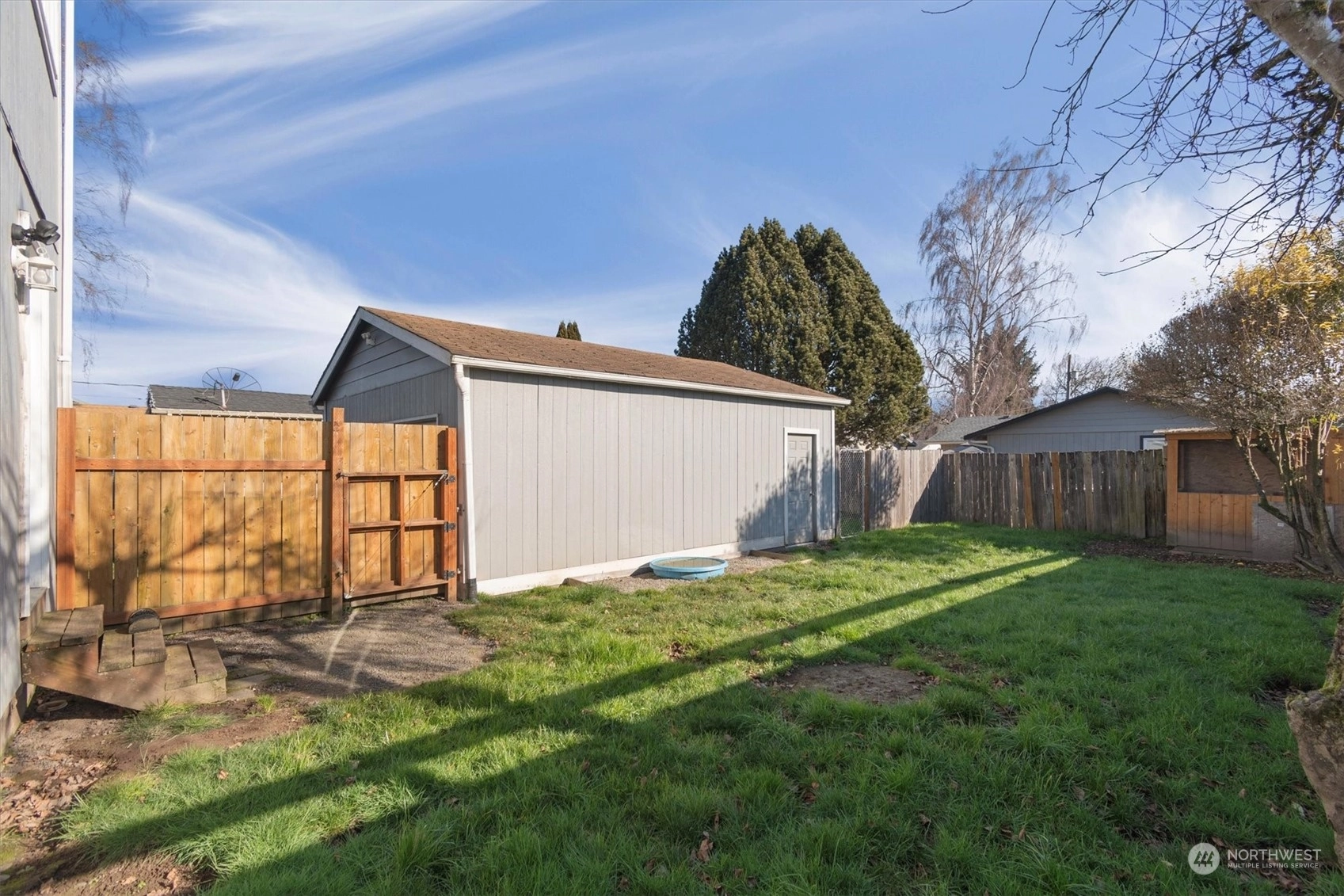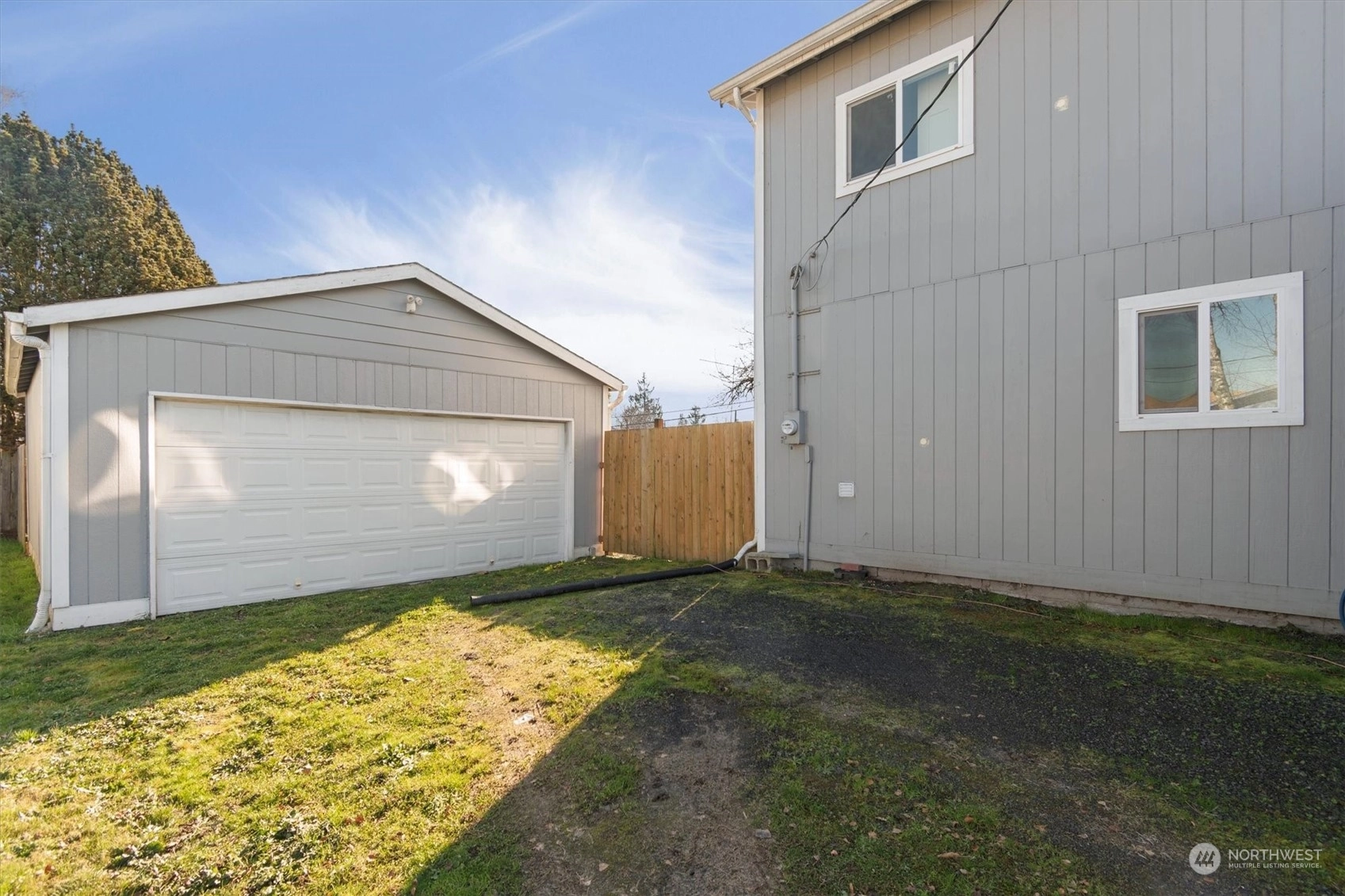 This updated 4-bedroom home features an extra-large detached garage. It includes double-pane storm windows, updated cabinets, countertops, doors, flooring, and fixtures, along with an added bathroom and closet in the main bedroom. The large driveway provides ample space for RV parking. The low-maintenance yard has a separate fenced area behind the garage. This home offers plenty of space and is conveniently located near shopping and Interstate 5.
