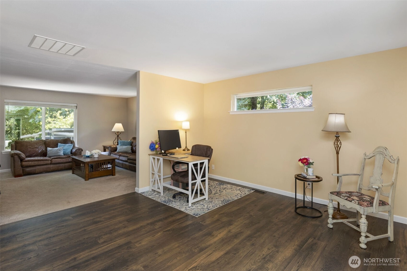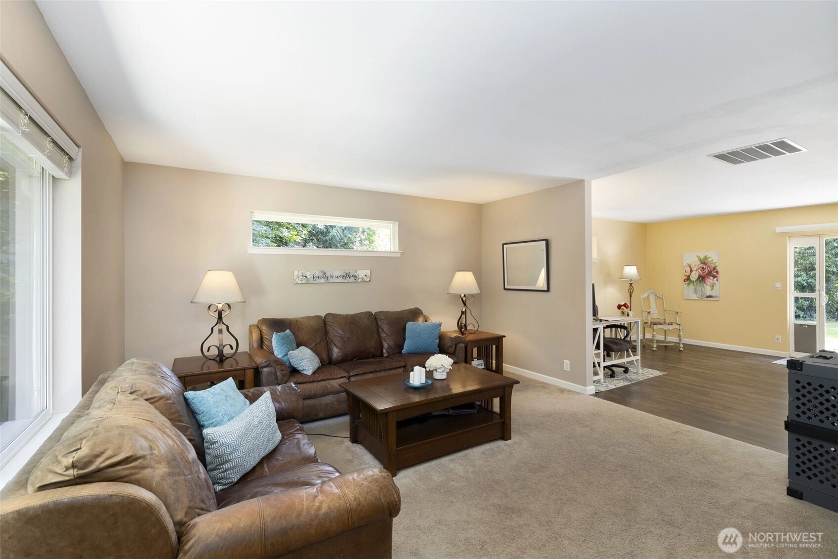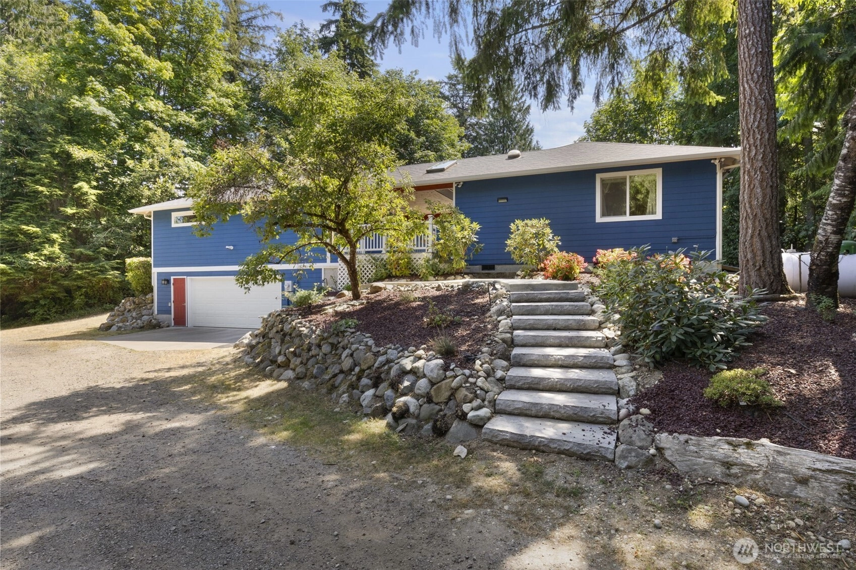 Rare opportunity—TWO charming homes on ONE lot in Kingston! Ideal for multigenerational living, MIL, ADU, rental income, or co-ownership. The 1BR+office/1.75BA, 1,440sqft main home features LVP flooring, open layout, skylights, spacious kitchen & large 2-car garage. The 2BR/1BA, 912sqft second home is beautifully updated with Craftsman-style cabinets, solid-surface counters & spa-like bath w/skylight, tiled shower, bidet, heated floor & quartz vanity. A covered, skylit breezeway connects the homes while preserving privacy. Nearly 2 acres w/fruit trees, ample parking, SAMMY the Sasquatch & a cozy, window-lined potting shed. NEW roof, ext/int. paint! Minutes to Kingston ferries, shops, schools, & dining. Seller-procured inspection available.
