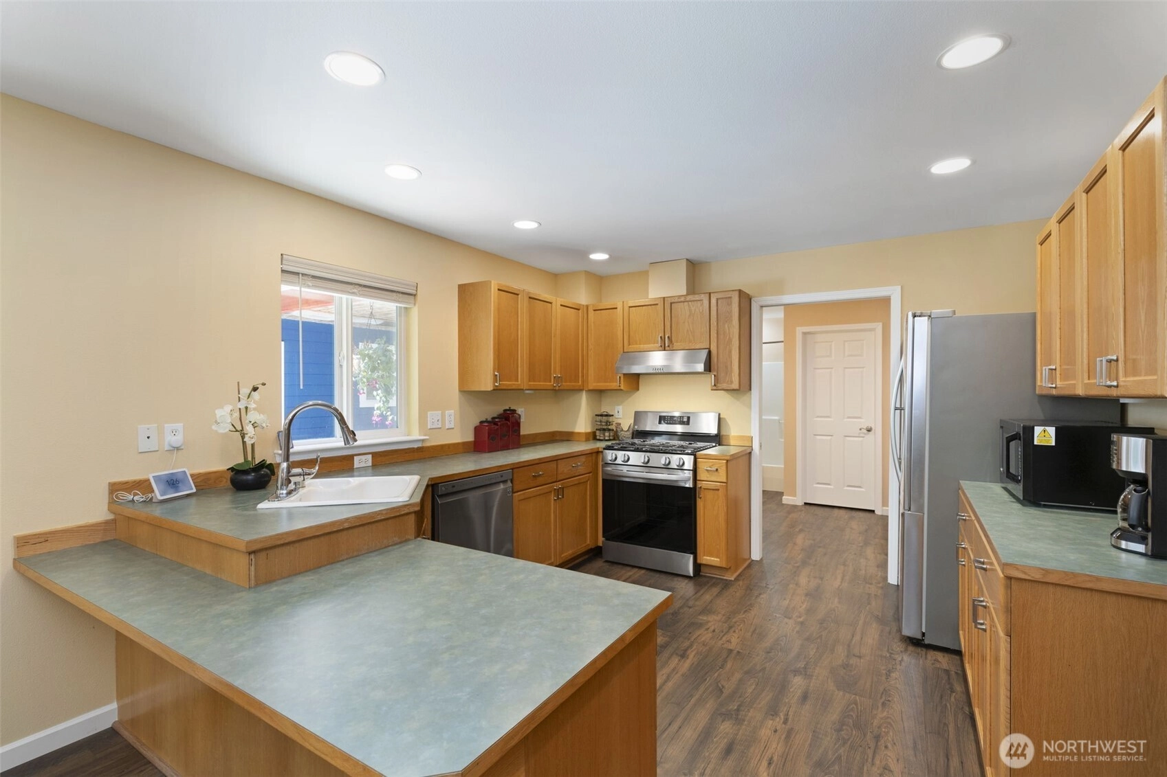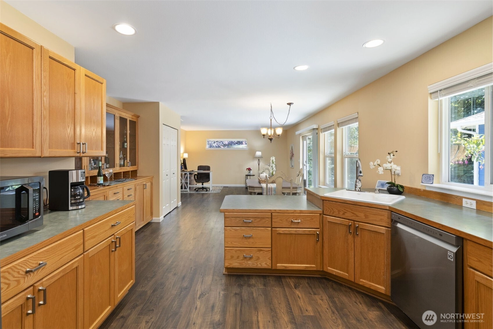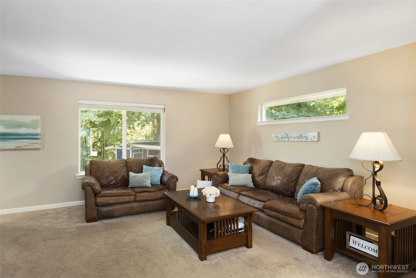 Rare opportunity—TWO charming homes on ONE lot in Kingston! Ideal for multigenerational living, MIL, ADU, rental income, or co-ownership. The 1BR+office/1.75BA, 1,440sqft main home features LVP flooring, open layout, skylights, spacious kitchen & large 2-car garage. The 2BR/1BA, 912sqft second home is beautifully updated with Craftsman-style cabinets, solid-surface counters & spa-like bath w/skylight, tiled shower, bidet, heated floor & quartz vanity. A covered, skylit breezeway connects the homes while preserving privacy. Nearly 2 acres w/fruit trees, ample parking, SAMMY the Sasquatch & a cozy, window-lined potting shed. NEW roof, ext/int. paint! Minutes to Kingston ferries, shops, schools, & dining. Seller-procured inspection available.