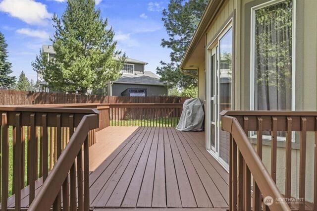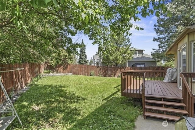 This well maintained one owner home sits on an oversized corner lot in the desirable Northwood neighborhood with NO HOA! Features include granite countertops, new furnace (2022), newer roof (2018), new carpet on 7/14/25 and paint (2025), wood flooring & gas fireplace. The primary bedroom has a walk-in closet w/bath & double sink. The 3 family rooms offer exceptional flexibility for everyone to relax, work or entertain. Off the kitchen is a large private deck with a fenced backyard. Sprinkler system throughout with storage shed. The mature landscaping includes your very own grapevine and generous cherry tree, adding both beauty and seasonal delight. Conveniently located on a quiet street just a short distance from local amenities.