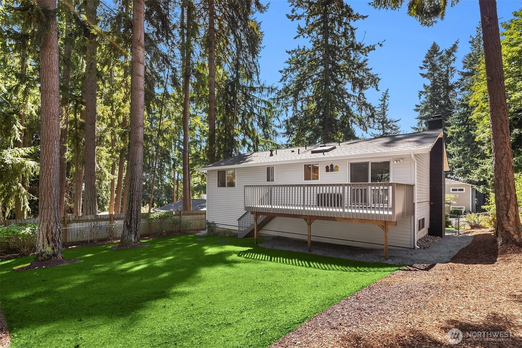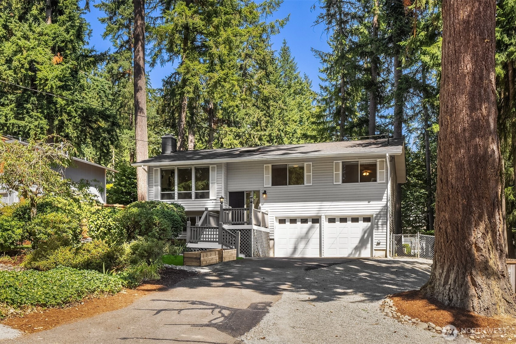 Unequivocally the BEST VALUE on the Plateau. Walk into instant equity. Do some remodeling and create even more equity. Seriously, this is an amazing opportunity. Vaulted ceilings and skylights flood the upper level with natural light. The living and dining areas flow seamlessly onto a spacious deck—ideal for entertaining or relaxing summer evenings in the newly landscaped, private backyard. The generous primary suite features a spacious sitting area. The lower-level offers flexible living with a large rec room, additional bedroom and ¾ bath—perfect for guests, work-from-home setups, or multi-generational living. Newer roof and gutters, and much more! Easy access to Redmond, Microsoft, I-90, 520, and top-rated LWSD schools.