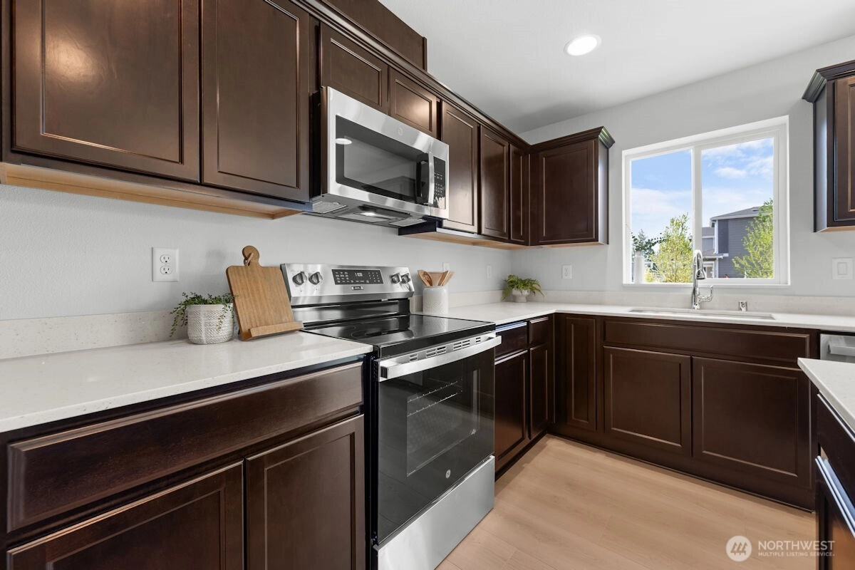 THE TYLER design A Plan lot 5 at the Serenity Trails community. At just under 1,500 SQFT, this 4-bedroom, 2.25-bathroom 2-story home offers elegant quartz countertops in the kitchen, efficient stainless steel appliances, gorgeous laminate hardwood flooring and white painted millwork. The Serenity Trails community is ideally situated between the thriving cities of Marysville and Lake Stevens, this new neighborhood offers a commuter-friendly and inviting place with restaurants, schools and shopping within minutes. Thoughtfully designed floorplans and timeless finishes offer comfort and style. Enjoy the benefits of NEW! New home warranty, energy efficient, low maintenance, updated safety and modern lifestyle design elements.