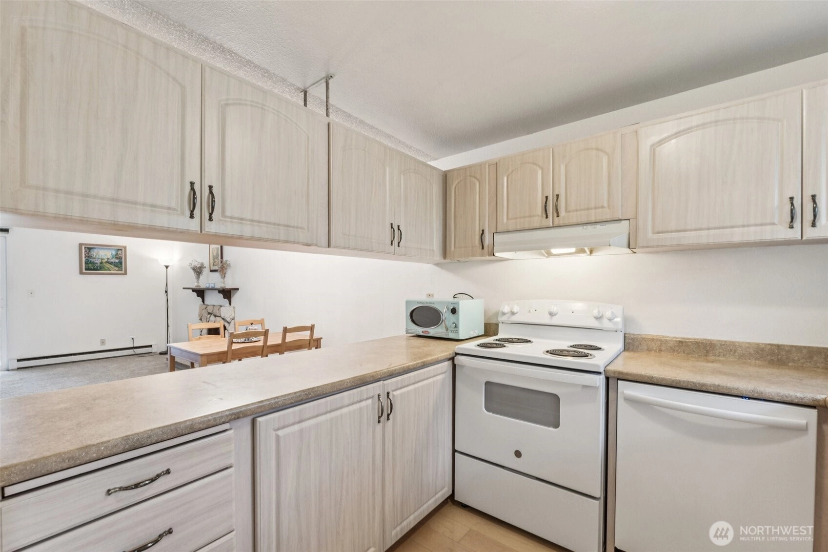 Location, convenience + comfort! This ground-floor condo is just minutes from I-5, the Lynnwood Transit Center, and active Light Rail access via Line 1—with Line 2 coming in 2026. Walk to Trader Joe’s, Kaiser Permanente, and nearby shopping. Only blocks to Edmonds College + Alderwood Mall, with 10+ major grocery stores nearby. Quiet unit with no stairs, cool in summer + warm in winter. Community amenities include a heated pool, rec room, storage, and assigned parking w/ extra guest spots. New carpet + range! No rental cap. Affordable HOA covers water, sewer, garbage, insurance + more. Edmonds School District.