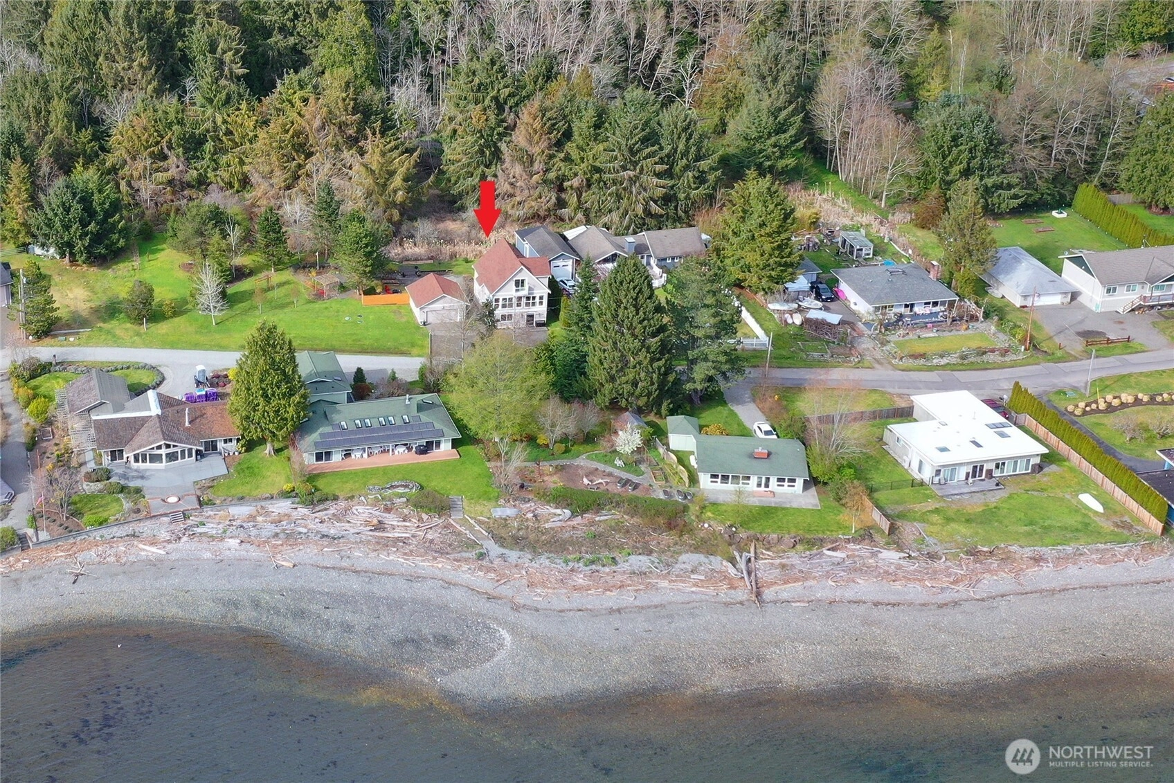 Beautiful custom multi level home with water views of the bay & Hood Canal on quiet dead end street off Shine Rd. Access to community park/beach & boat launch close by. Perfect for multi gen living. Bdrm & full bath on each floor. Two kits (one w/o stove), propane FP on main & upper floor. Very well maintained inside & out & gently lived in. Updates: Lux plank vinyl foors on main, new kit area on main, gorgeous glass & metal entry door, ext upper front of home, some new light fixtures & living room blinds. Large deck off the middle floor for easy access/w closed in storage underneath. Amazing landscape on oversized lot. Detached double gar/shop. Two tax parcels. Great location just 15 mins from stores/eats & services. Five min to the bridge
