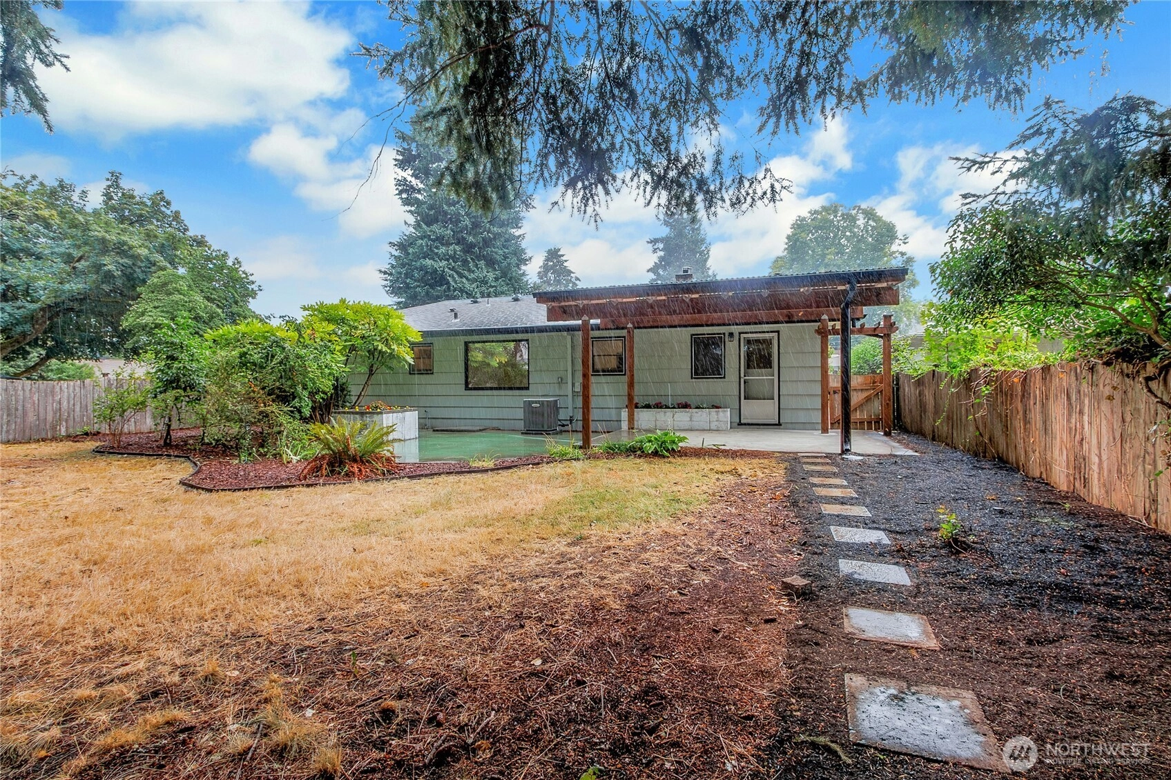 PRICE IMPROVEMENT!! Charming and completely renovated, this 3-bedroom, 1.75-bath home is move-in ready! Enjoy beautifully refinished hardwood oak floors throughout, AC, and a fully updated kitchen featuring shaker cabinets, modern appliances, and stylish finishes. Both bathrooms are newly tiled and tastefully updated. The home sits on a spacious lot with fresh landscaping, fruit trees, a covered patio perfect for entertaining, and a versatile covered outbuilding. Conveniently located with easy access to the freeway, city amenities, and JBLM. Don’t miss this turnkey gem!