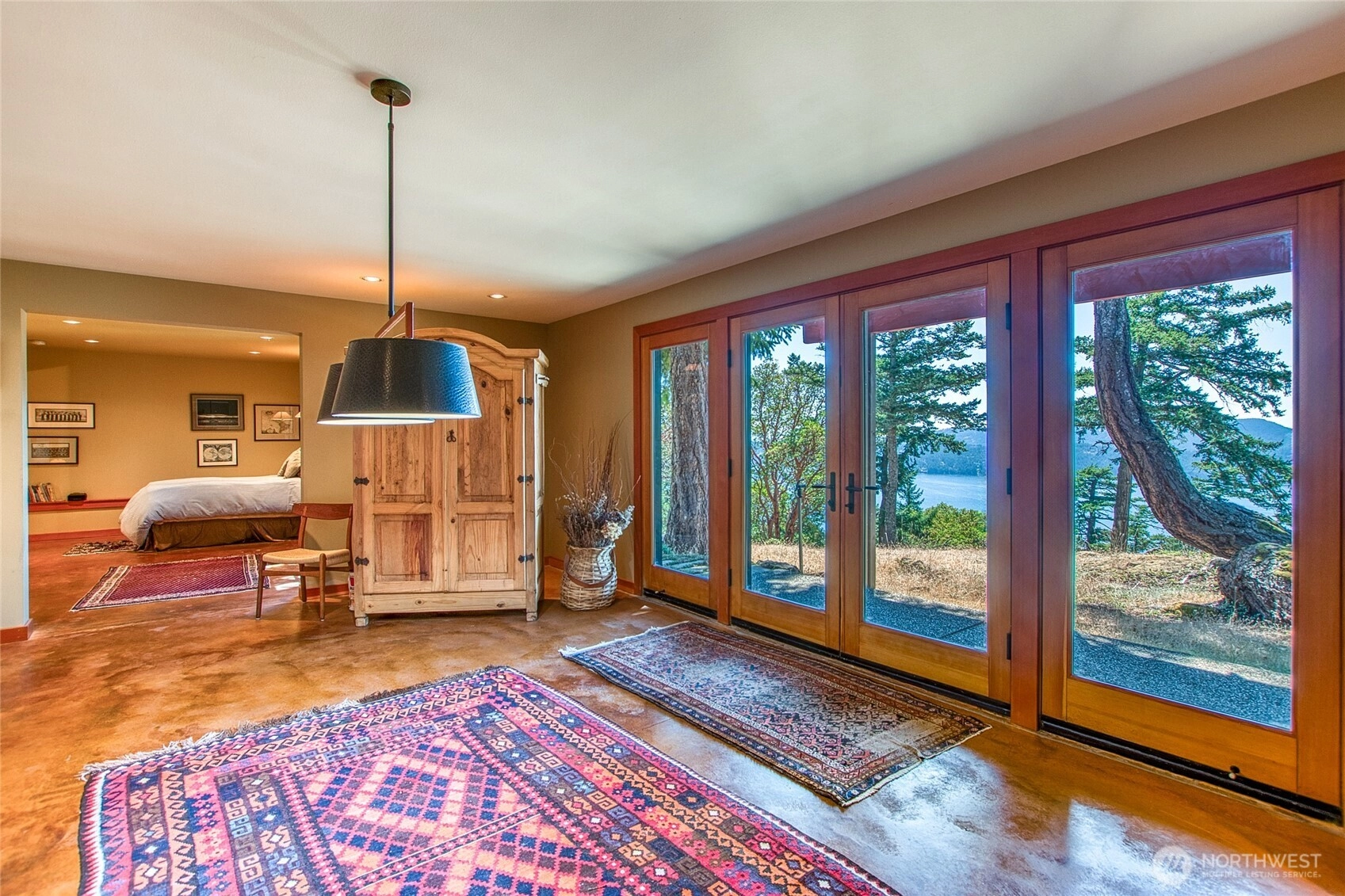Offered is a NW Contemporary Buck Mountain 2+ bed view home, located on 7+ acres, w/ west sunset views! This home has it all; detached guest cottage/shop, 2 car garage + loft, private yoga studio and 1/4 mile of hiking trails. Includes an abundance of features; fiber internet, sun filled decks, newer hot tub, 10K gallon irrigation rain catchment, 48KW whole house diesel generator, fenced dog run, all structures repainted, garden area, metal roofs cleaned and all other maintenance complete. Open beam living main area w/ heated concrete floors, built-ins and a masterful custom kitchen with large island. Primary suite and a media room/den bookend the main floor. Lower floor is a bonus space w/ bedroom area, rec space and flex room. A must see!