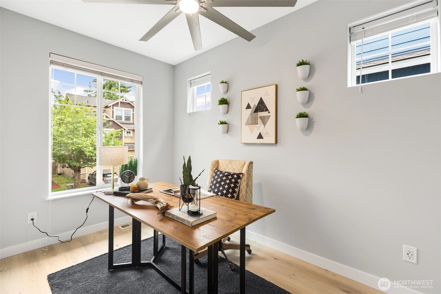 Fully updated and move-in ready, this 3-story detached home in coveted Wisteria Station features $100K+ in recent upgrades: new roof, new high-efficiency furnace, new A/C, new water heater, new low-maintenance backyard w/pavers, and new fence. Enjoy 9-ft ceilings, abundant natural light, and an open floor plan with multiple flex spaces. Chef’s kitchen includes a pantry, stainless appliances, and flows to two living rooms, a dining area, and a Cat-6 wired home office. Lower level with half bath is ideal for a guest suite, gym, playroom, or theater. Smart-home ready and part of a friendly community with a sport court-just $84/month HOA.Close to top-rated schools, parks, shopping, and commuter routes. Priced below market at $949K–a rare find.