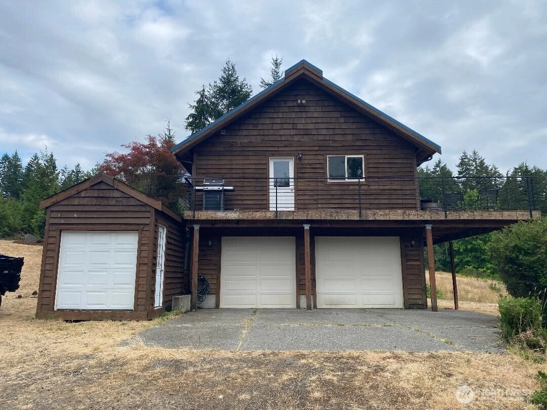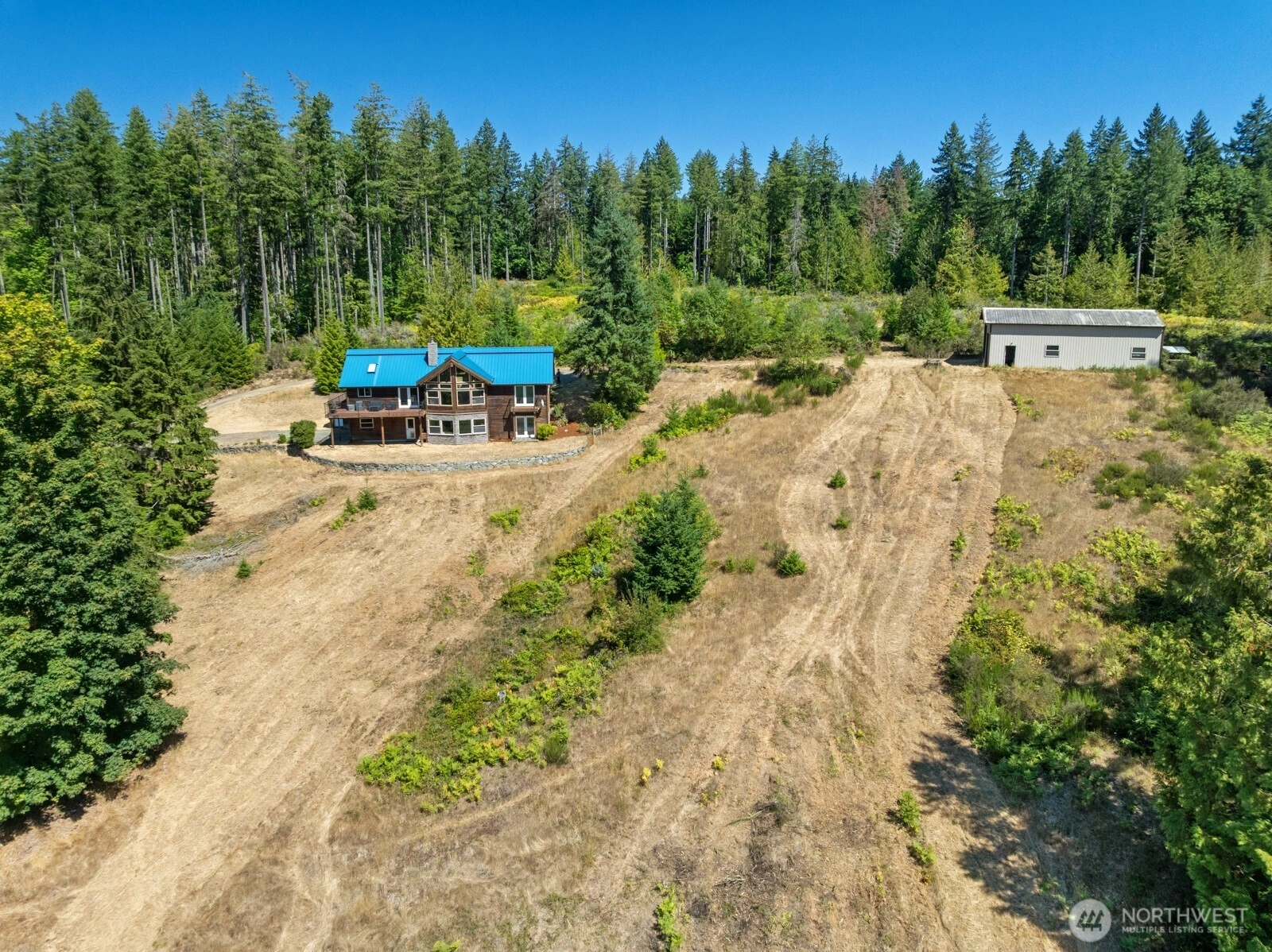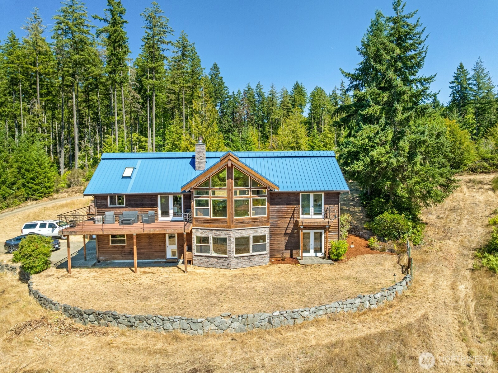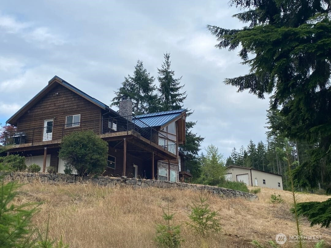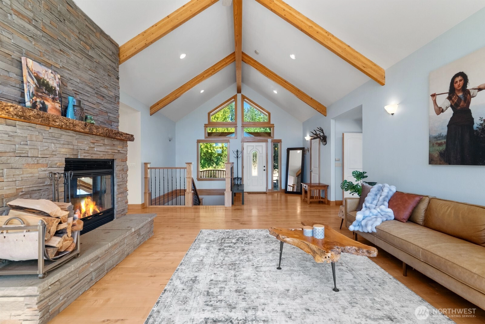 Serene privacy on 6.1 Acre property offering a harmonious blend of natural beauty and modern comfort. A gated entrance leads to a meandering drive through lush woods, unveiling a home perched on a hill with breathtaking open vistas. The property features two fenced pastures for livestock, 30x48 det garage for additional vehicle/equip storage w/ loft, and attached two-car garage. A 3 Bed 2.5 bath home boasts a gorgeous primary suite on the main level, expansive decks for outdoor enjoyment, and stunning Maple floors paired with granite finishes. Amazing kitchen with beautiful upgraded cabinets. The exterior siding, was harvested from the property. Cathedral like laminated beam ceilings and large windows flood the spacepastoral views. with