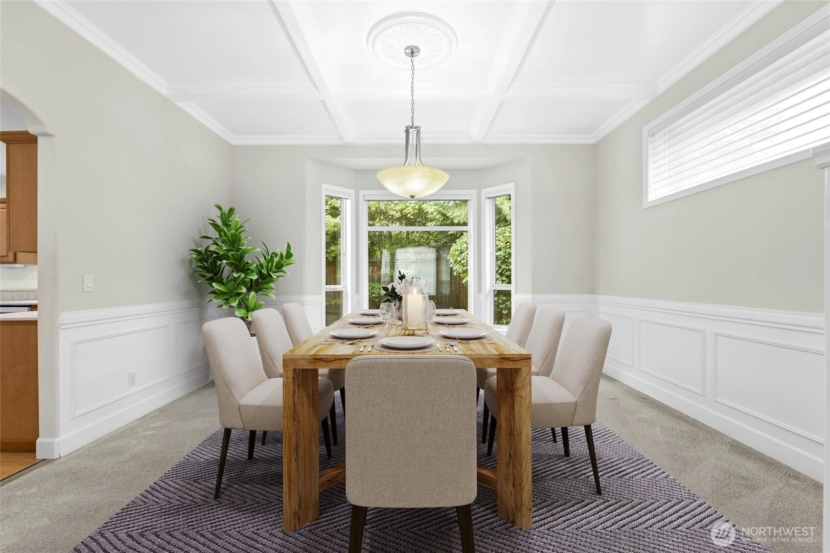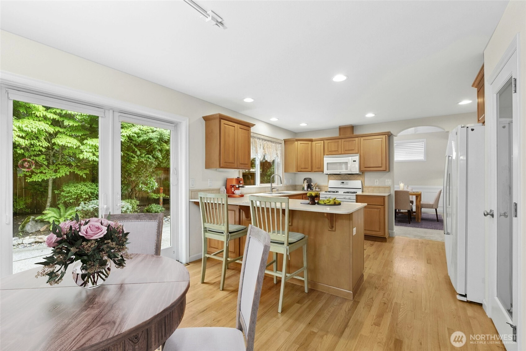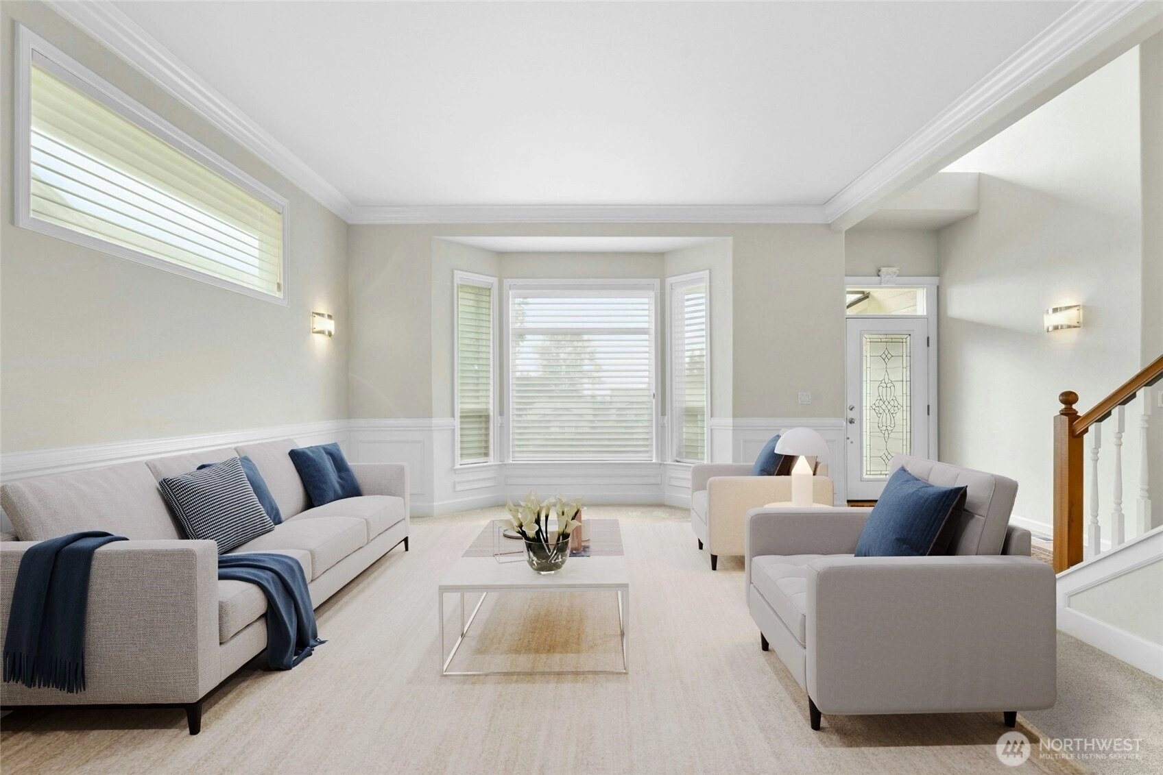 Stunning one-owner home blends quality craftsmanship & comfort, surrounded by professional landscaping. Designed w/ both formal & casual living, it features high ceilings, white millwork, hardwood floors, & wood-wrapped windows. Spacious dining room offers the elegance of lighted built-ins, wainscotting & box beam ceiling. You'll find plenty of space in the Kitchen which features quartz counters, gas cooktop and breakfast bar which open to the family room. Primary suite w/ mountain & water view w/jetted tub. Gorgeous backyard oasis with patio plumbed for hot tub. Includes 2023 A/C, 2019 roof, 2020 furnace, recirculating hot water, sprinkler system and 3-car garage, landscape lighting. Easy access to I-5, Hwy 9, Paine Field, trails, & shops.