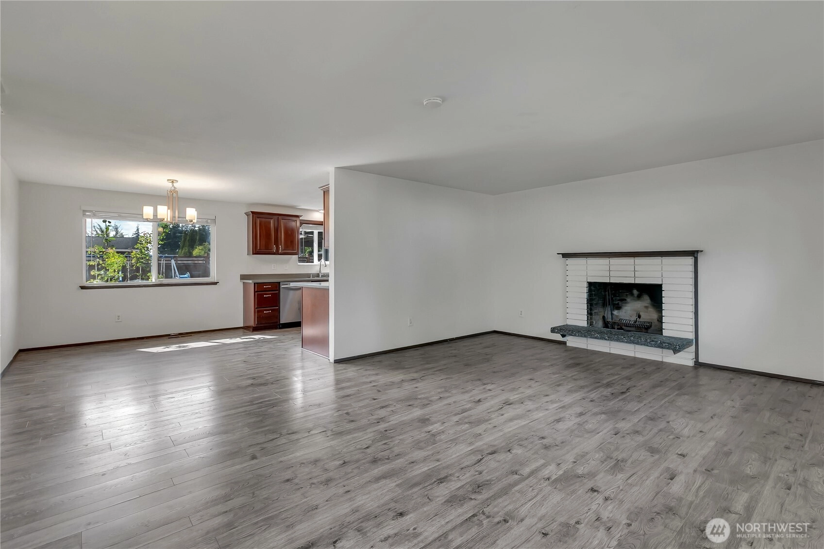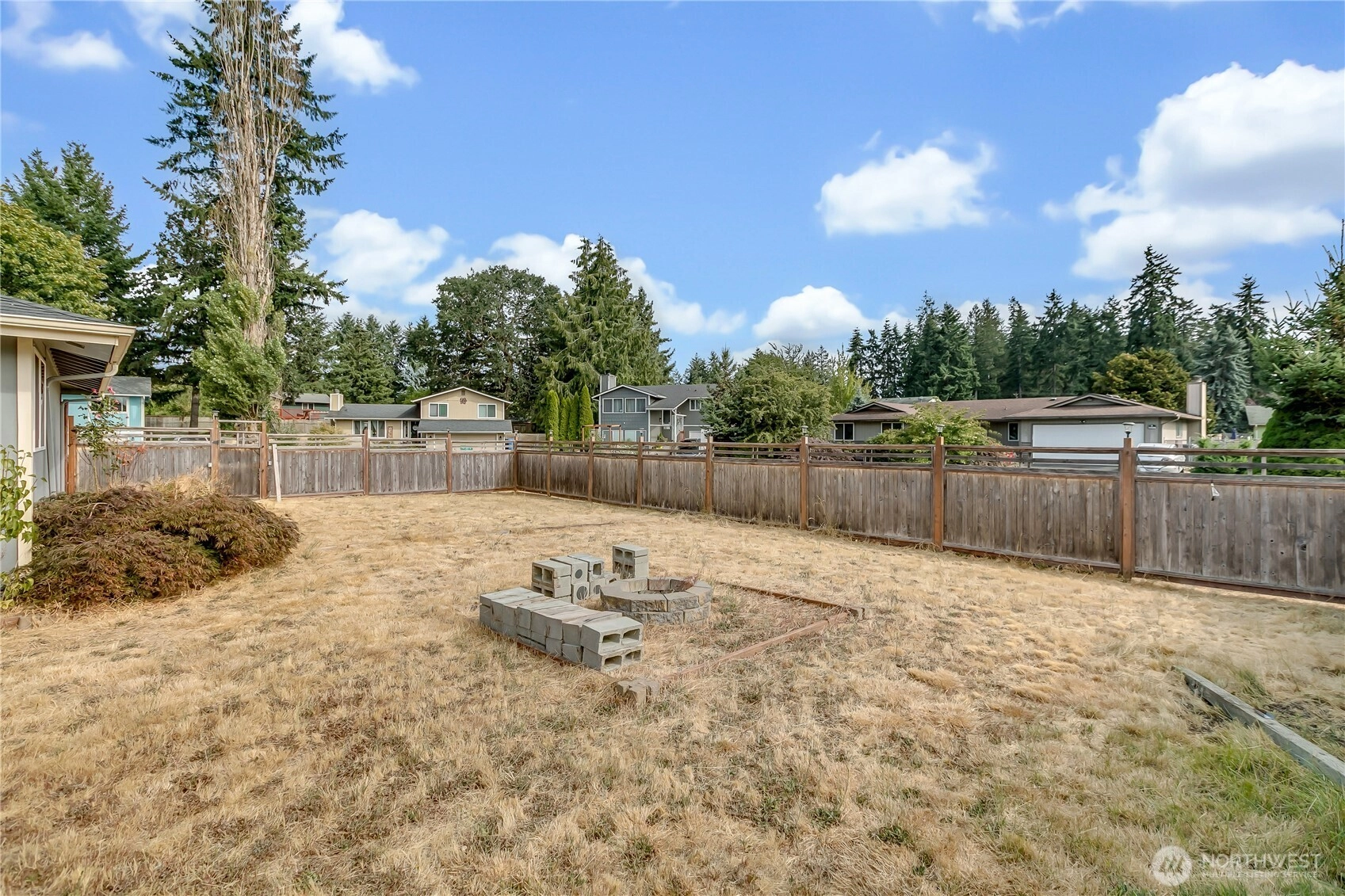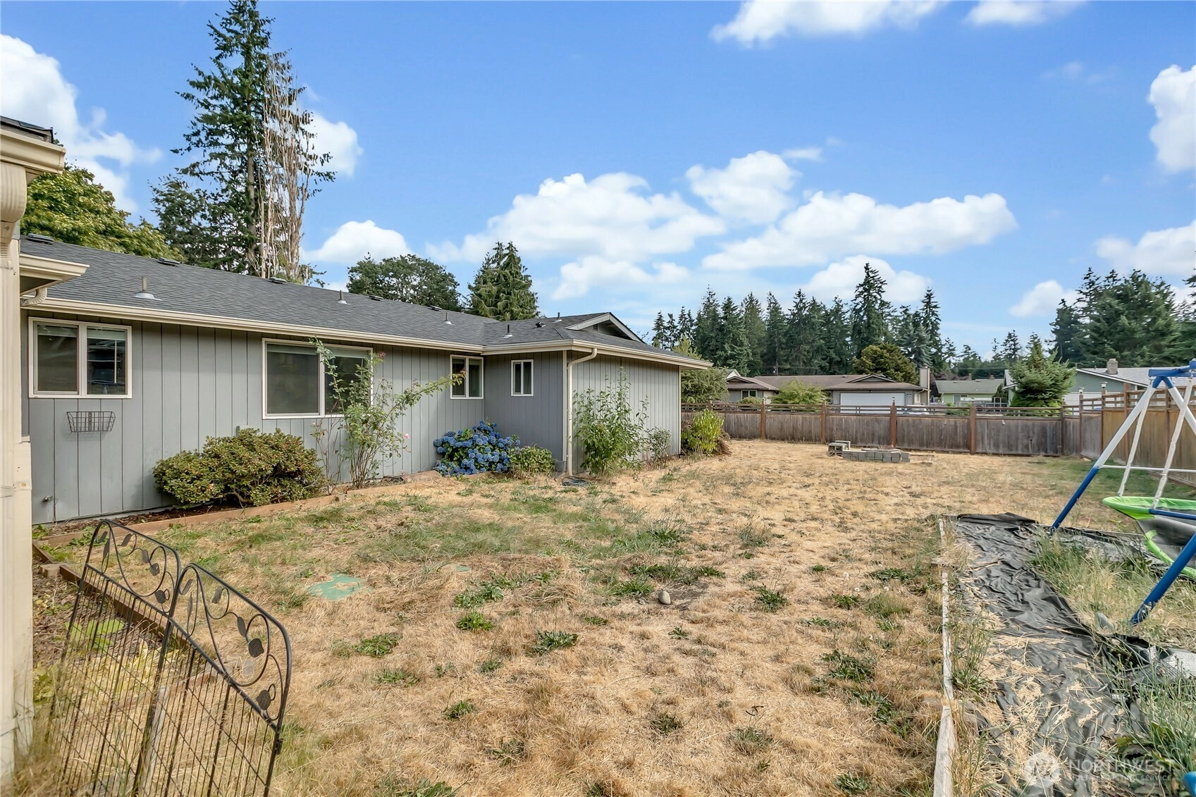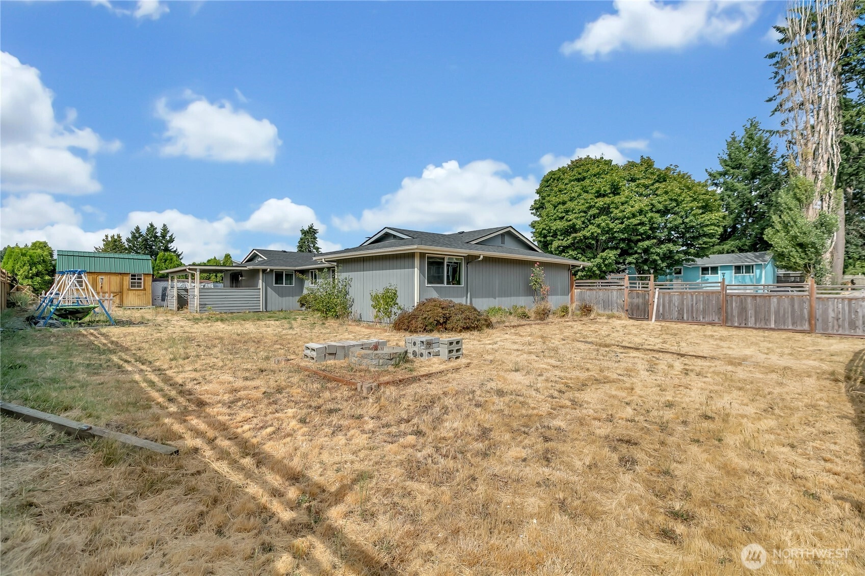 Well-Maintained rambler on a large corner lot! Located on a spacious .24-acre corner lot, this well-cared-for rambler offers a comfortable layout with great natural light and laminate flooring throughout much of the home. The main living room features a cozy fireplace and big windows, while a separate, generously sized rec room provides extra space for gathering, relaxing, or entertaining. The kitchen includes quartz countertops and warm cabinetry, and the three bedrooms include a primary with its own bath. Outside, enjoy the fully enclosed covered patio and a large yard with space for gardening or play. Space for RV parking. Conveniently located near JBLM, golf, shopping. Move-in ready, don't miss out on this fantastic home!
