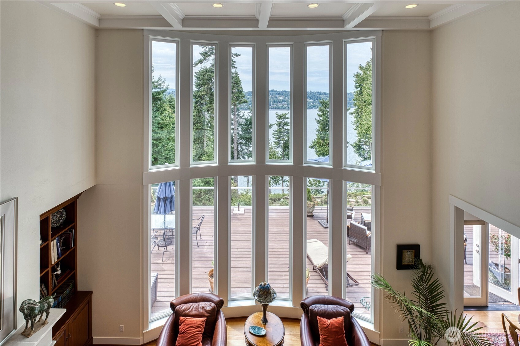 Stunning luxury home with majestic views of Port Ludlow Bay! Thoughtfully limbed cedar and maple trees reveal sweeping vistas from this serene medium-bank waterfront setting. The spacious primary suite on the main floor offers direct access to a private jacuzzi—perfect for soaking in the views. Designed for comfort and elegance, the home features an open layout and refined coastal finishes. An unfinished basement with garage door access offers versatile space for a workshop, a small boat, or an extra vehicle. Gated entries to both Tala Point Estates and the property, plus a grand tree-lined driveway, complete this exceptional retreat. Freshly added driveway rock surrounded my meticulously designed landscape throughout the property.