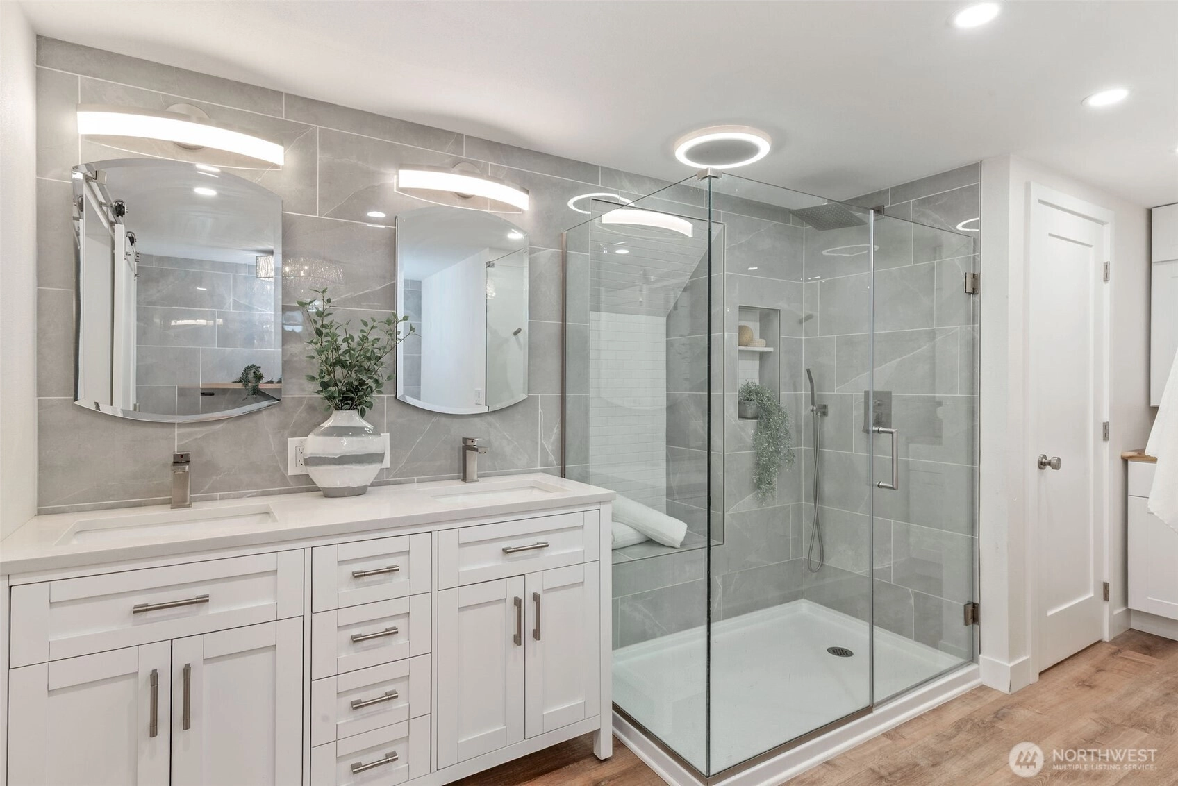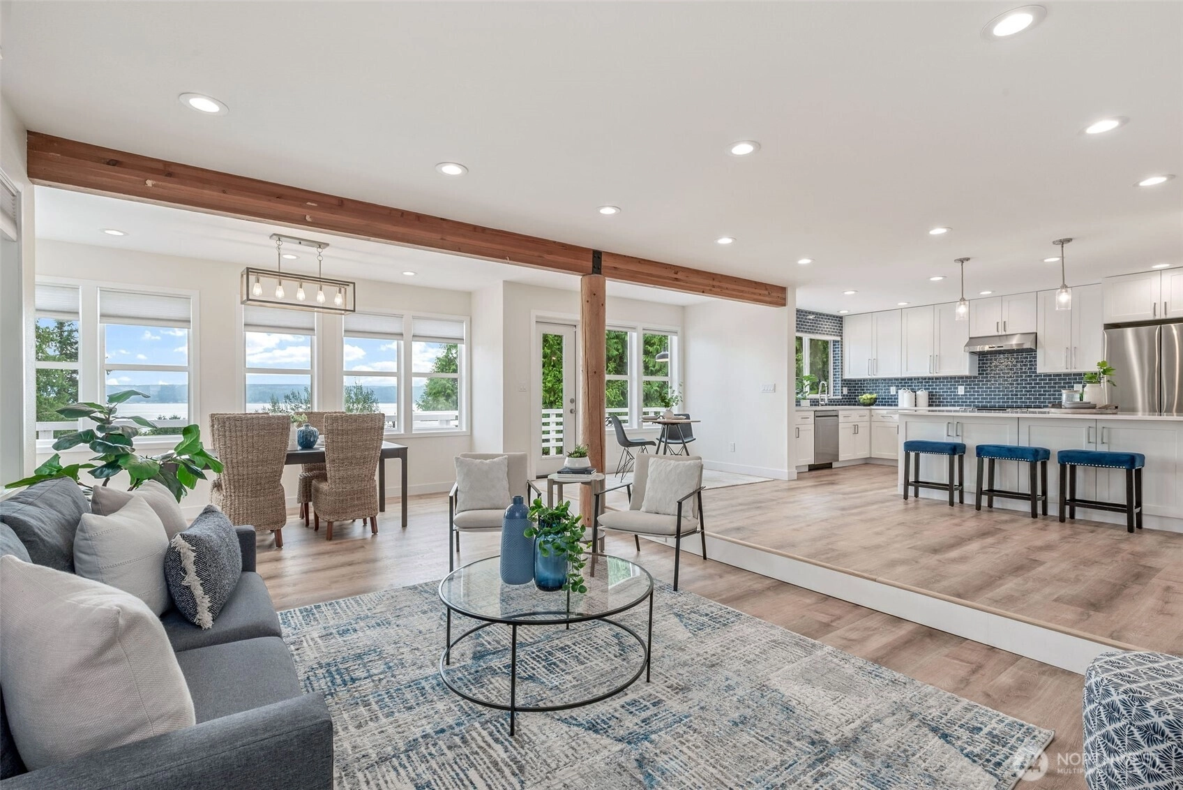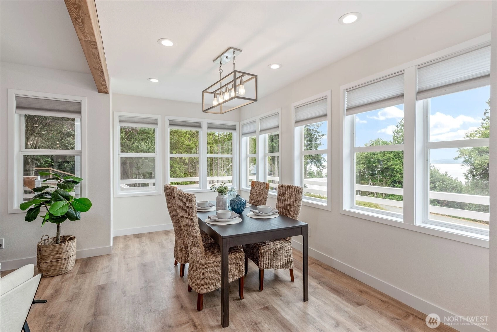 Stunning views of the Cascades and Hood Canal from nearly every room makes this property easy to love. This tastefully updated and thoughtfully designed home has an open concept main floor, with spacious great room, elegant kitchen, dining space and deck access. Ample guest accommodations throughout and lower level offering full bath, office, rec room/shop. The upstairs primary bedroom is a private oasis with deck, custom walk-through closet, spa like bath and a view that you'll be happy to get lost in. The backyard is fully fenced and features patio, room for gardens, slab bar and swim spa. Private beach access and close proximity to Hood Canal bridge make this property a jewel of South Point.