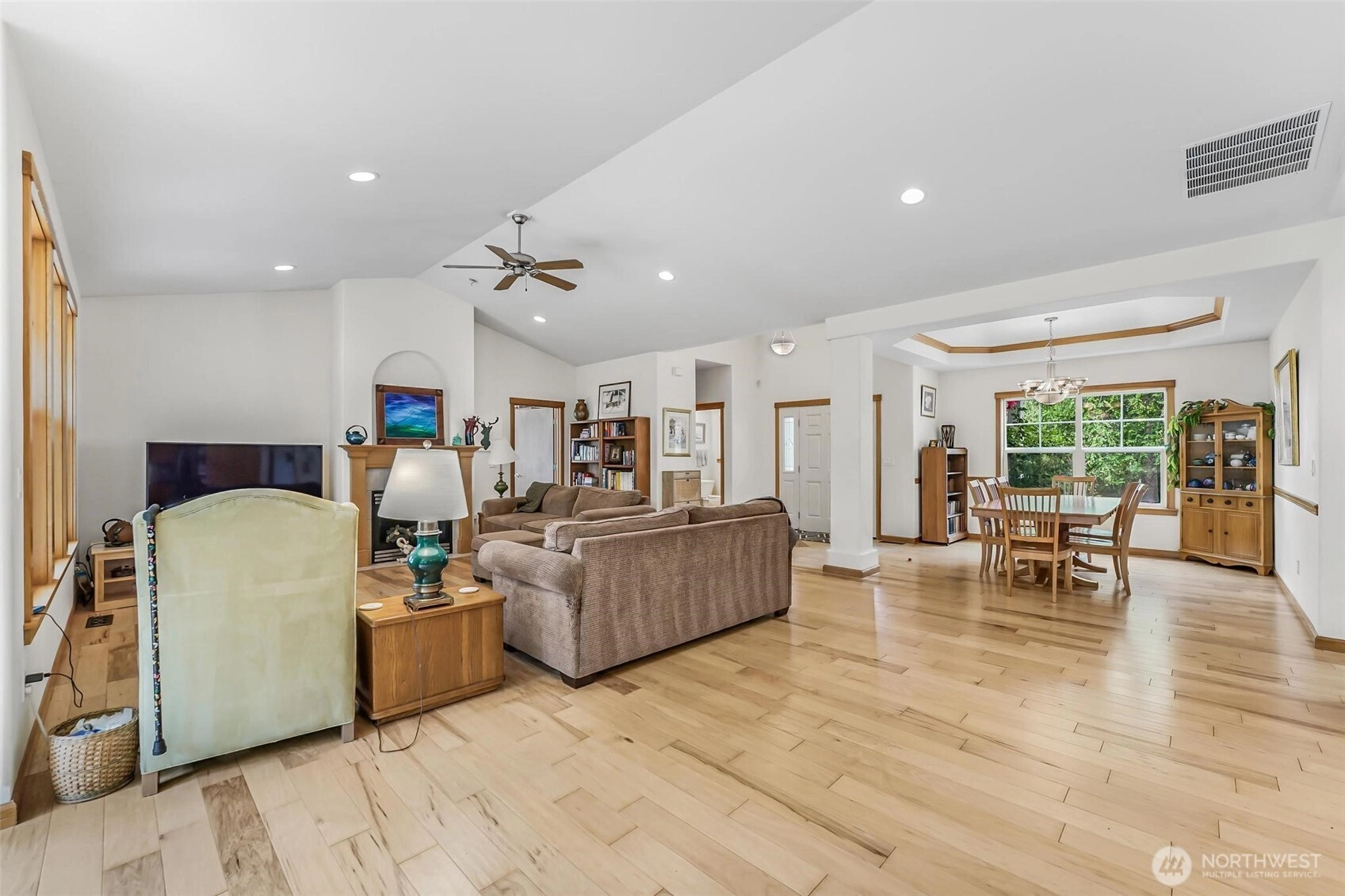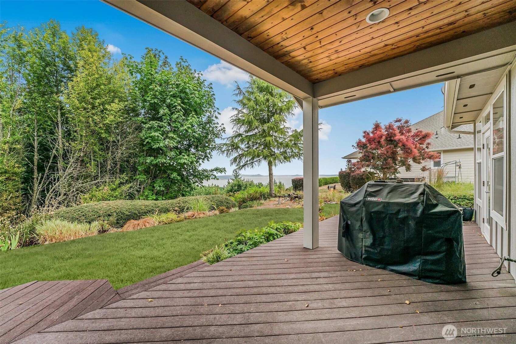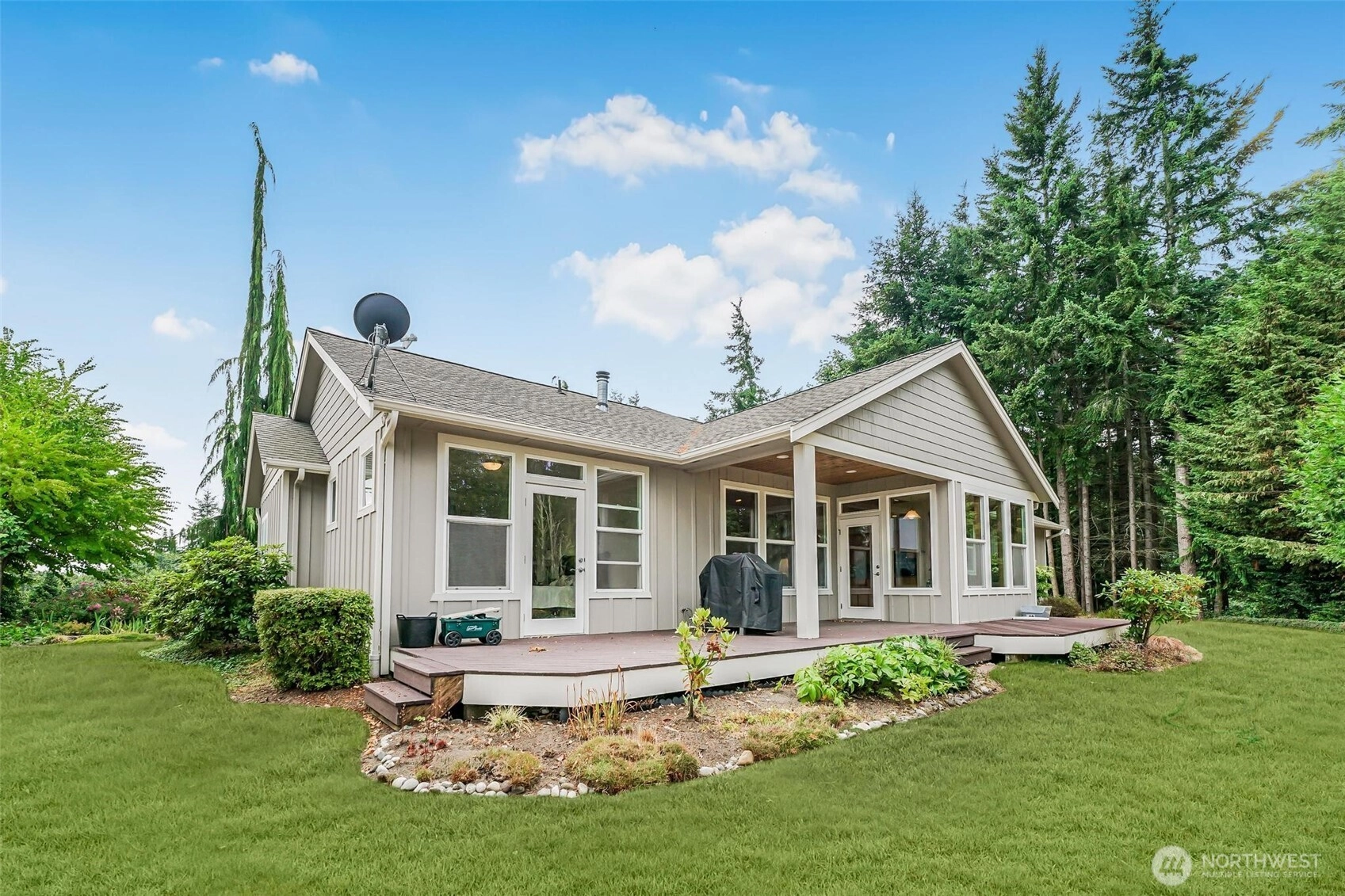 Perched on Camano Island, this single-level 3-bedroom, 2.5-bath gem offers breathtaking Skagit Bay views. Natural light floods the open living area, seamlessly connecting to a spacious kitchen ideal for casual gatherings or grand entertaining. Retreat to the primary suite, a private oasis with en-suite bath. Recent upgrades include fresh paint and a new water heater—just move in. Step onto the covered back deck to savor morning coffee or unwind in afternoon shade amidst lush, manicured landscaping. A high-ceilinged 3-car garage provides ample storage and hobby space. Experience peaceful island living with easy access to beaches, parks, and ferry connections. Close to dining, shopping, and schools. Your Camano Island refuge awaits!