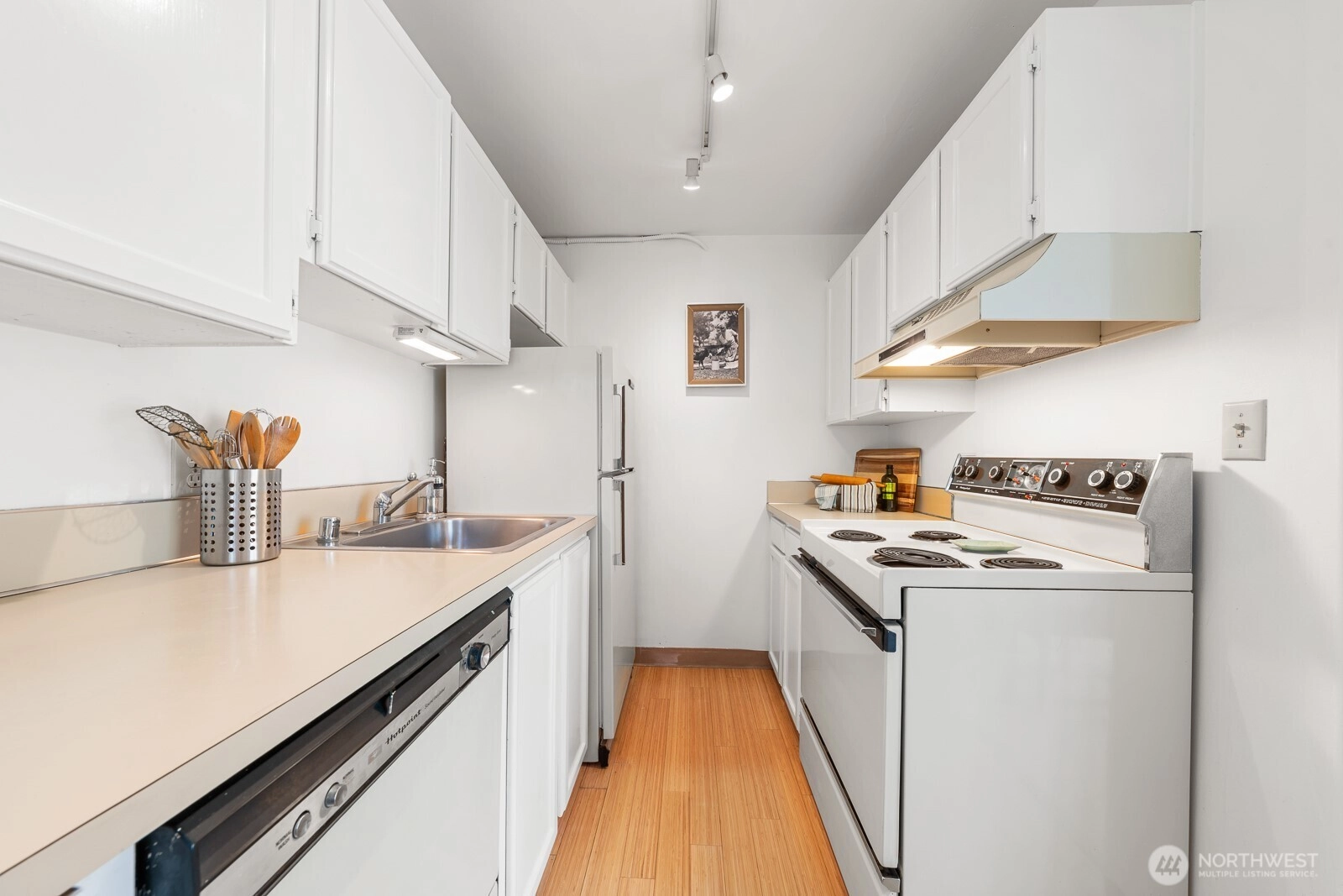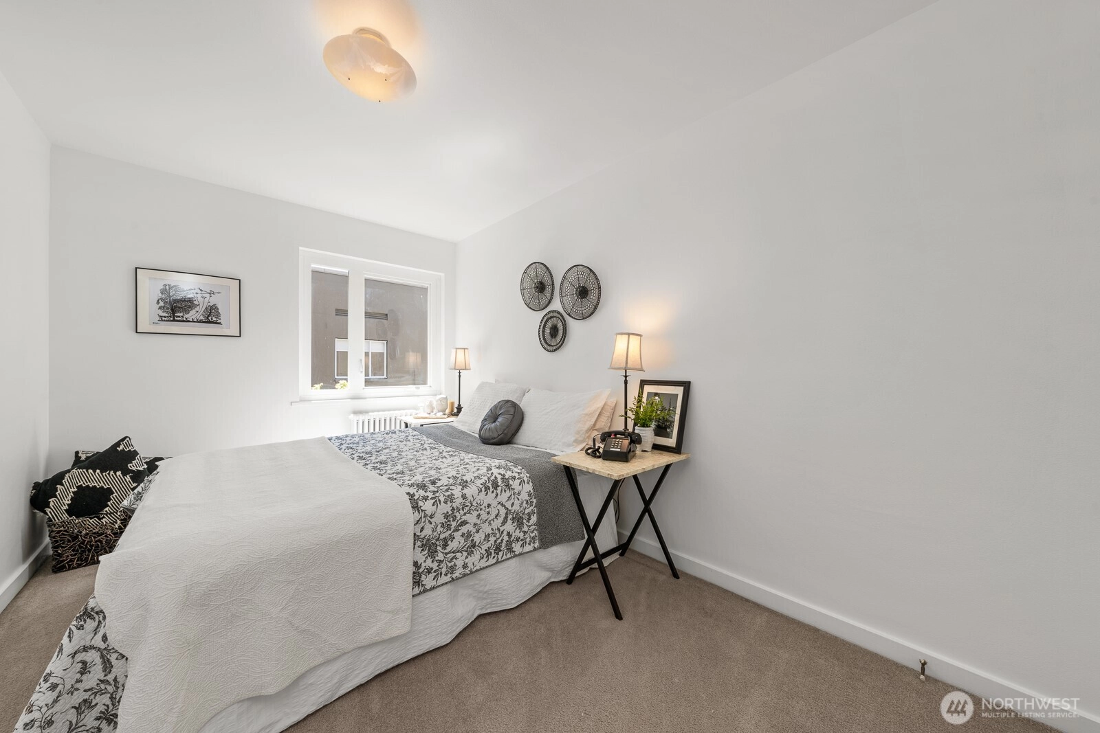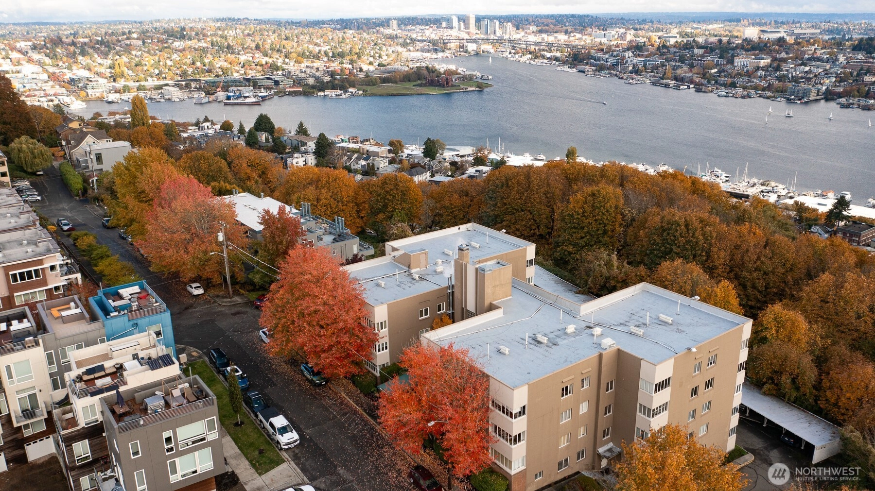 Improved price and terms from motivated Seller. Owner will buy down 25K to a lower interest rate. Spacious 2 bedroom top-floor unit for price of 1 bedroom! New elevator in a gem of a mid-century building. Enjoy this peaceful retreat with bright, natural light from its treetop perch. Access wooded trails, tend the P-patch at Trolley Hill Park, or stroll to Westlake & Lake Union over the pedestrian bridge. Freshly painted, with newer windows, this home awaits your vision. Easy starter project in an unbeatable location-live here while you build equity. Uncover the original hardwood floors beneath existing carpet. Busable, walkable, bikeable. 5 minutes to Queen Anne's main street, with NO rental cap. Most utilities are covered in HOA dues.