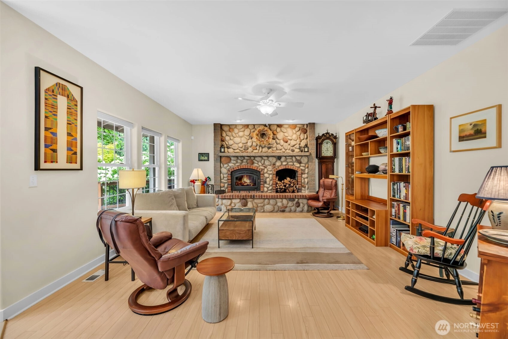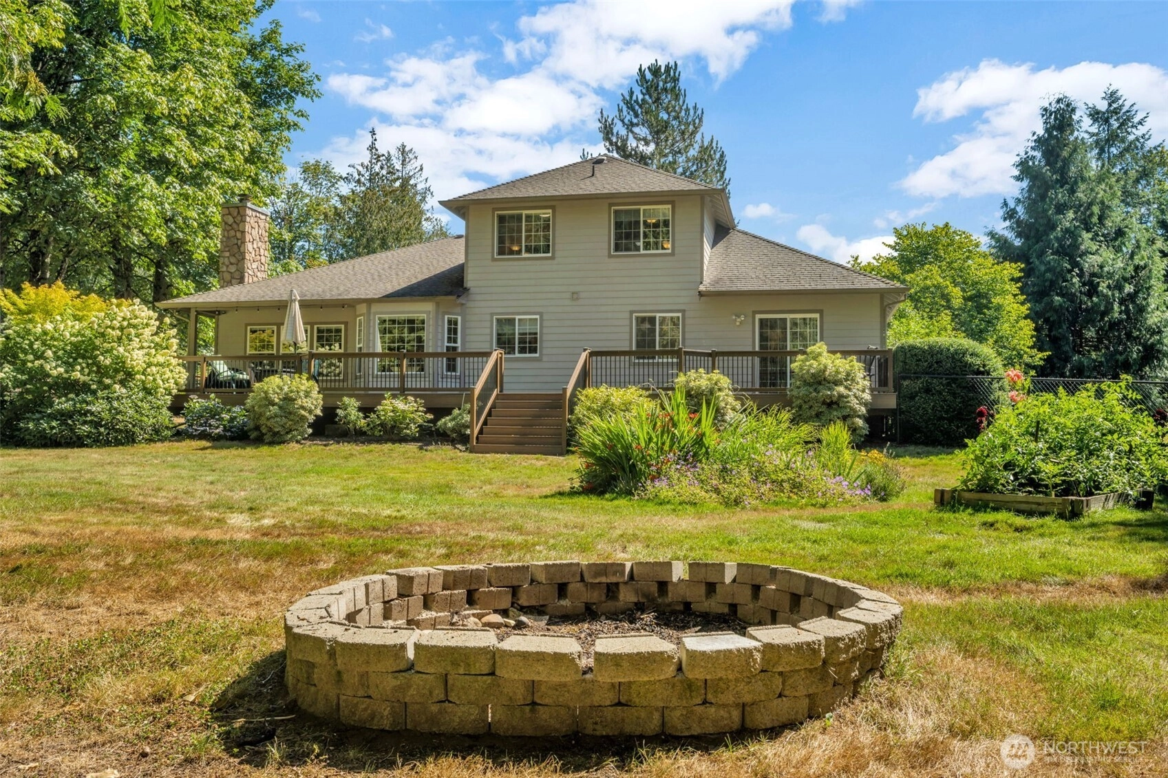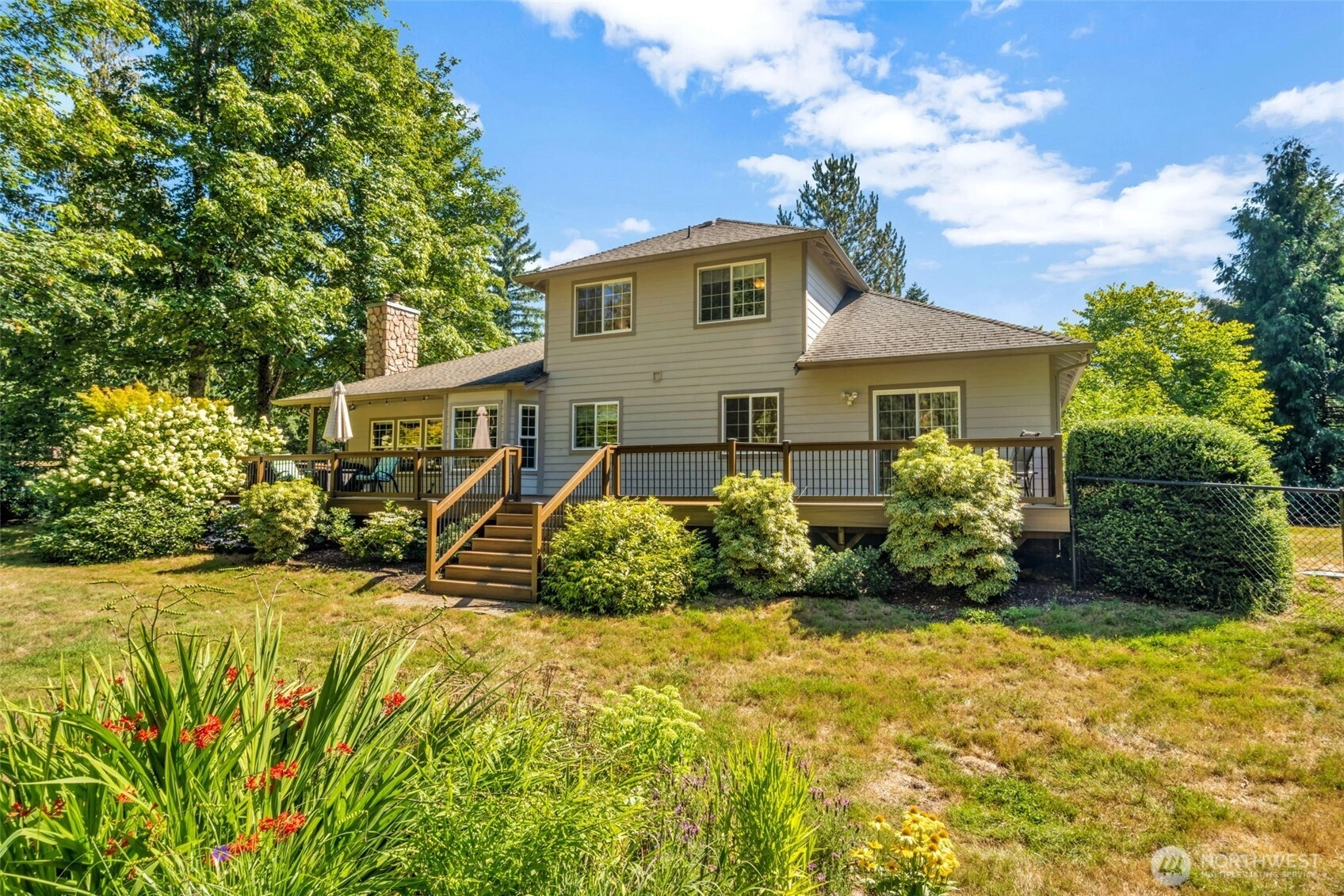 Stunning custom home on a quiet private road, set on over an acre! This 4 bed, 2.5 bath home with office and den offers 2,450 sq ft of well designed living space. The chef’s kitchen opens to a spacious living room with a river rock fireplace and abundant natural light. Main floor primary suite features a walk in closet, 5 piece bath, and deck access, perfect for morning coffee. Upstairs you'll find 3 additional bedrooms (1 non-conforming) and a full bath. Enjoy the expansive deck and fenced backyard, ideal for entertaining, gardening, or pets. A/C, generator, 3 car garage, RV/boat parking, and easy access to Hwy 18! Close to everything but feels miles away.