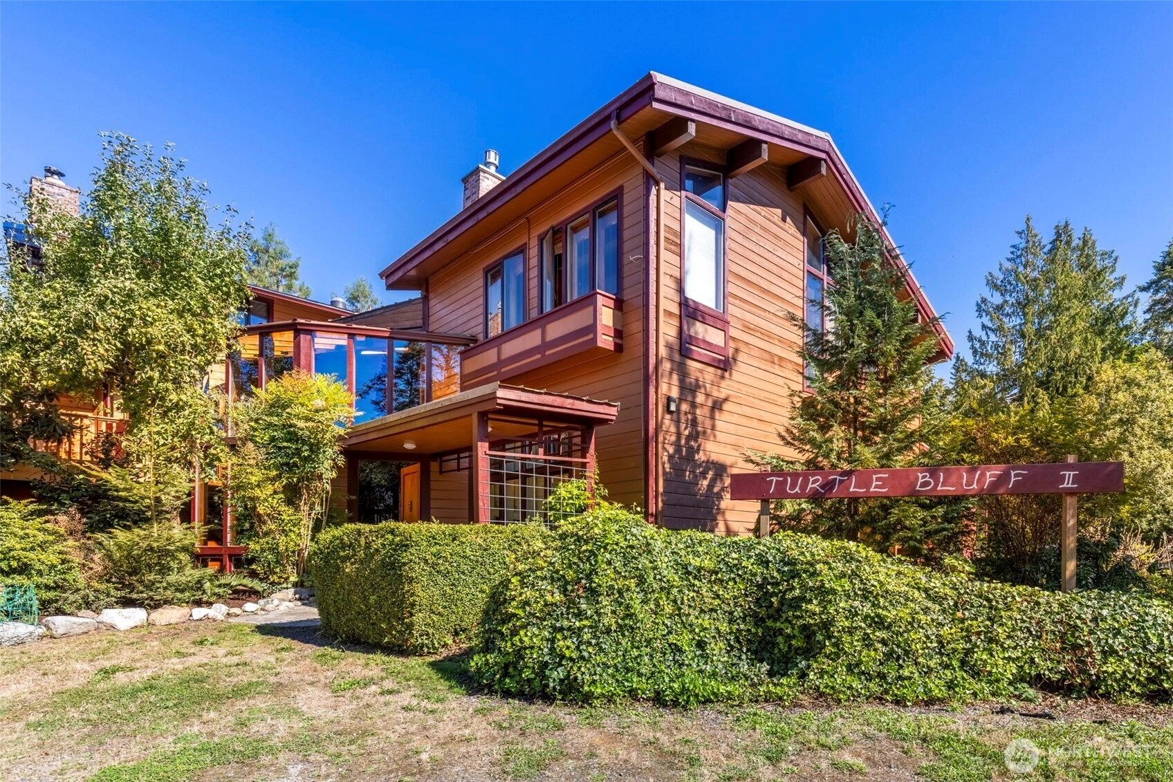 A breathtaking Island Waterfront Retreat awaits you at Turtle Bluff II on stunning Marrowstone Island: 10+ acres, +/- 660 ft of waterfront, and a wonderfully imaginative home. The perfect setting for a generational estate with garden spaces, wooded groves, outdoor entertaining spaces and a home that memorably greets guests with a soaring entry Atrium complete with tree and Koi pond. New metal roof, new exterior paint. Explore the multiple levels, enjoy the varied western views of Puget Sound and the Olympics, and relax on the expansive deck while surveying your gardens. Add a Waterfront view trail, spacious Greenhouse, RV parking, BBQ party area, and much more. Income potential abounds with private bedrooms for short or long term rentals.