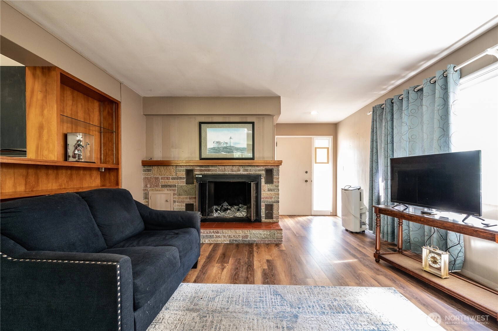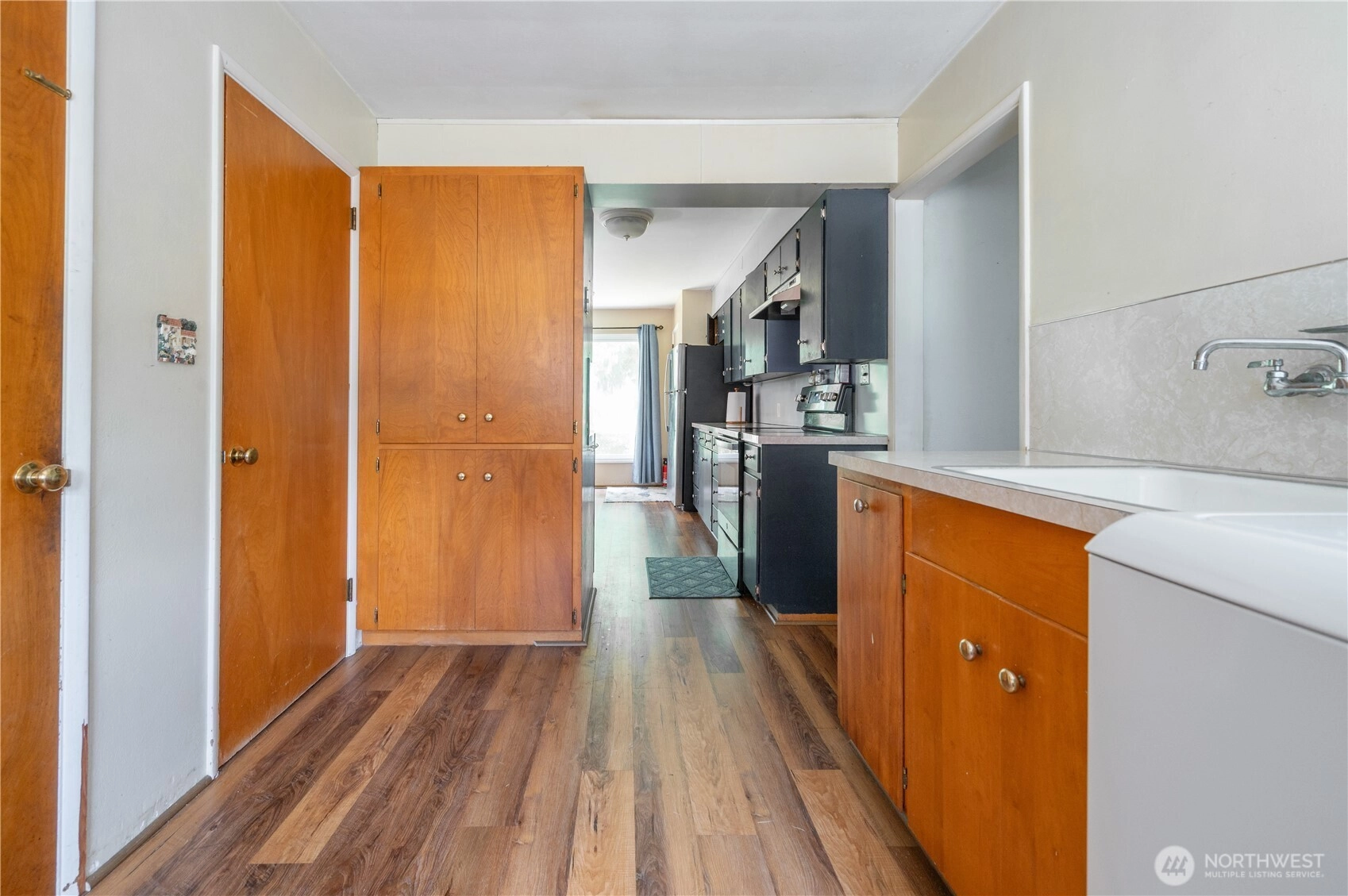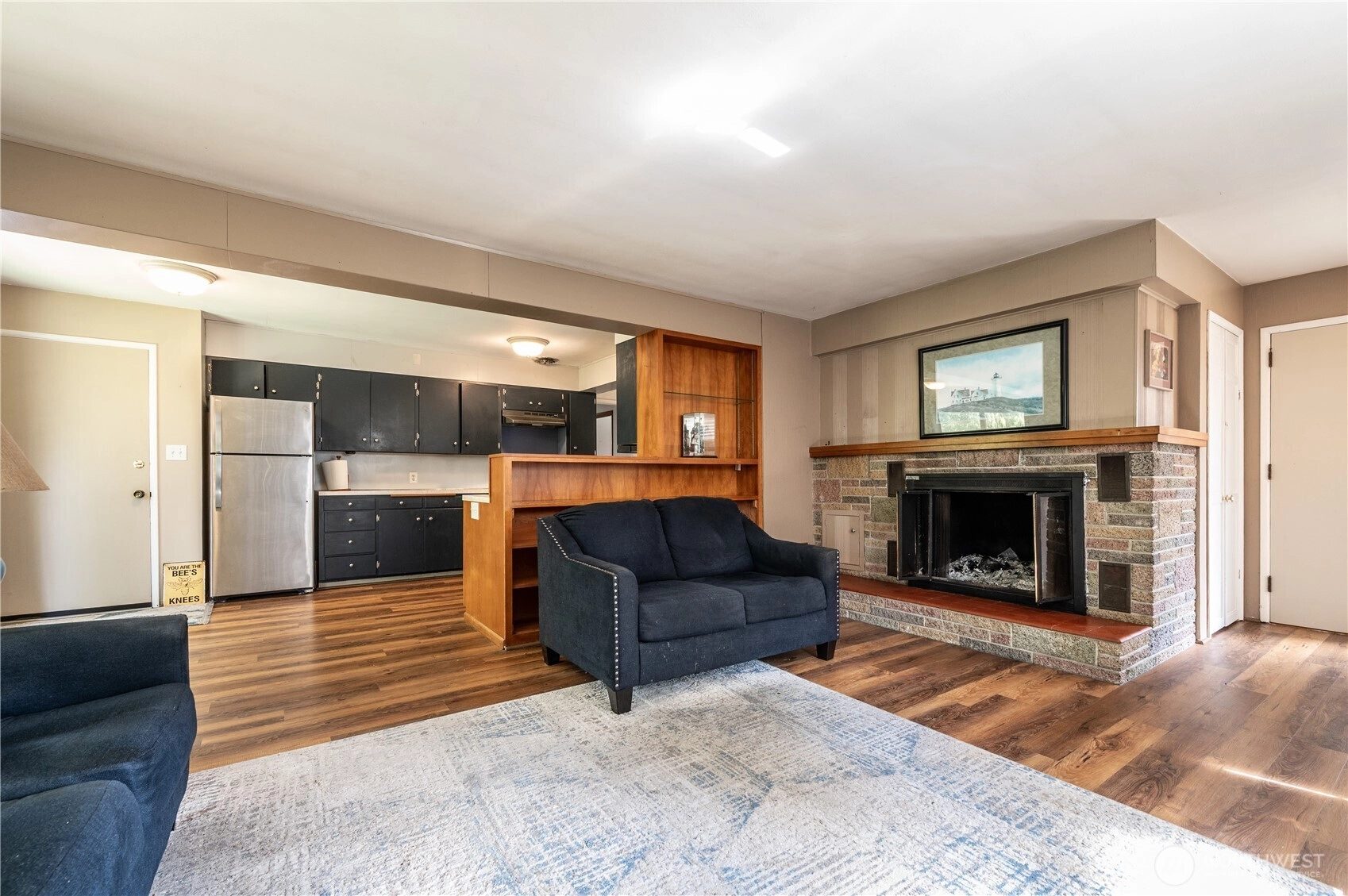 On nearly 3/4 acre in Central Park, this 3-bed, 1-bth home pairs mid-century character with thoughtful updates and is just a short walk to the grade school. The living room features a wood-burning fireplace, beautiful built-ins, while the kitchen stands out with navy cabinetry, stainless steel appliances. A separate large laundry space is located just off the kitchen with sink and cabinetry. The main level also includes the 3 comfortable bedrooms & full bath w/ double sinks. Downstairs has a one-car garage & unfinished space ideal for hobbies, storage, & workshop. Outdoors, a large deck looks out over a babbling creek and a wooded backdrop, with RV parking in the upper yard. The furnace was rebuilt in February 2025.