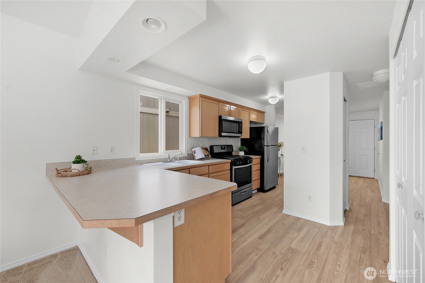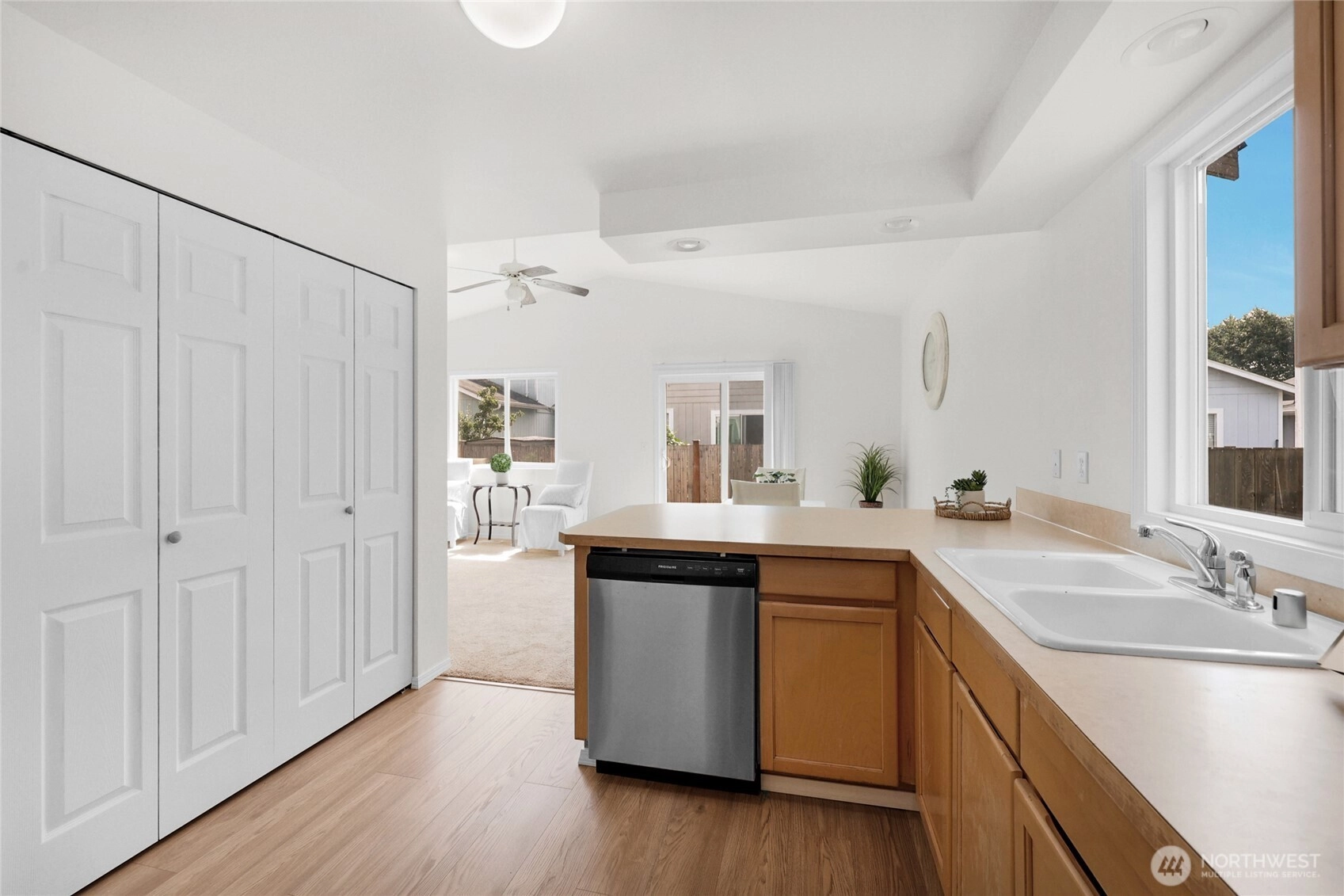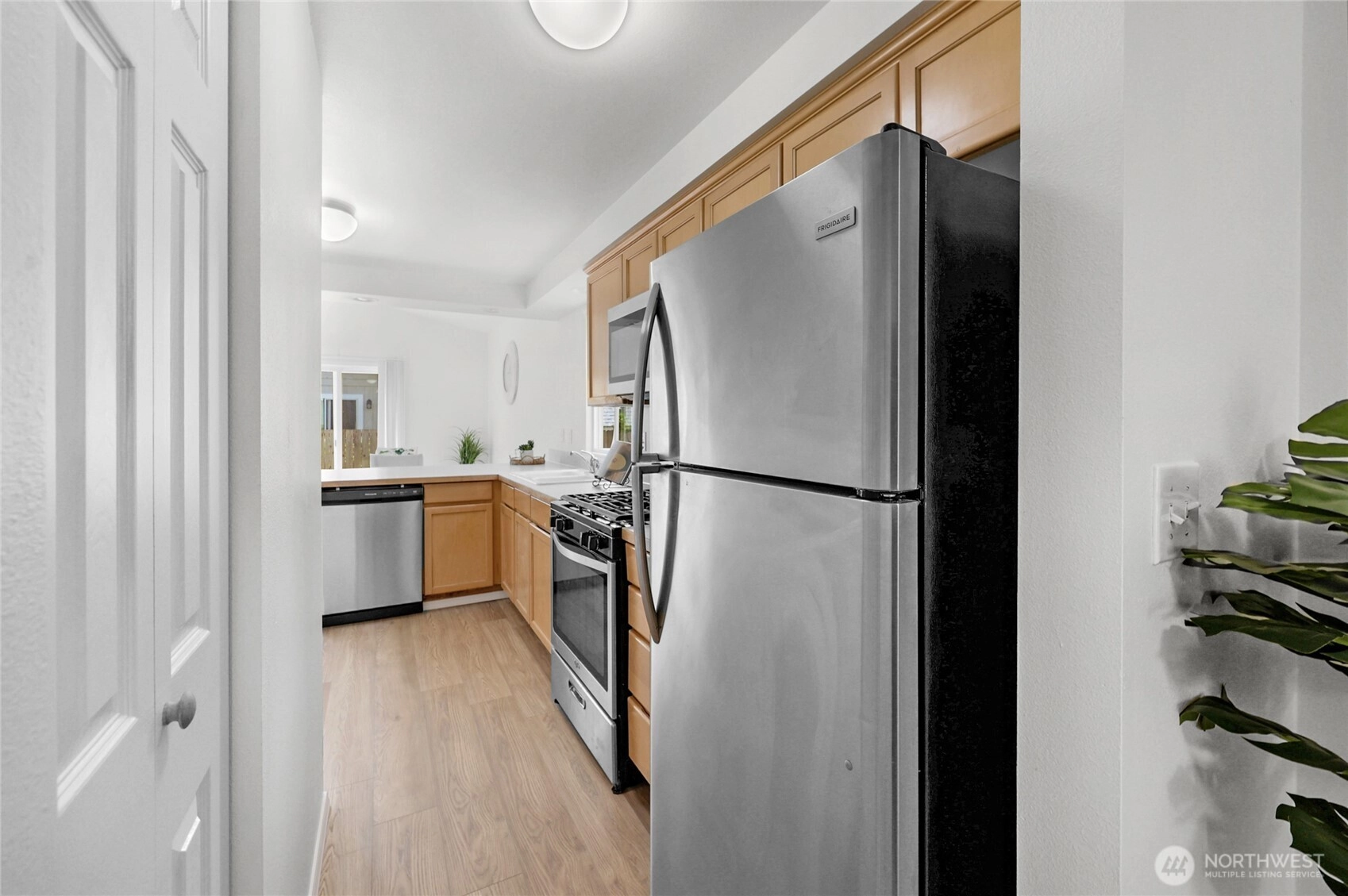 Remodeled 2 story detached home in the desirable Berry Farm community. Rich new engineered hardwood flooring. New plush wall to wall carpeting. New interior paint and moldings. You will love the perfectly positioned kitchen with new stainless steel dishwasher. Open concept vaulted ceiling living room with upper fan. Bright open floor plan with abundant windows. Fenced backyard area and patio for summer barbecues. Primary bedroom suite with attached bath. The Berry Farm is a tremendous neighborhood that offers a grand sized park with a playground and athletic court. Excellent location near I-5 commuter access, Costco, Amazon building, outlet stores and so much more.