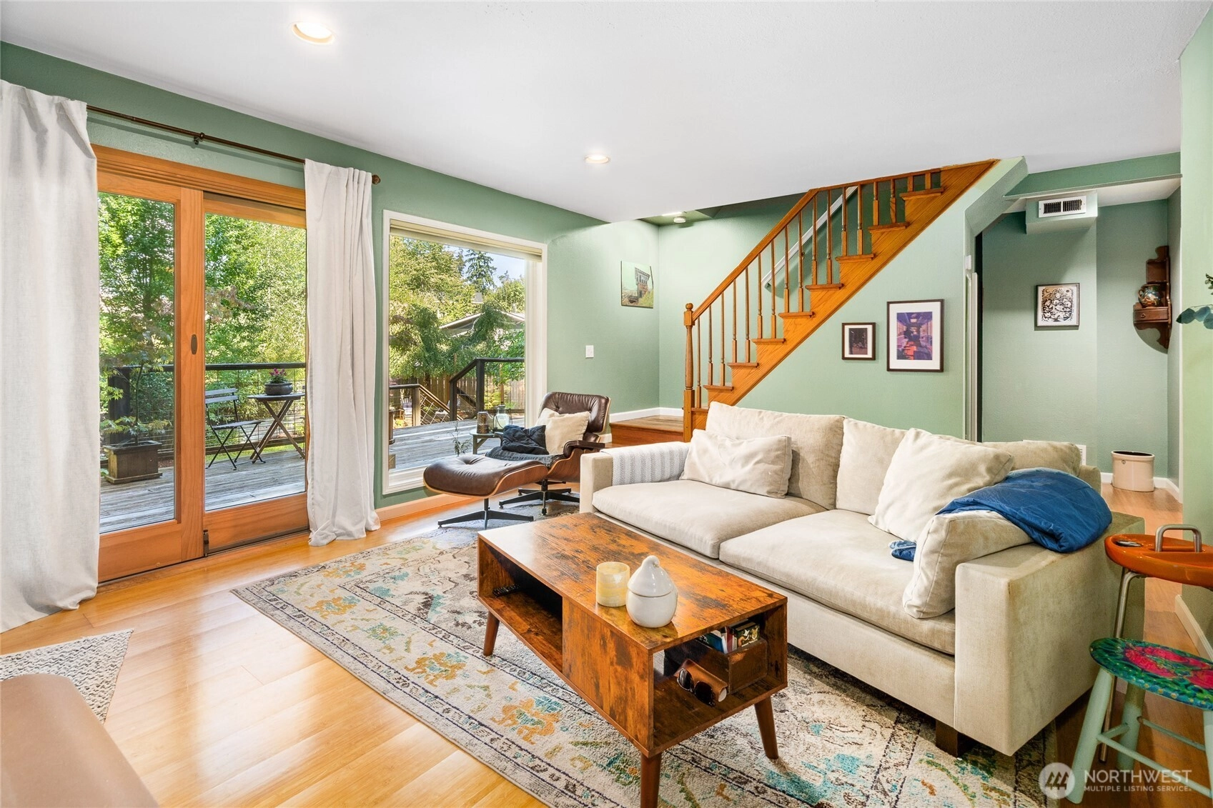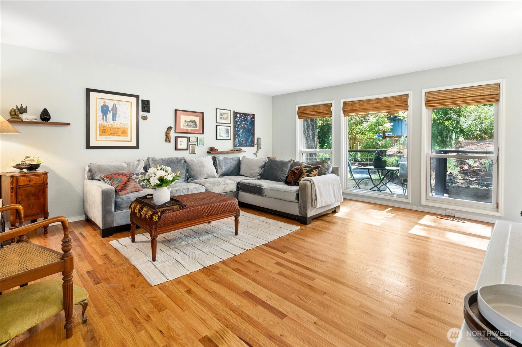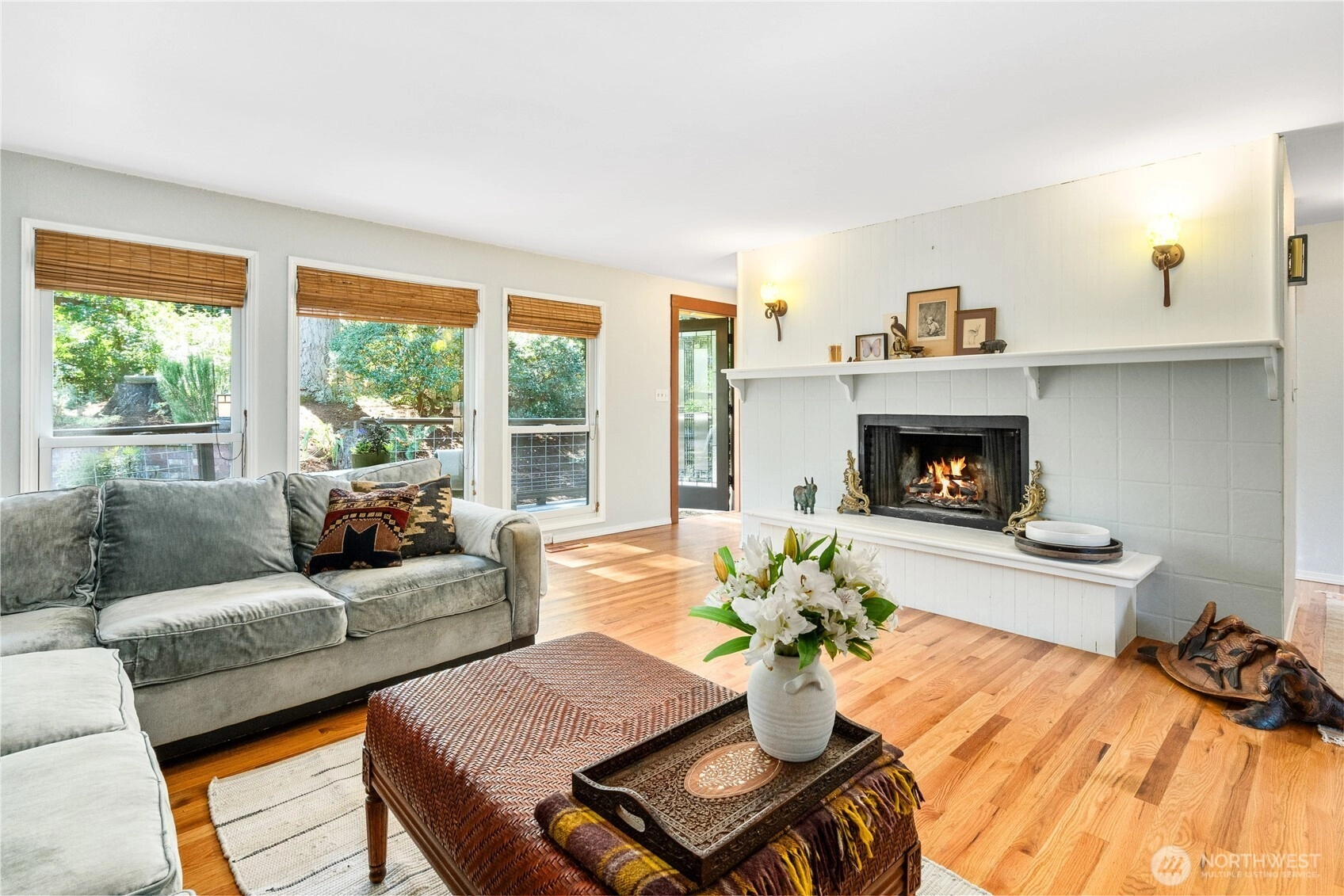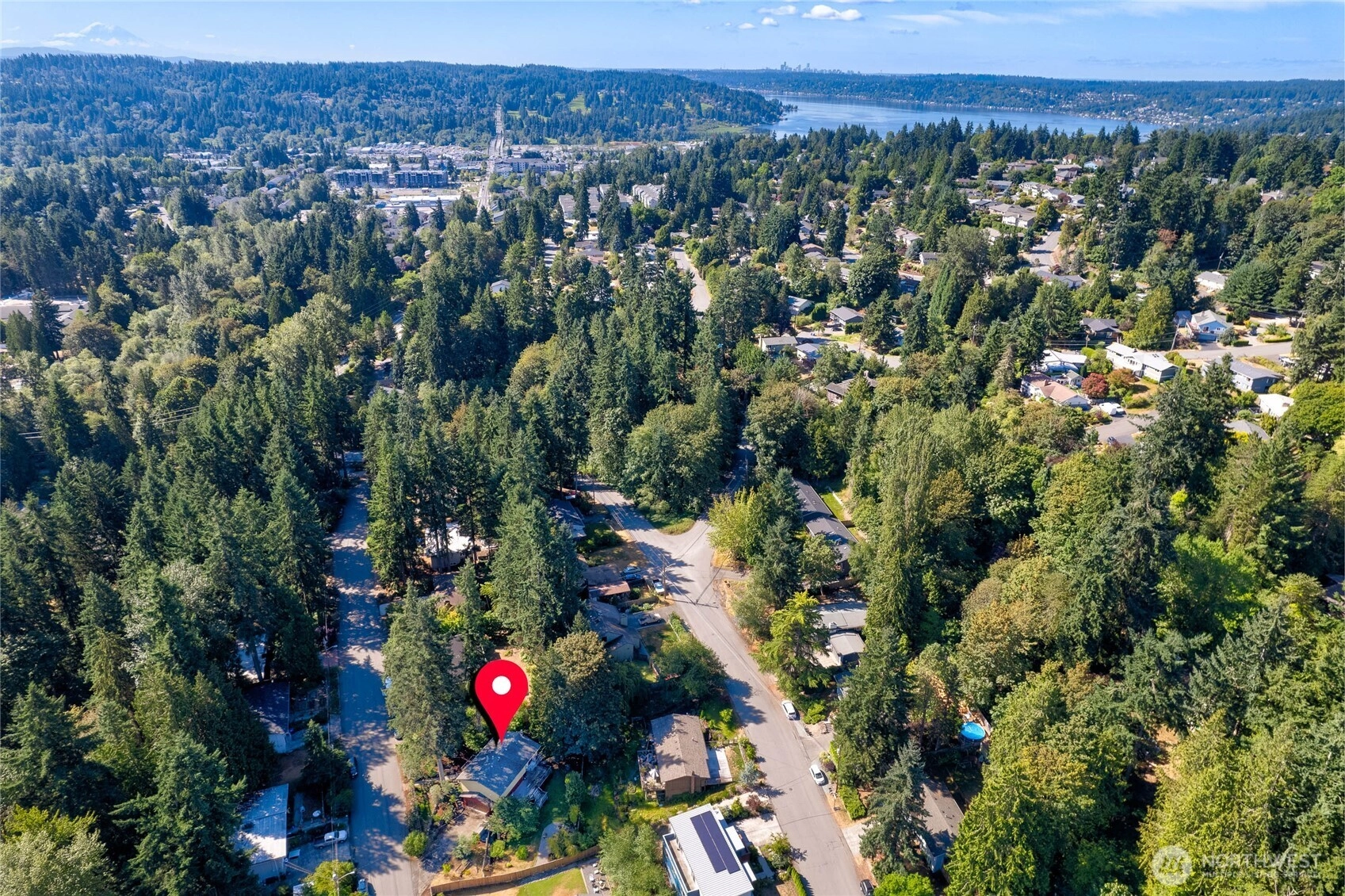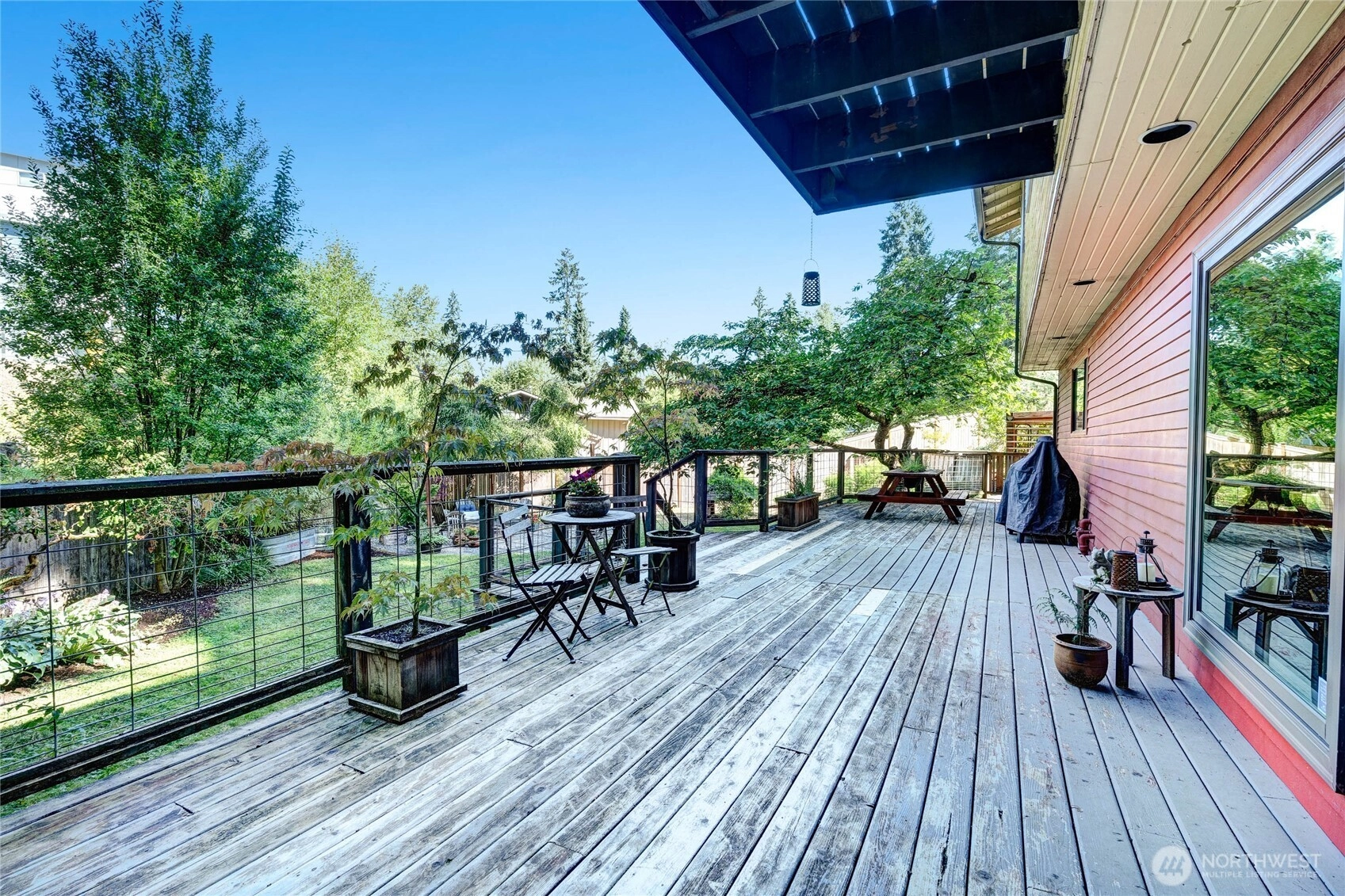 From the moment you open the gate and walk towards your front deck entry, you'll appreciate how special this beautiful home on a large and gorgeous lot is. The main floor features a spacious living room with a cozy fireplace, an updated kitchen with stainless steel appliances, a master suite with its own private balcony and two more bedrooms. Downstairs, a huge family room with a wood stove and a flexible fourth bedroom, hobby room, or home office offers flexible options. An easy 15 minute walk to revitalized downtown Kenmore- breweries, restaurants, and cafes! The fully fenced yard with a firepit is perfect for outdoor entertaining. Fantastic Northshore School District - welcome home!