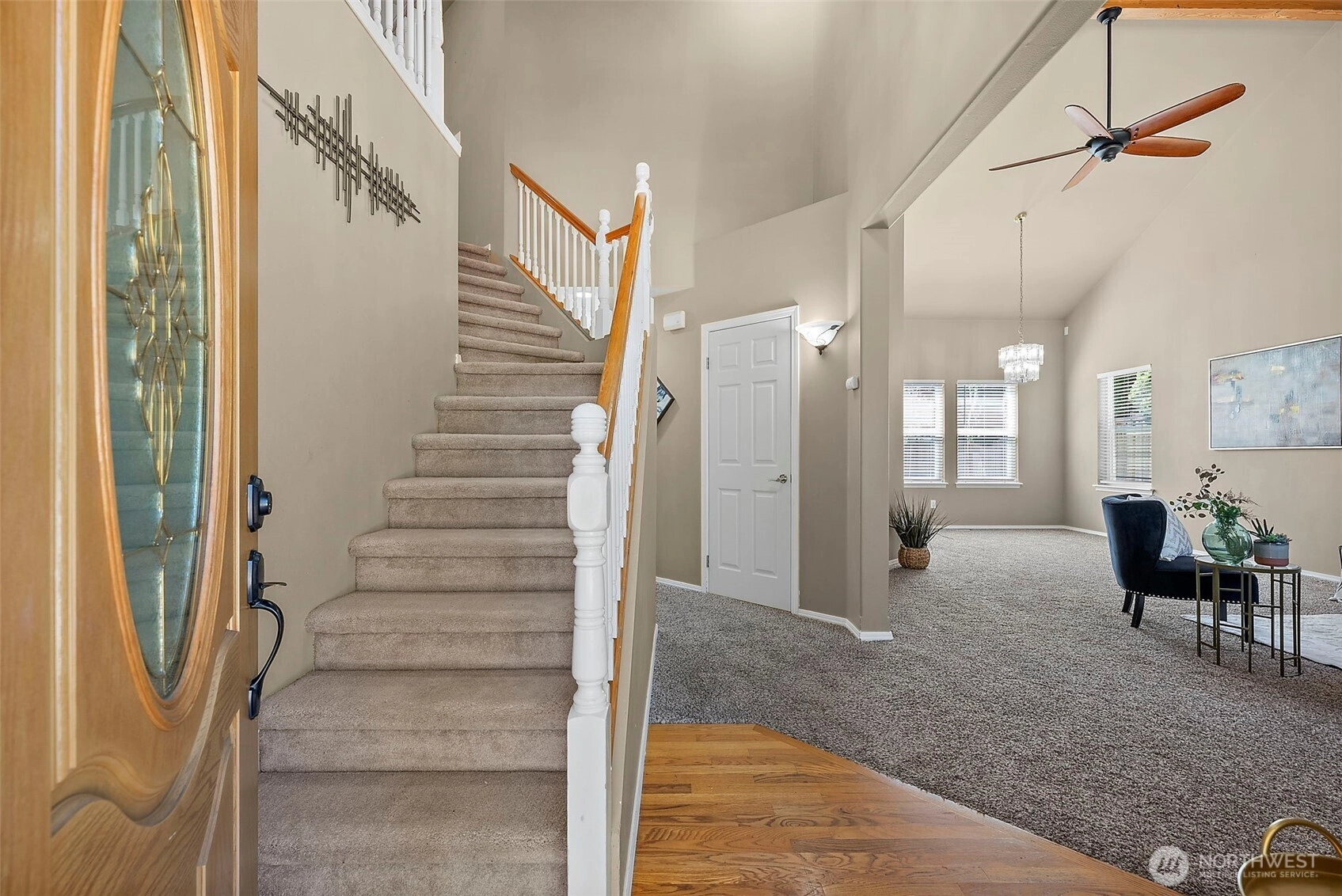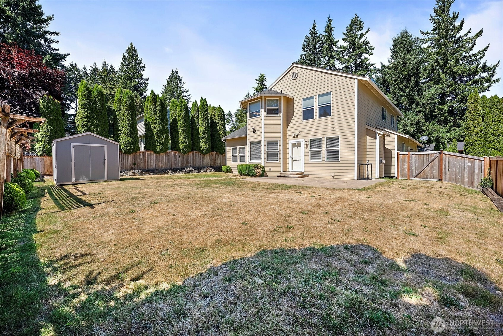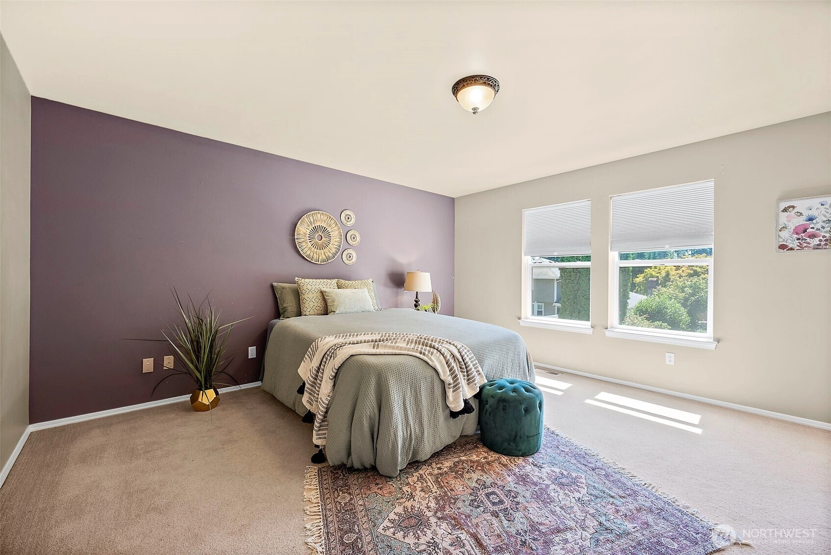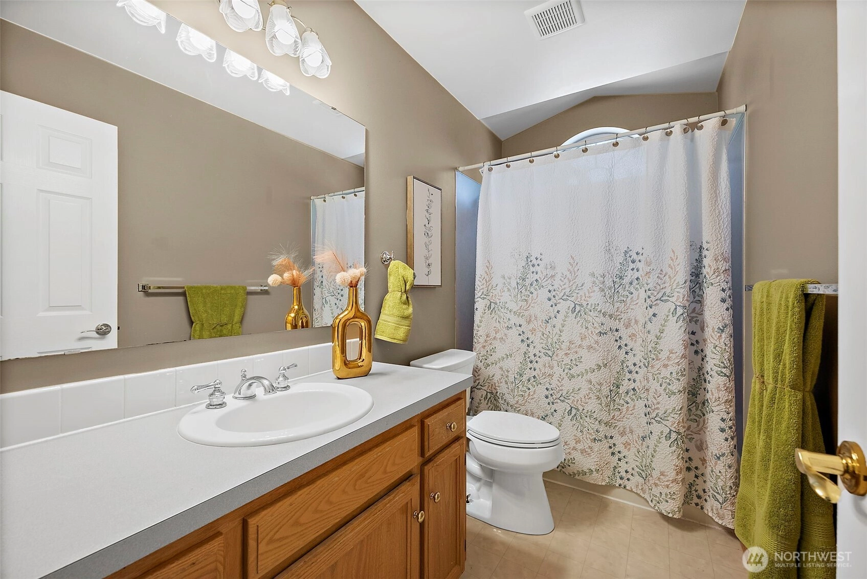 Gorgeous & move-in ready! Soaring vaulted ceilings grace the open concept Living space, welcoming you inside. All appliances stay in Kitchen w/pantry & tiered peninsular counter w/eating bar. Two gas fireplaces! French doors open into spacious Primary Suite complete w/walk-in closet & private bathroom w/soaking tub, dual sinks, & separate walk-in shower. Two guest bedrooms upstairs plus one on main level (possible home office?). Bay windows; two-tone paint; white trim; accent walls. Sitting on shy 1/4 acre parcel, spread out in the fully fenced back yard w/over-sized patio (perfect for summertime grilling). Tucked away on dead-end end street, minutes from Chambers Bay, shopping, & schools. Easy access to I-5 & WA-16 for commuting. No HOA!