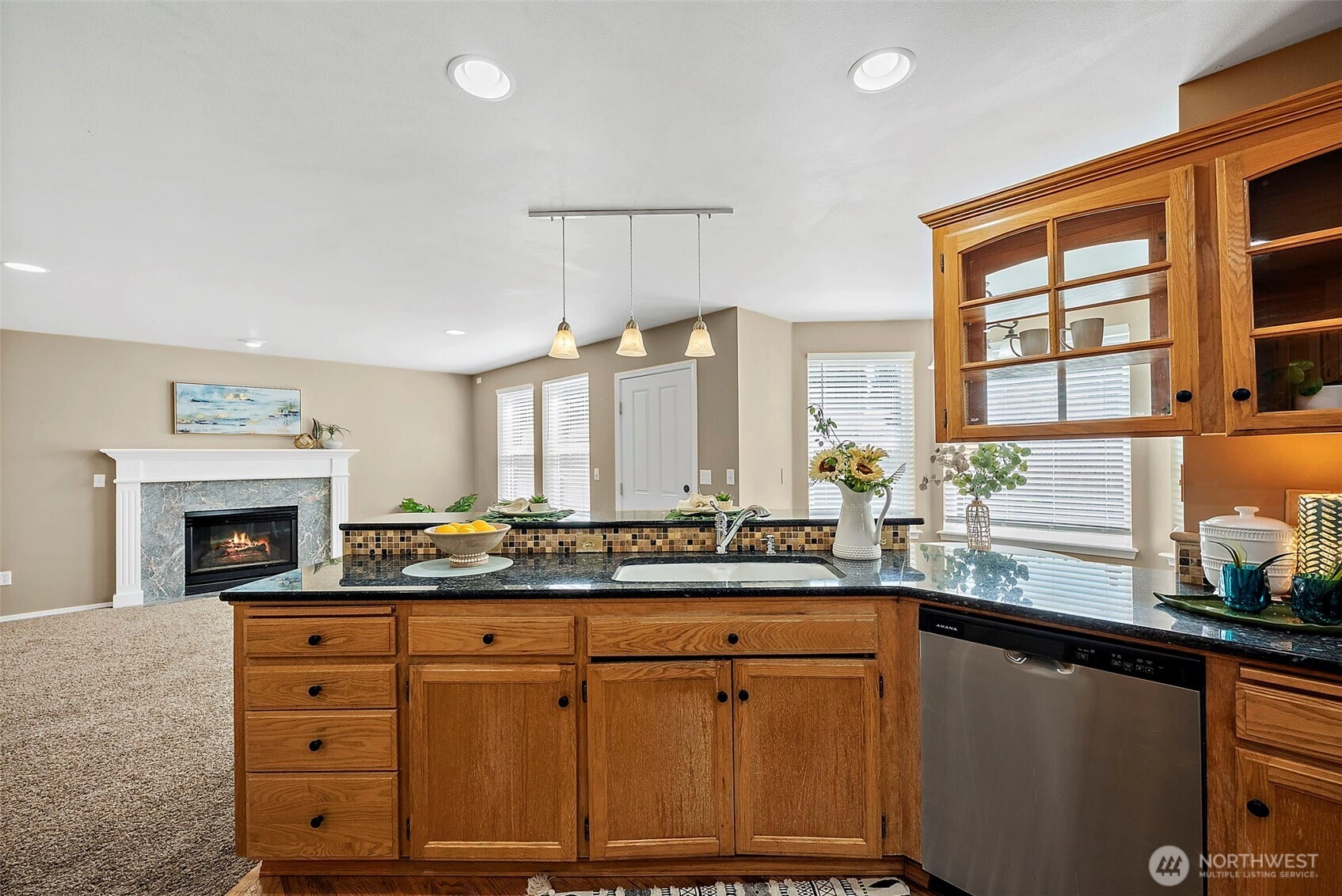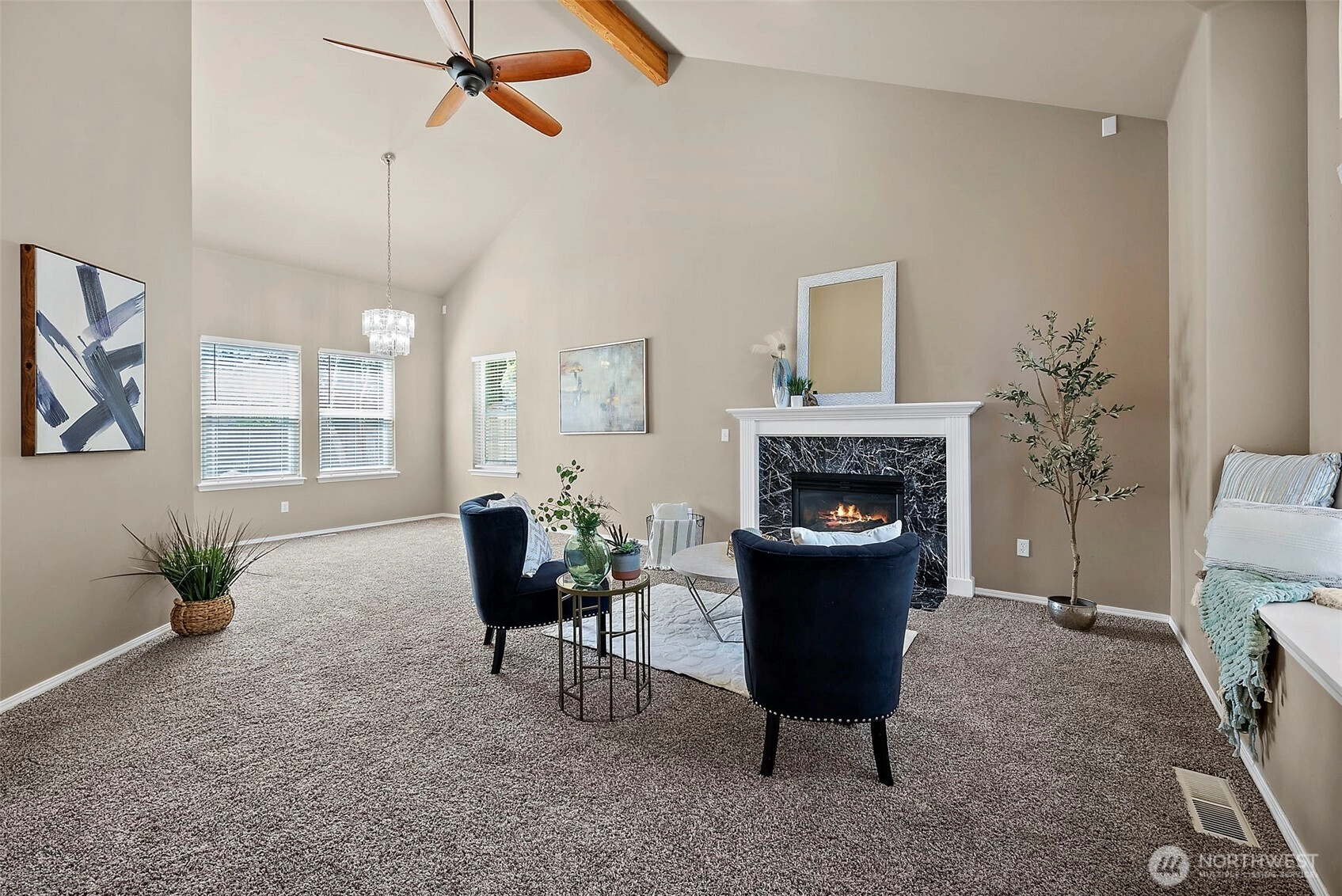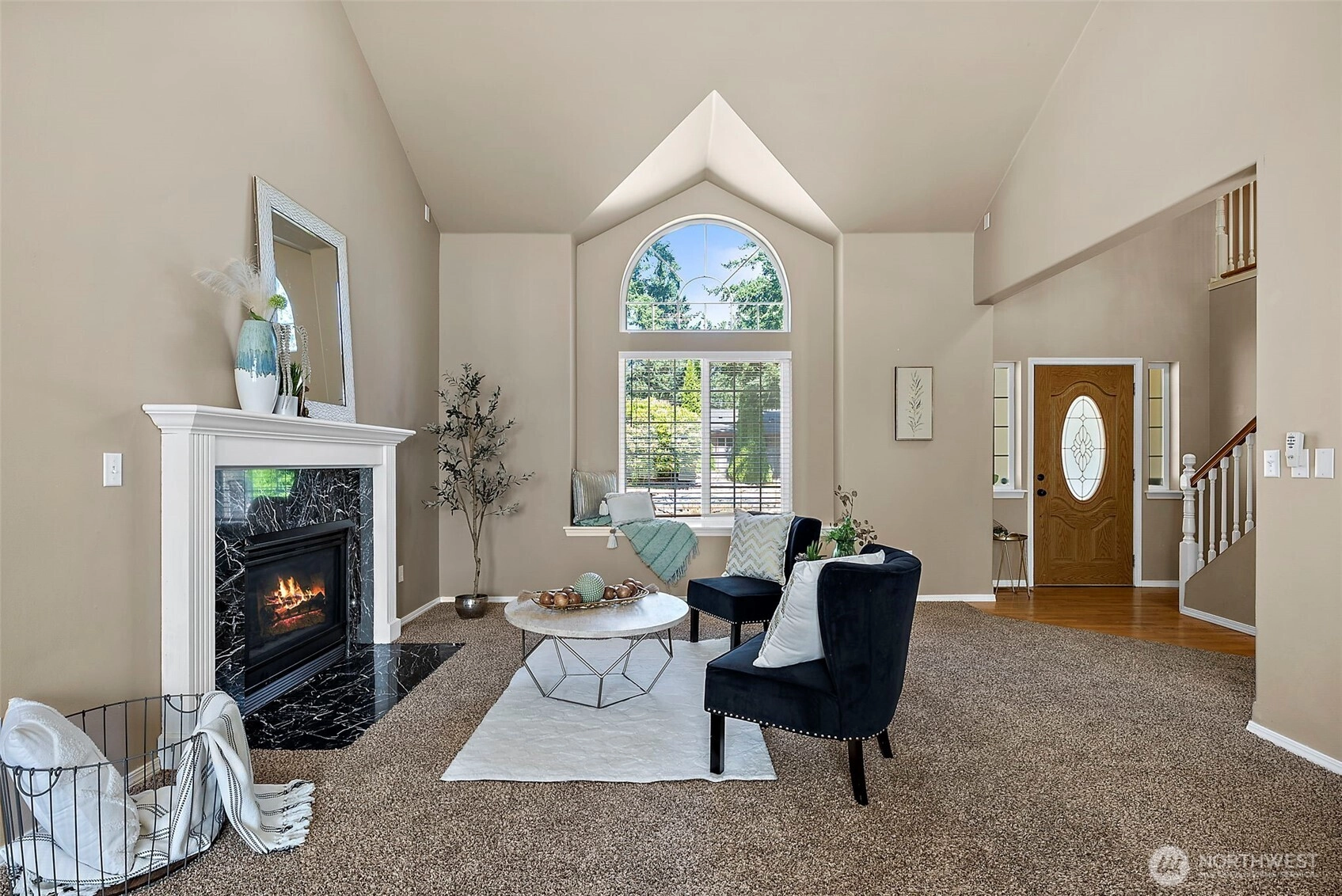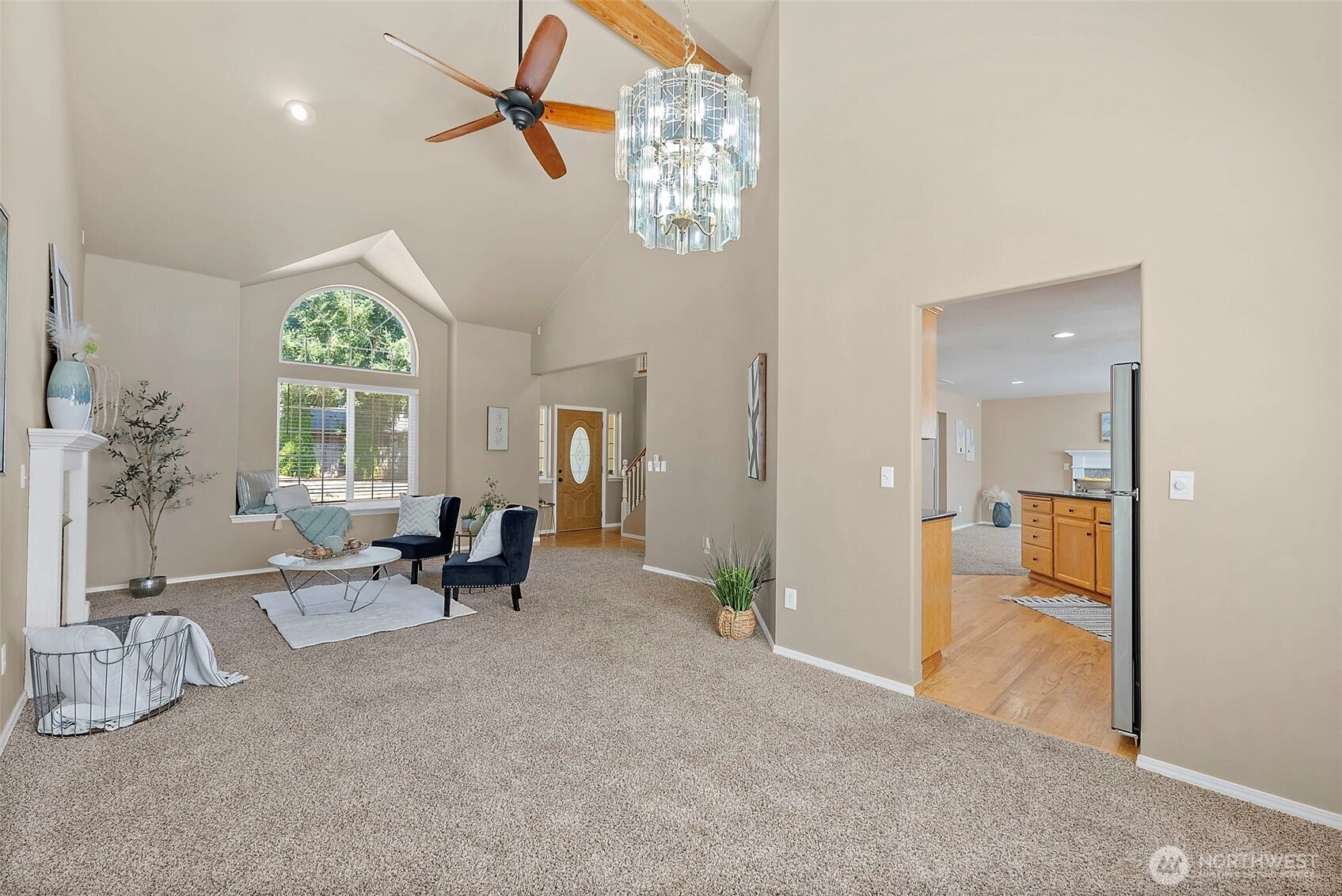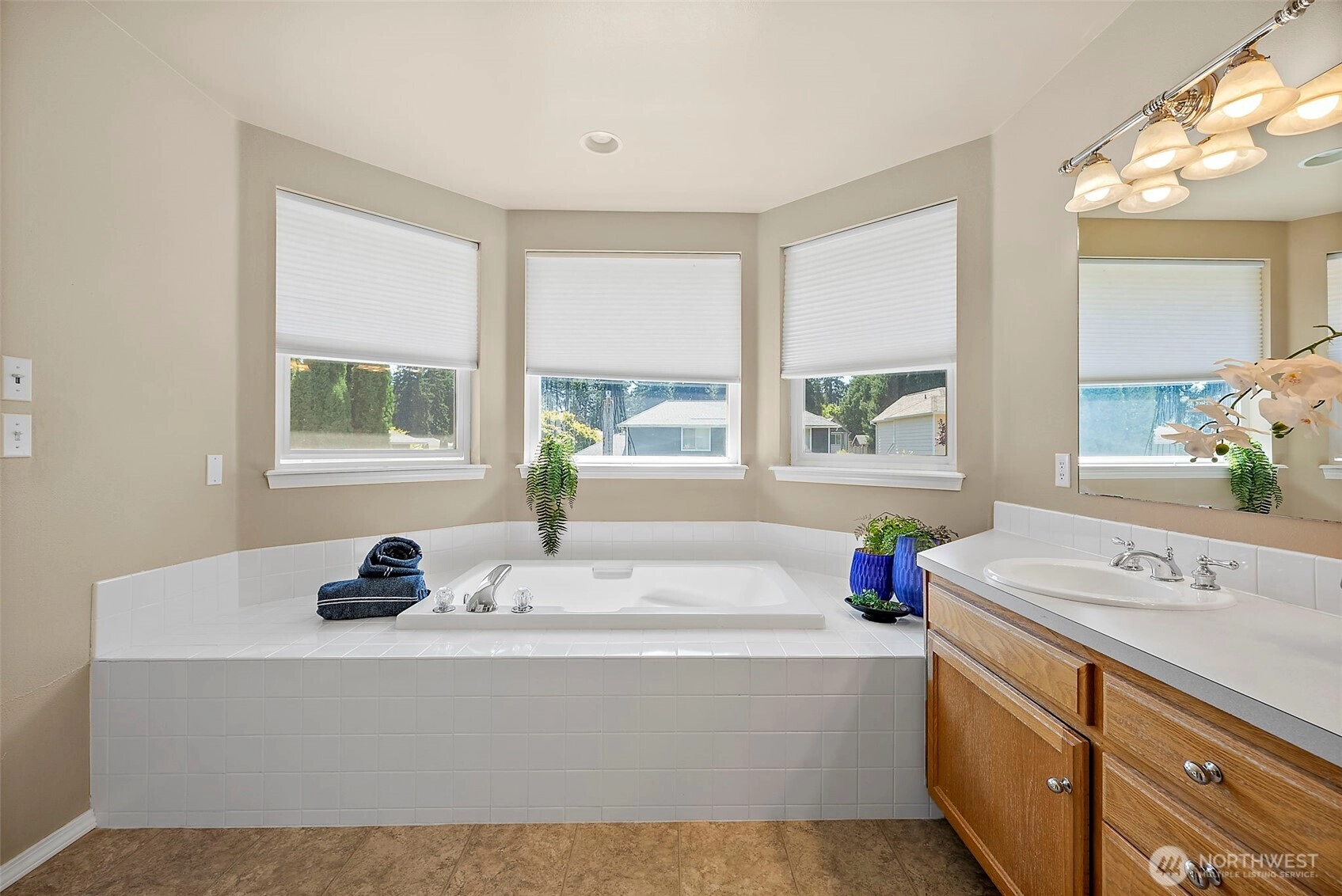 Gorgeous & move-in ready! Soaring vaulted ceilings grace the open concept Living space, welcoming you inside. All appliances stay in Kitchen w/pantry & tiered peninsular counter w/eating bar. Two gas fireplaces! French doors open into spacious Primary Suite complete w/walk-in closet & private bathroom w/soaking tub, dual sinks, & separate walk-in shower. Two guest bedrooms upstairs plus one on main level (possible home office?). Bay windows; two-tone paint; white trim; accent walls. Sitting on shy 1/4 acre parcel, spread out in the fully fenced back yard w/over-sized patio (perfect for summertime grilling). Tucked away on dead-end end street, minutes from Chambers Bay, shopping, & schools. Easy access to I-5 & WA-16 for commuting. No HOA!