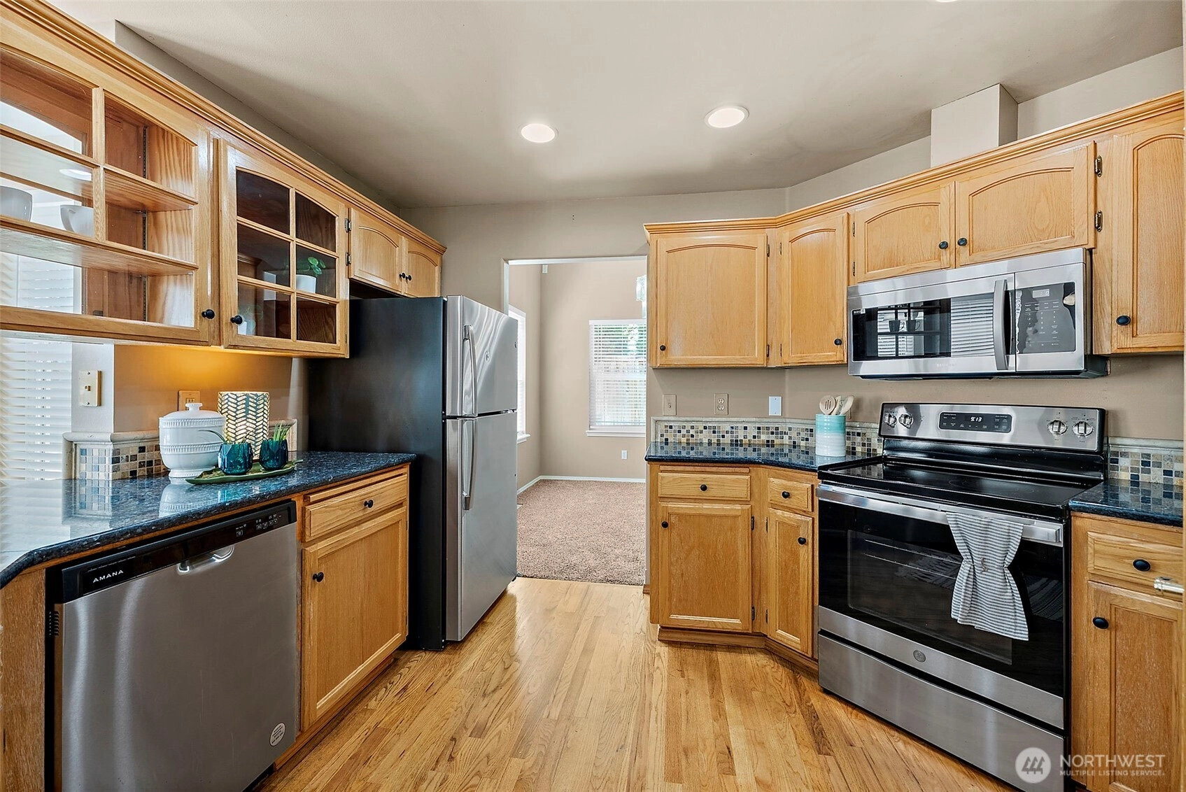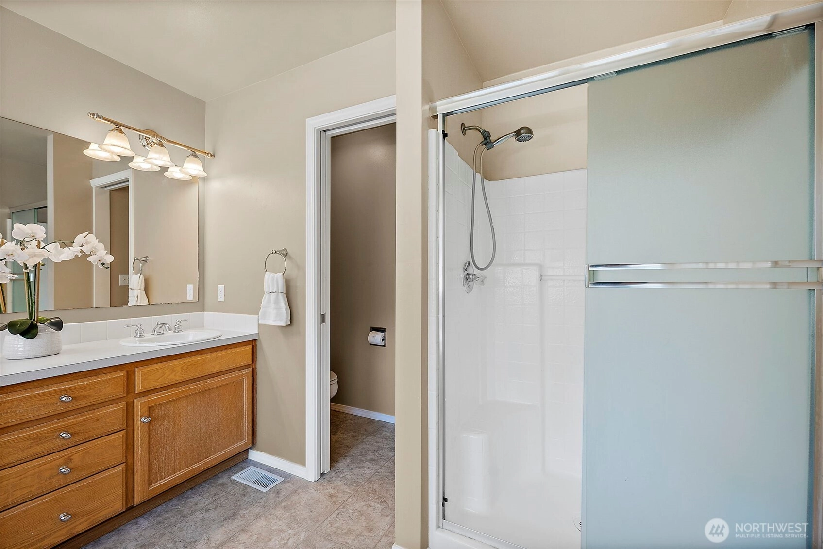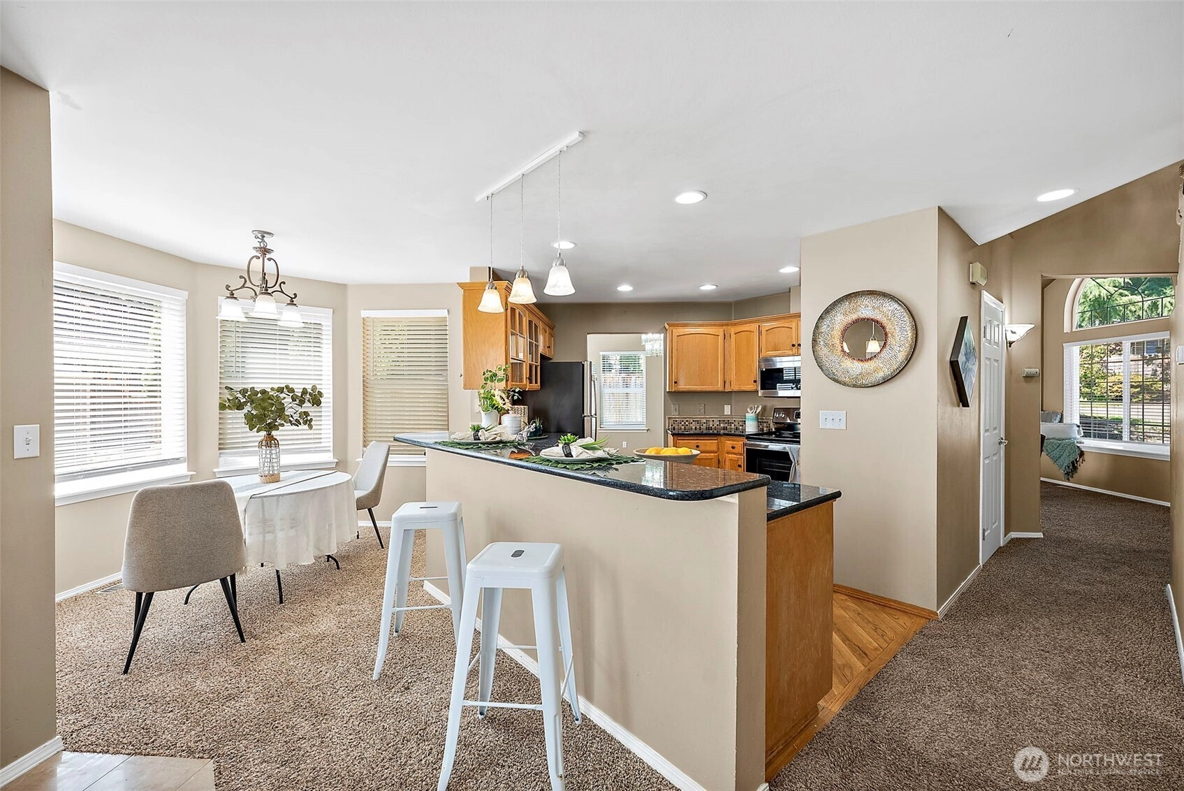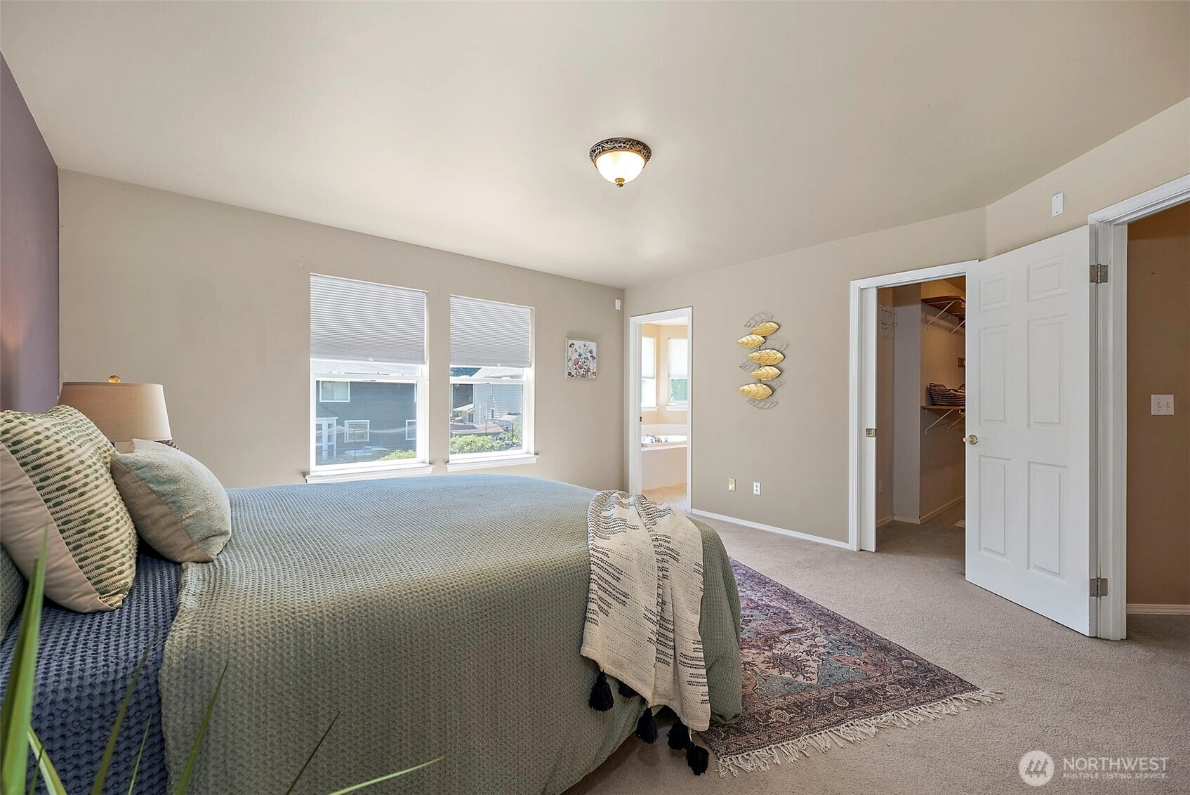 Gorgeous & move-in ready! Soaring vaulted ceilings grace the open concept Living space, welcoming you inside. All appliances stay in Kitchen w/pantry & tiered peninsular counter w/eating bar. Two gas fireplaces! French doors open into spacious Primary Suite complete w/walk-in closet & private bathroom w/soaking tub, dual sinks, & separate walk-in shower. Two guest bedrooms upstairs plus one on main level (possible home office?). Bay windows; two-tone paint; white trim; accent walls. Sitting on shy 1/4 acre parcel, spread out in the fully fenced back yard w/over-sized patio (perfect for summertime grilling). Tucked away on dead-end end street, minutes from Chambers Bay, shopping, & schools. Easy access to I-5 & WA-16 for commuting. No HOA!