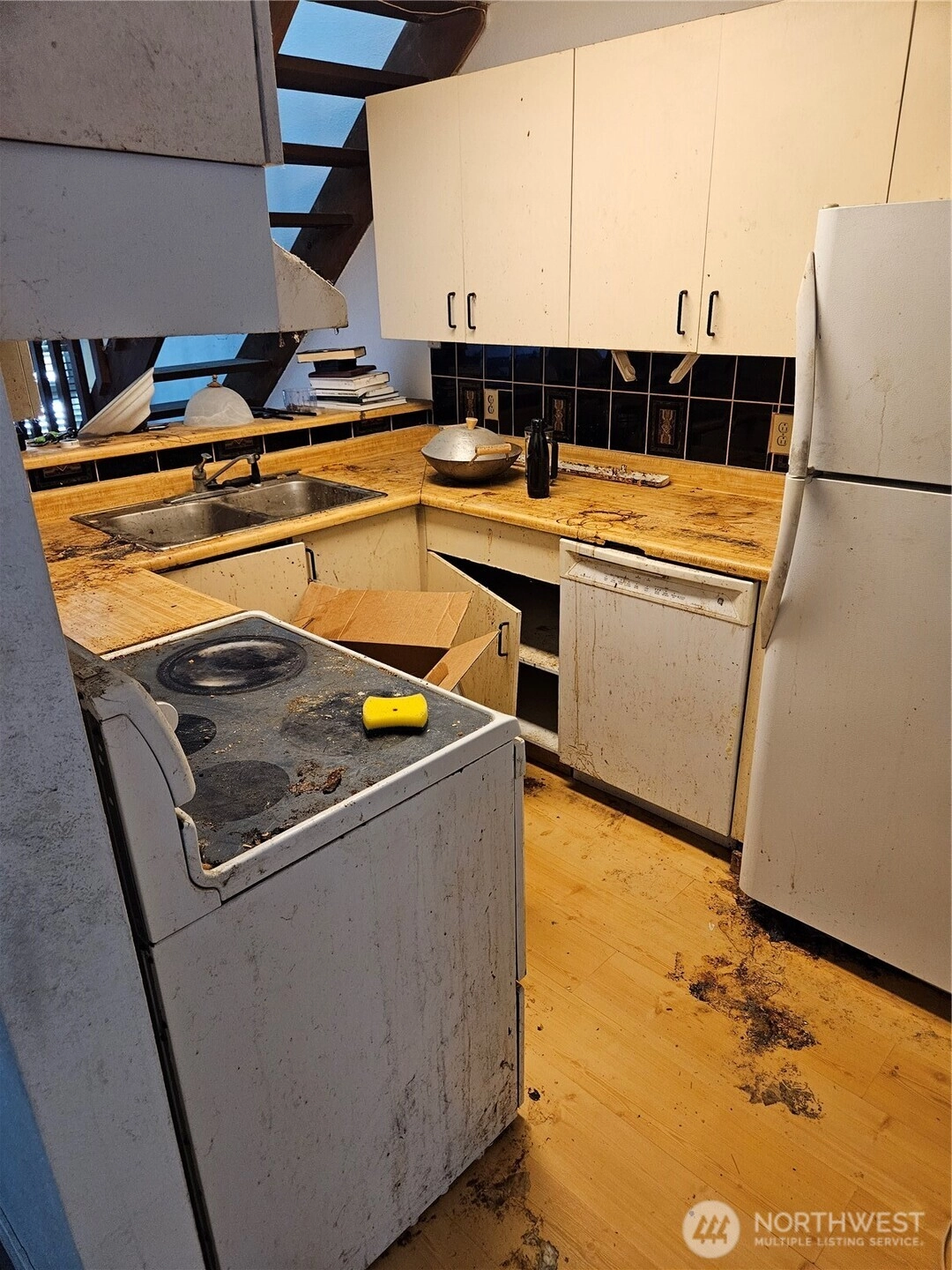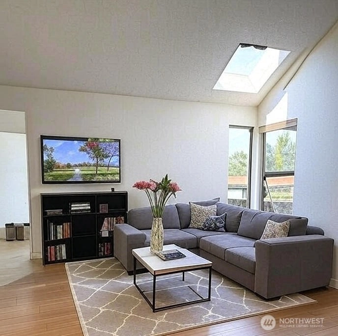 Top-Floor Gem with Loft, Light & Location! Bright, and spacious—this 2-bedroom, 1-bath condo boasts soaring ceilings, skylights, and a versatile loft with closet—ideal as a creative studio, home office, or extra bedroom. Natural light floods the open living area, and the walk-in closet offers ample storage. Enjoy morning coffee on your private balcony, then unwind at the community’s clubhouse, pool, hot tub, sauna, and cabana. Perfectly located near I-5, the upcoming light rail, parks, shopping, dining, and transit, this top-floor unit offers unbeatable convenience. No rental cap. Give this unit a cosmetic refresh and step into instant equity! Needs carpet, paint, kitchen and bathroom remodel.Recent comps over $70K higher. Instant Equity!