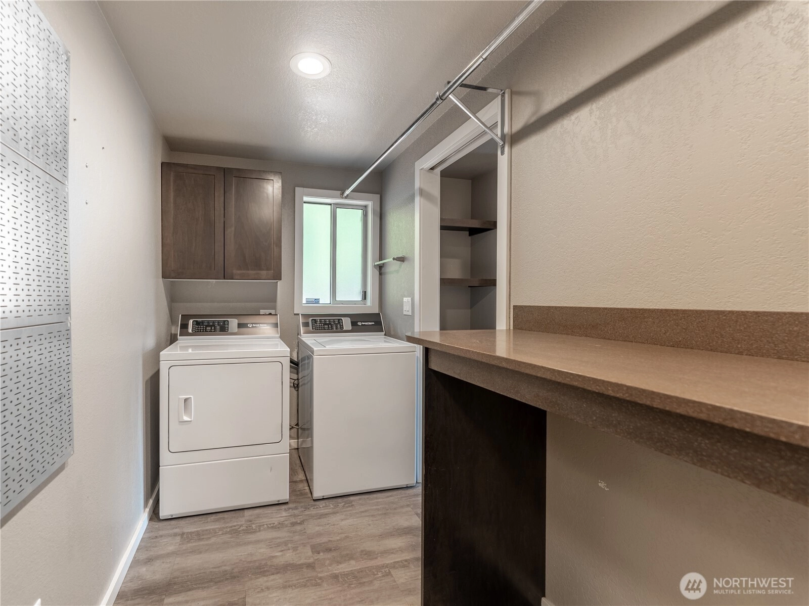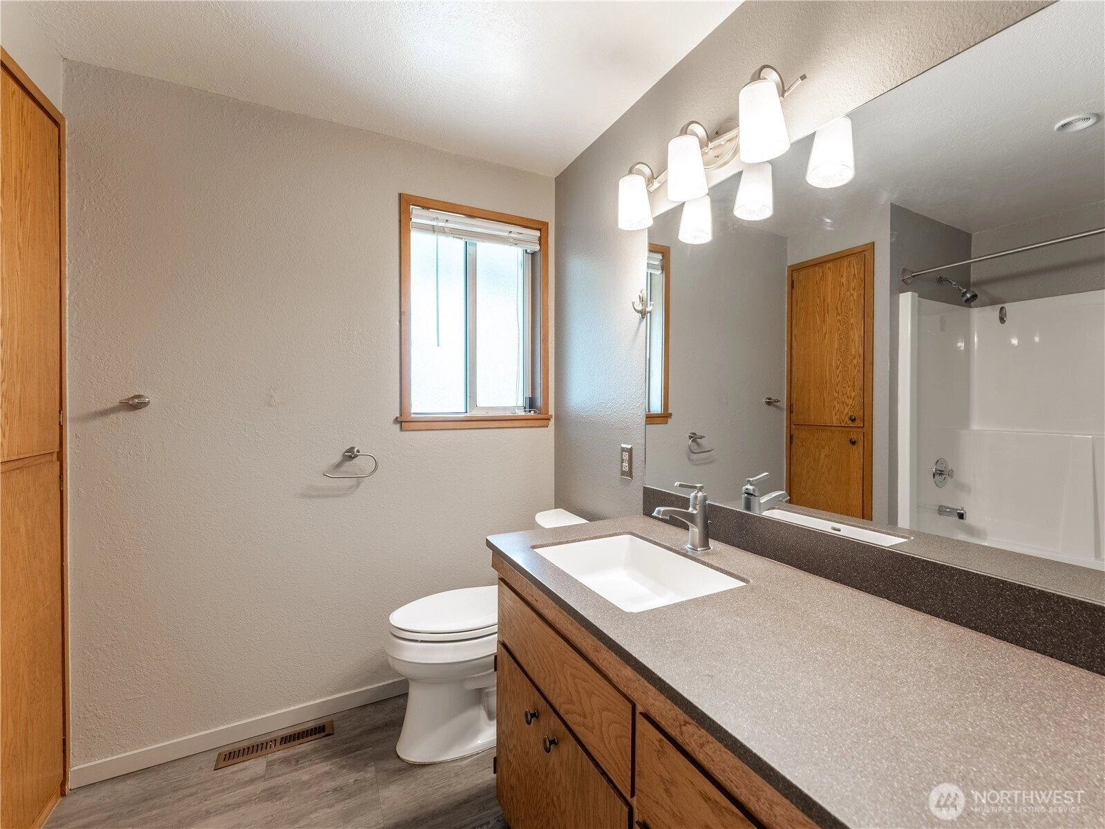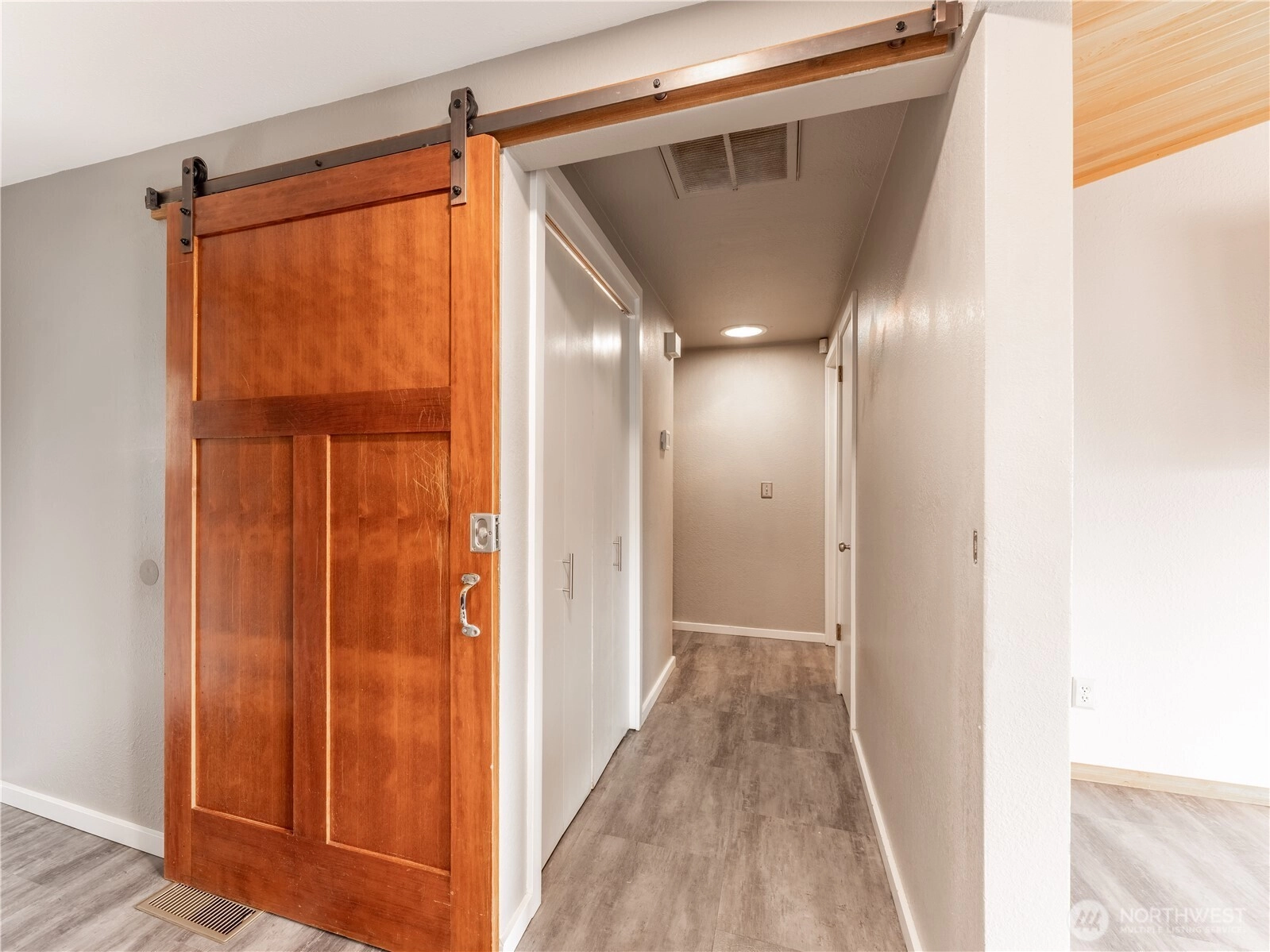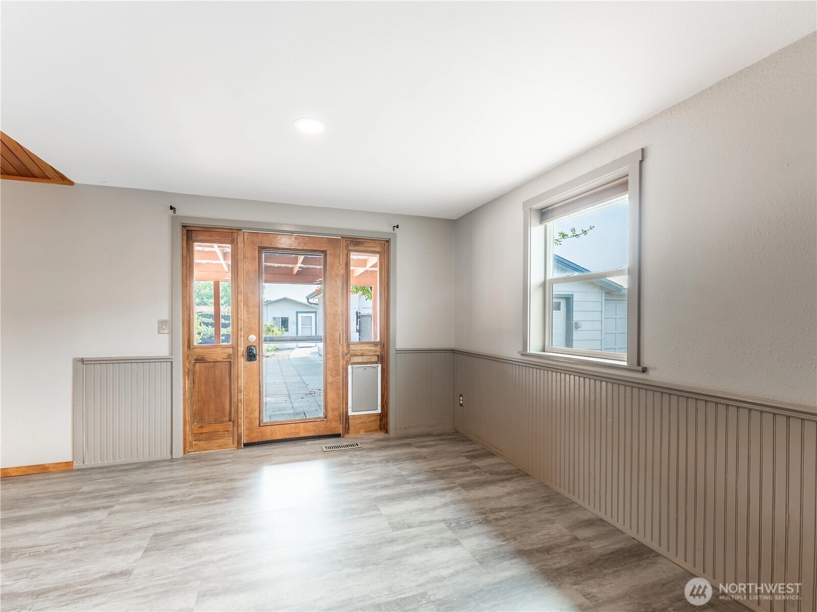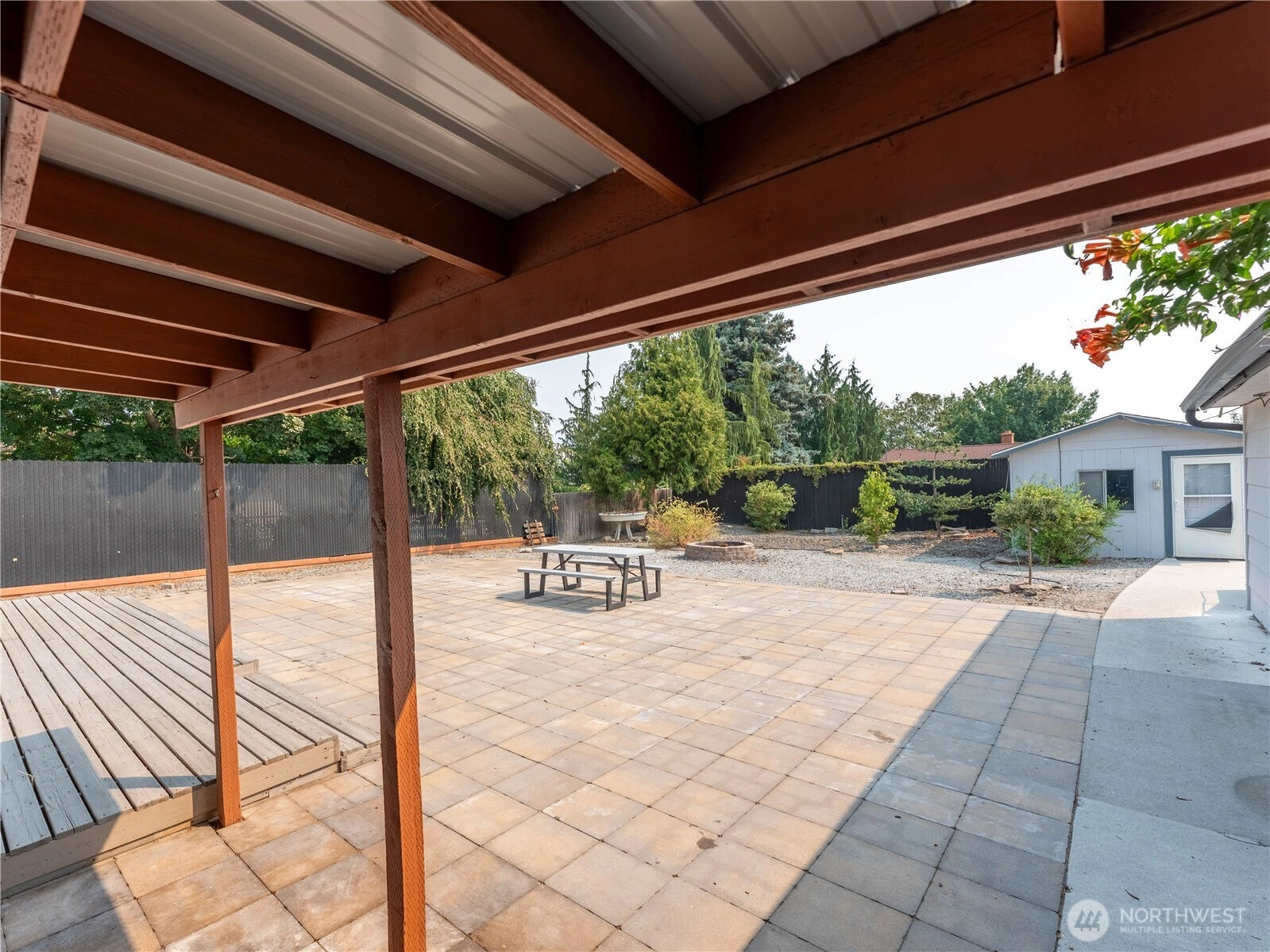 This beautifully remodeled 1,666 sq ft rambler sits on a 1/3-acre lot. The open-concept layout features vaulted ceilings, a cozy wood-burning fireplace, and durable LVP flooring—perfect for entertaining. The kitchen boasts stainless steel appliances, a gas cooktop, and plenty of counter space, complemented by quartz surfaces throughout. The spacious primary suite includes built-in closets, while the laundry room offers dual access from both the primary bathroom and hallway. Enjoy a private backyard for entertaining, along with RV parking with a 50-amp outlet, a detached 2+ car garage, separate office, multiple sheds, and a fully fenced yard with an electric gate for ultimate privacy.