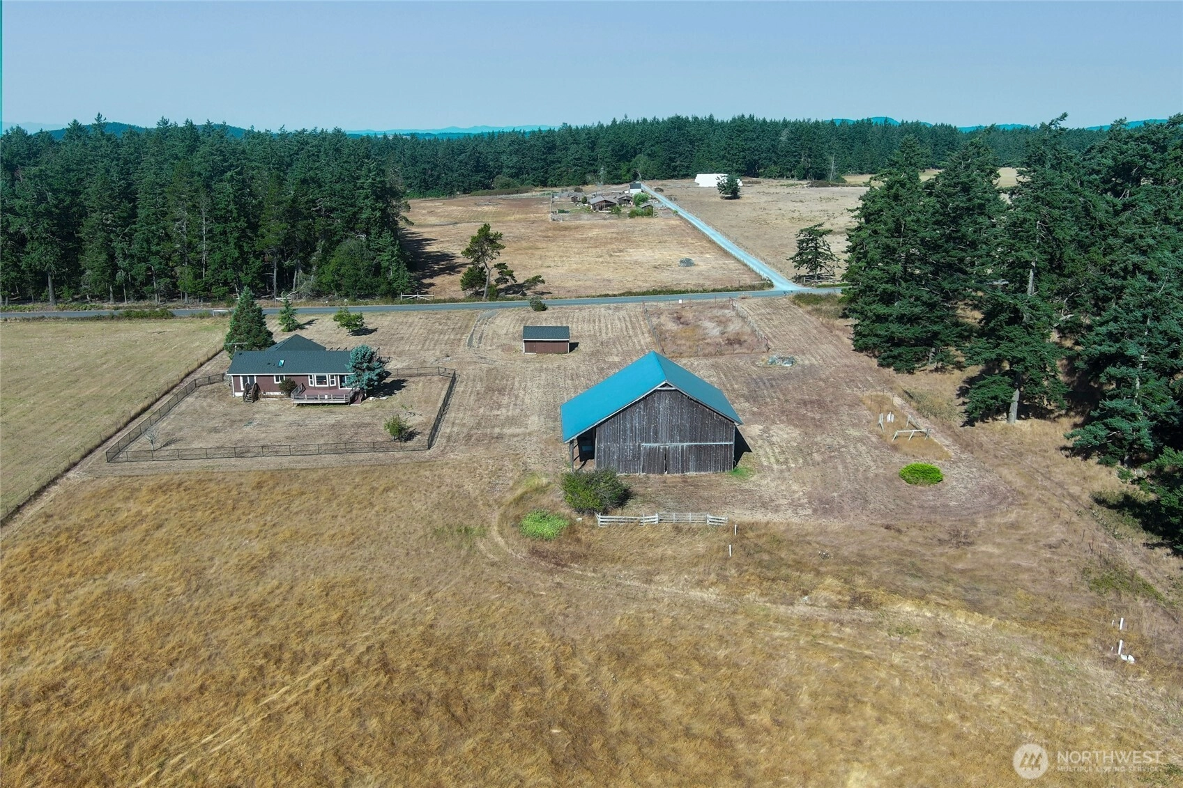 Welcome to 549 Davis Bay Rd., where island living meets country charm. Set on ten sunny, open acres, this well-designed 1,821 sq. ft. home features two spacious bedrooms and 1 & 3/4 baths, perfect for comfortable year-round living or a serene weekend retreat. Vaulted ceilings and large windows frame sweeping pastoral views, bathing the living spaces in natural light. Enjoy open-concept living, a generous kitchen, and cozy gathering areas designed for relaxed entertaining.Bring your animals or hobbies—this property offers rich pastures and a versatile 3,000 sq. ft. barn ready for livestock, storage, or workshop use. The well house and outbuildings add to the property’s practical appeal. Located minutes from Fisherman Bay and Lopez Village,