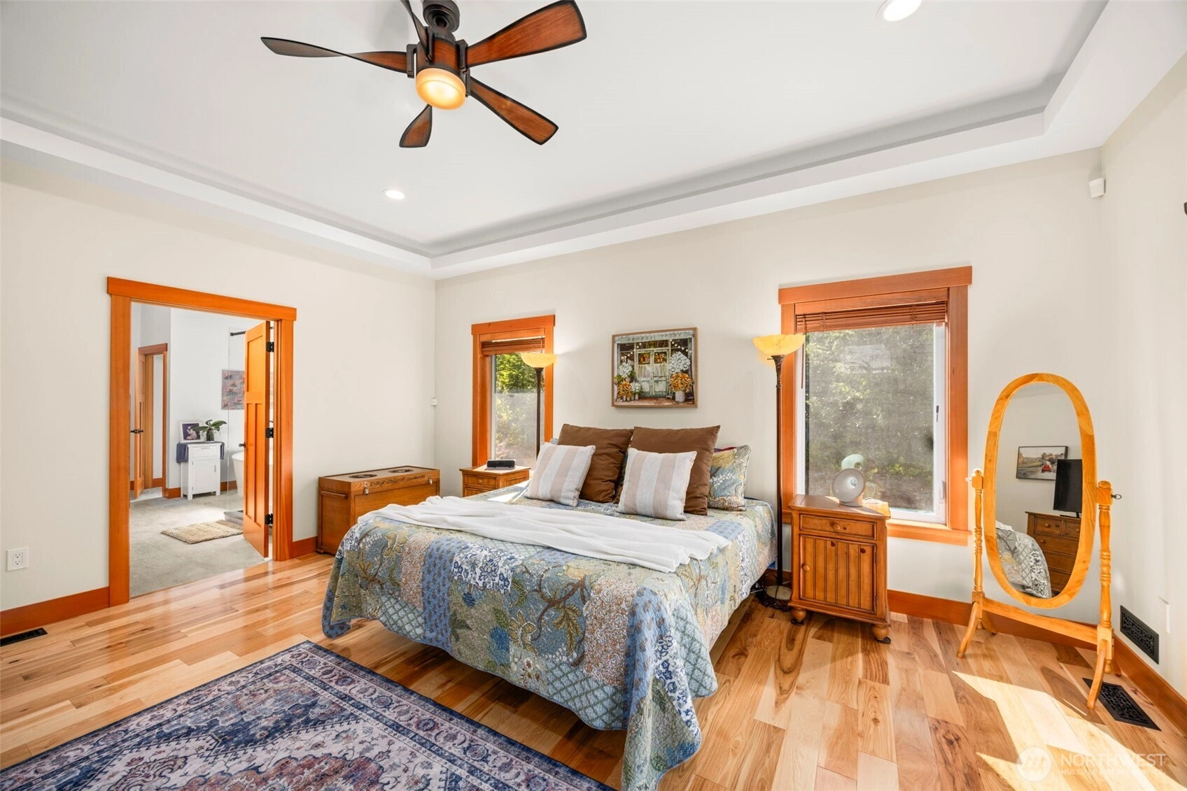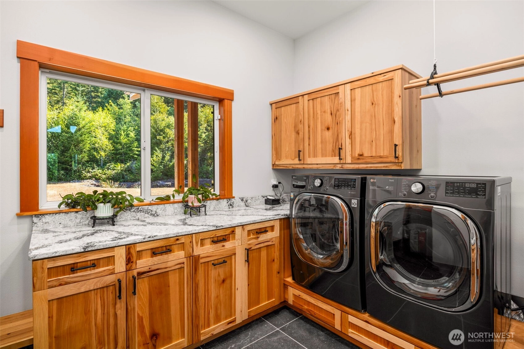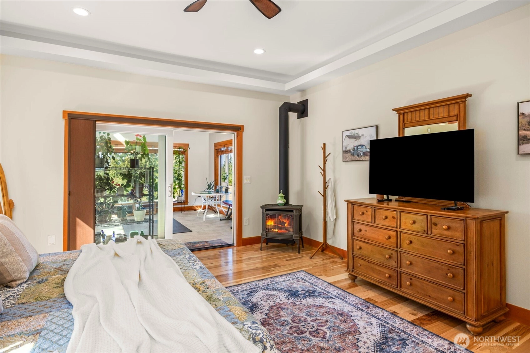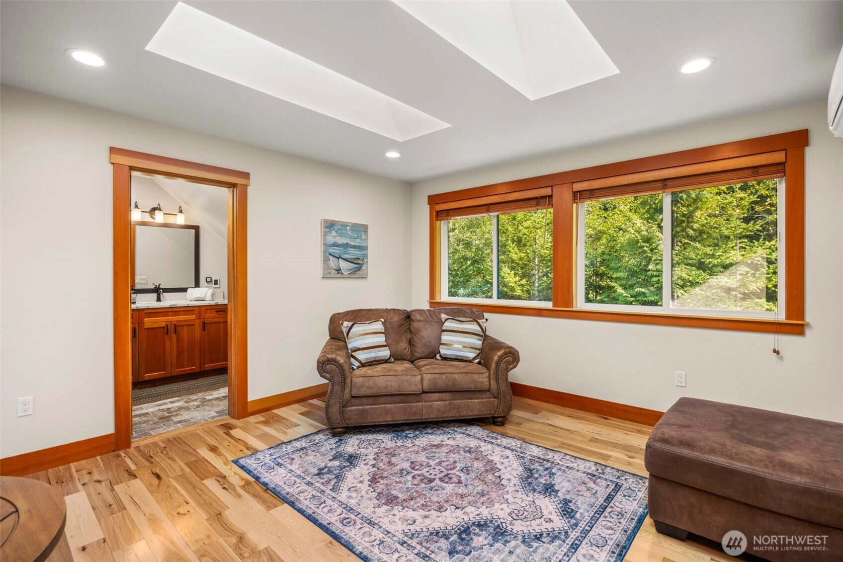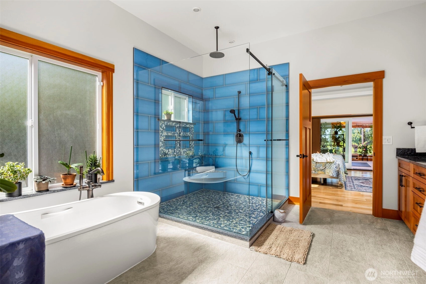 Meticulously crafted single-level home PLUS detached shop w/ guest quarters on 5 PRIVATE ACRES. Surrounded by picturesque water & mountain views. MAIN HOME consists of 3 bedrooms + office. Vaulted ceilings. French doors that open to covered patio - seamless indoor-outdoor living. Chef's kitchen equipped w/ Wolf appliances, custom cabinetry, double oven & spacious island, perfect for culinary creations. Retreat to the luxurious primary room complete w/ sunroom & gas fireplace. Spa-like ensuite bath w/ soaking tub, tile shower & extraordinary closet. Opposite side of the home you'll find two additional bedrooms w/ connected bathroom. Beautiful guest space sits atop the detached shop, complete w/ bathroom & bedroom. See attached video tour!